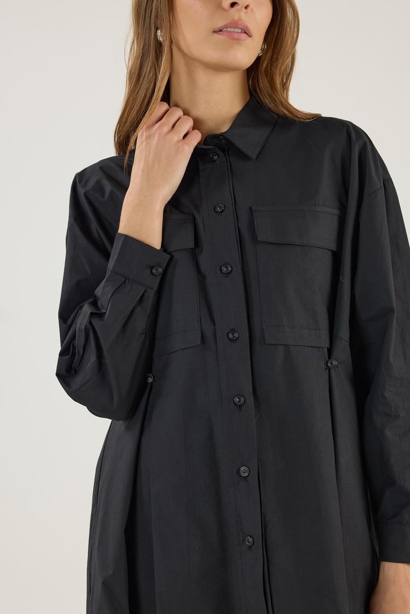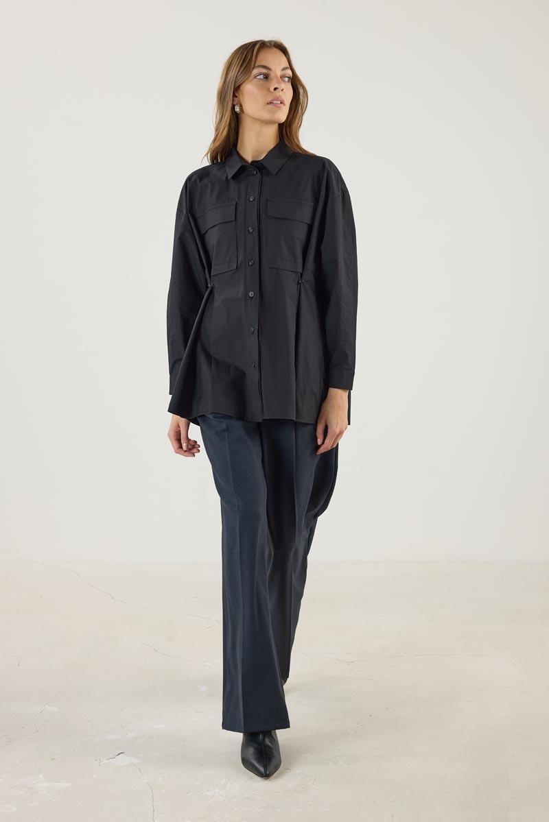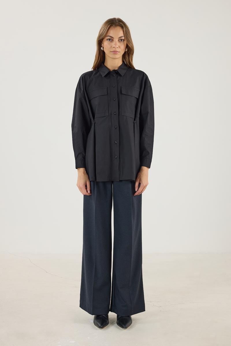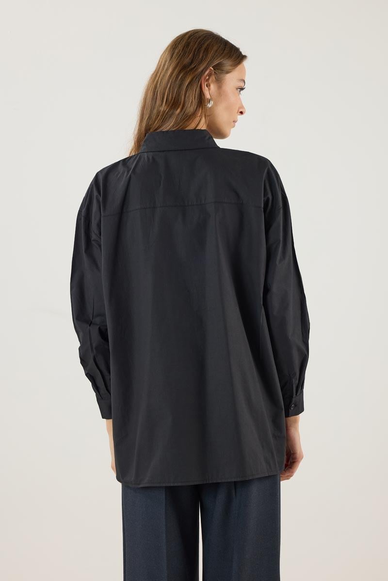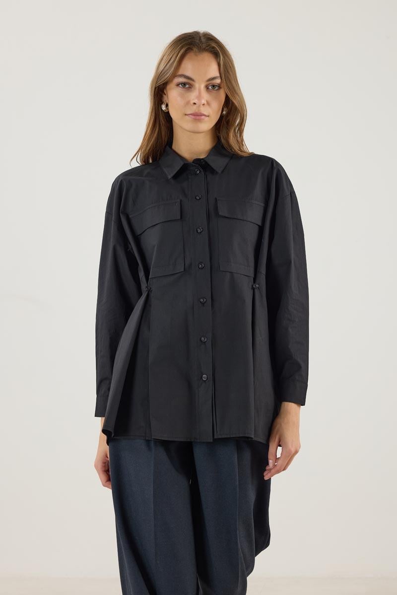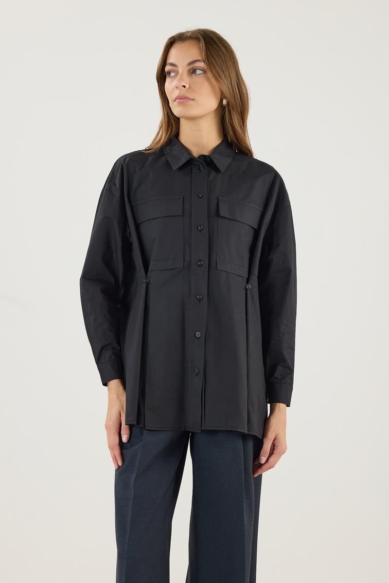 Kadın Gömlek Yaka Uzun Kollu Belden Düğmeli Pamuk Gömlek Siyah (MTM25KGMK001)
