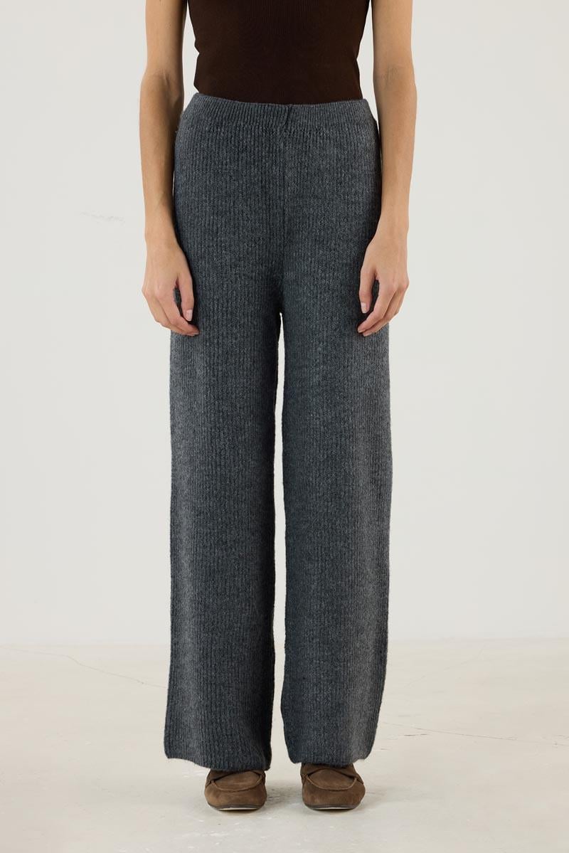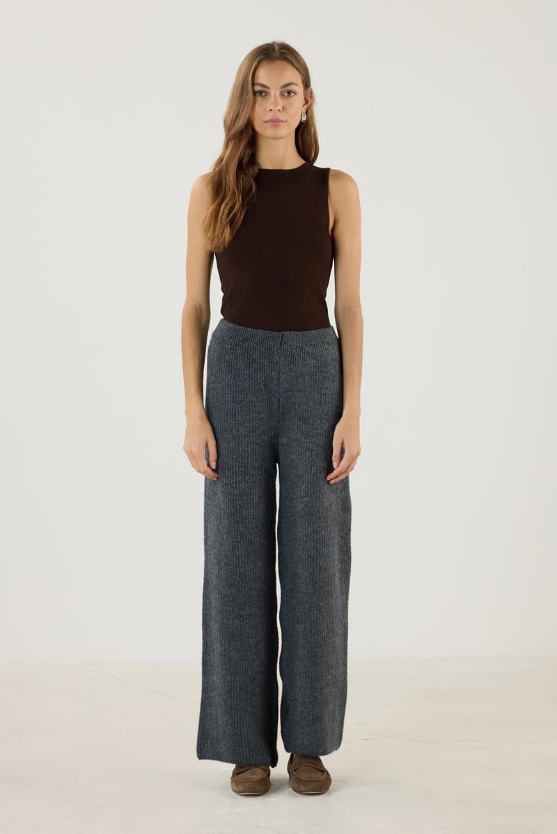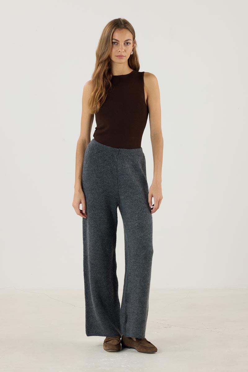 Kadın Beli Lastikli Örme Triko Pantolon Antrasit (MTW25KPNT001)