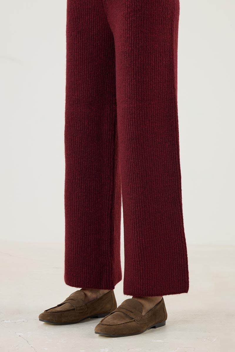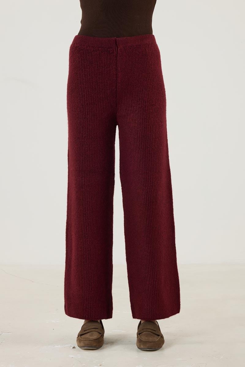 Kadın Beli Lastikli Örme Triko Pantolon Bordo (MTW25KPNT001)