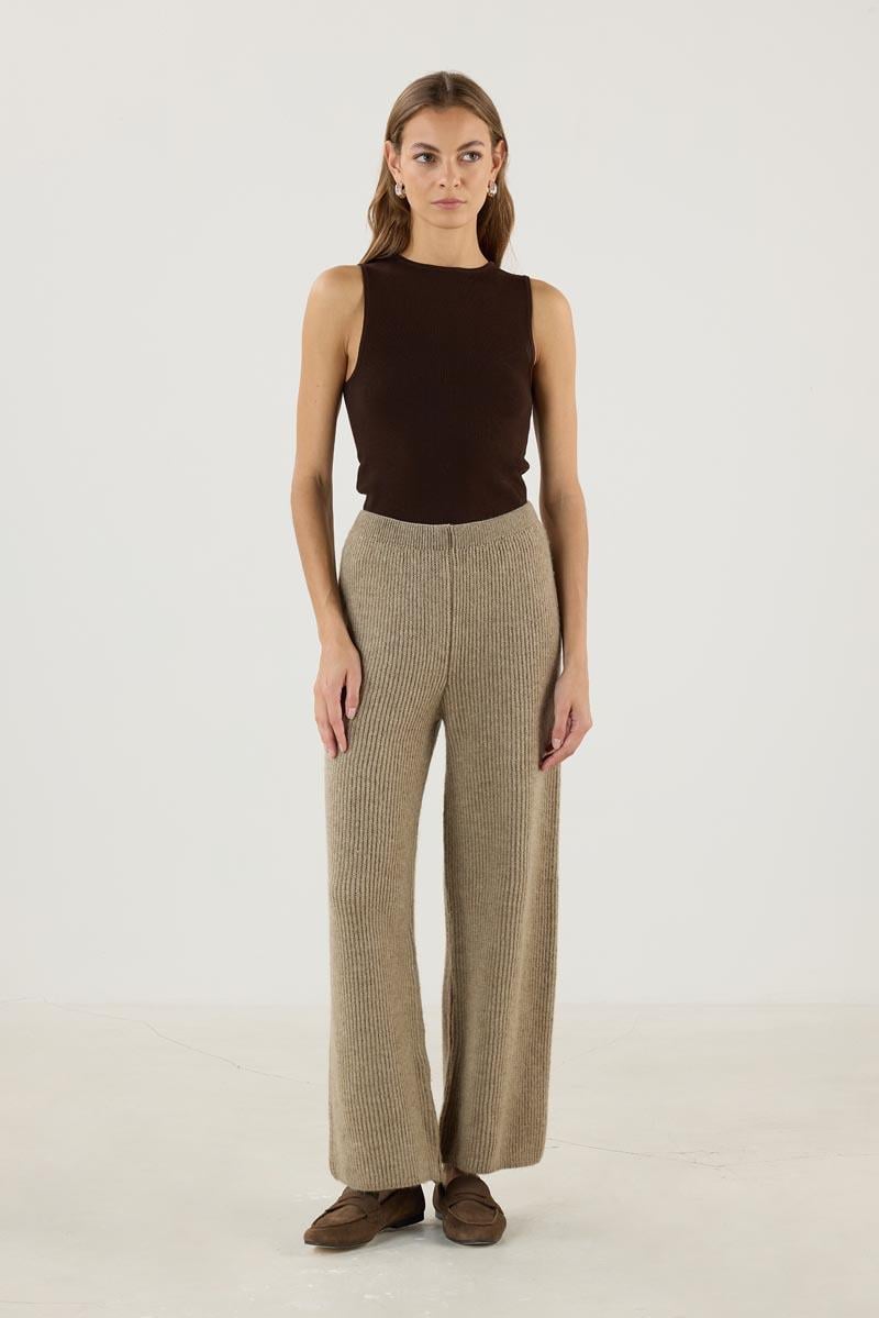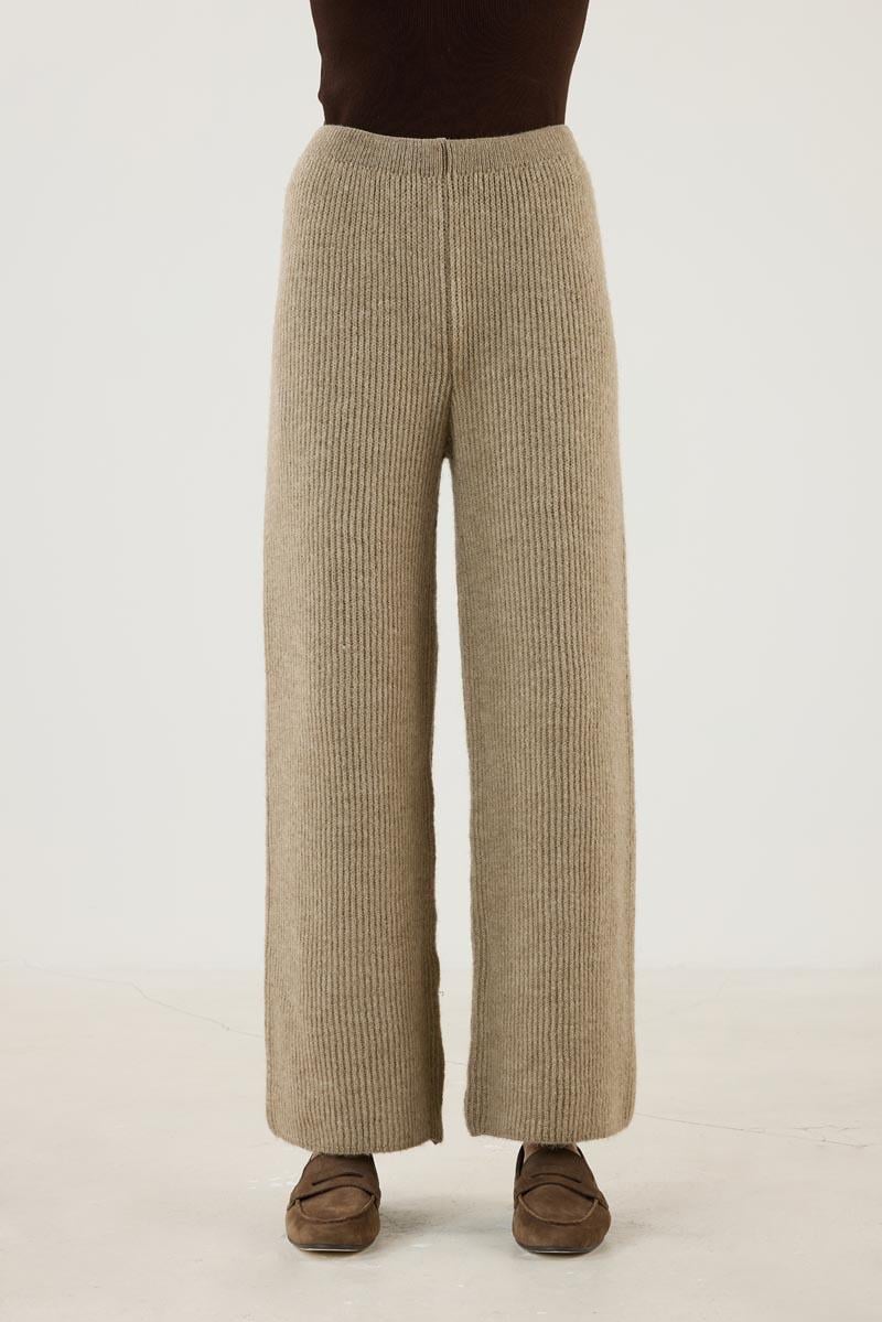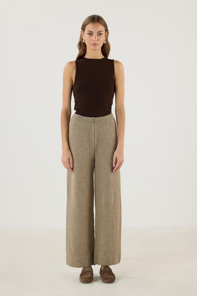 Kadın Beli Lastikli Örme Triko Pantolon Vizon (MTW25KPNT001)