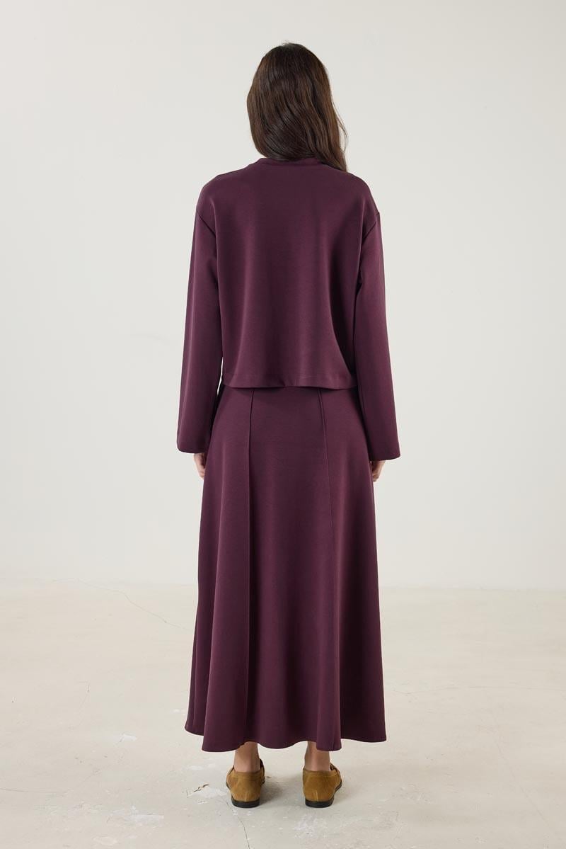 Bordo Kısa Sweatshirt, Çan Kesim Etek Takım (MTTAKIM060)