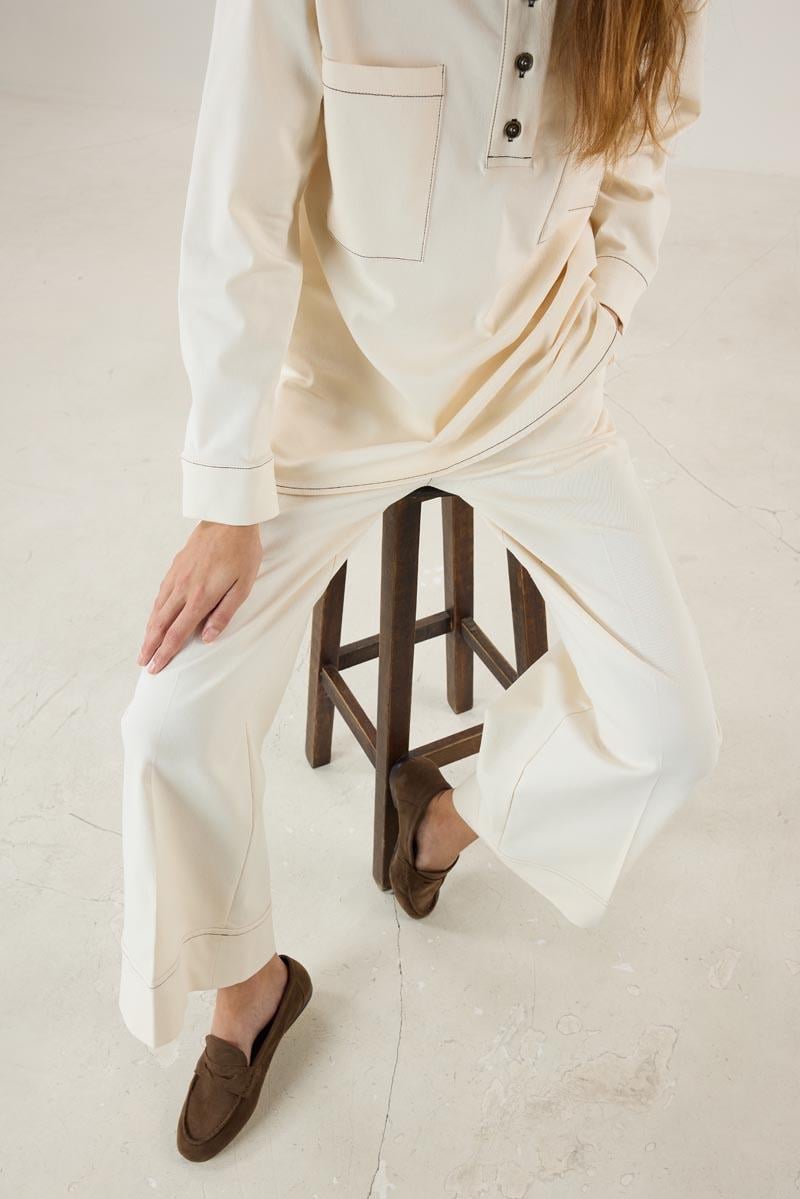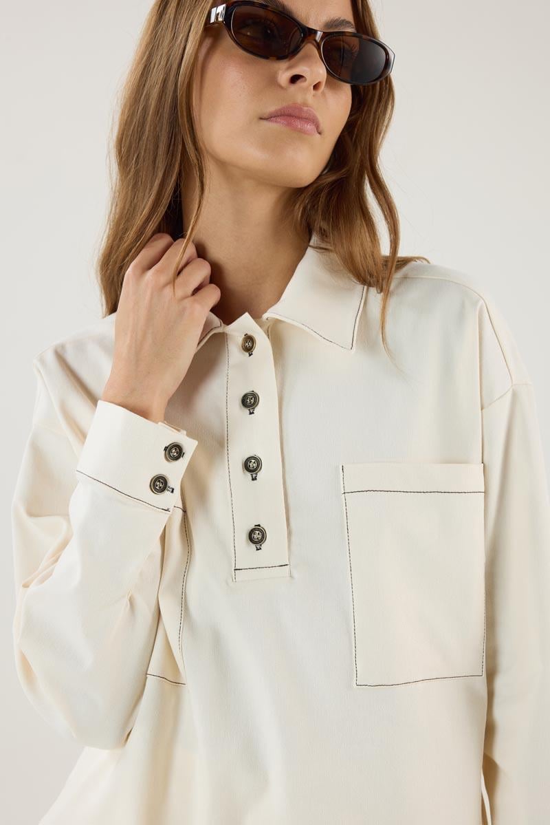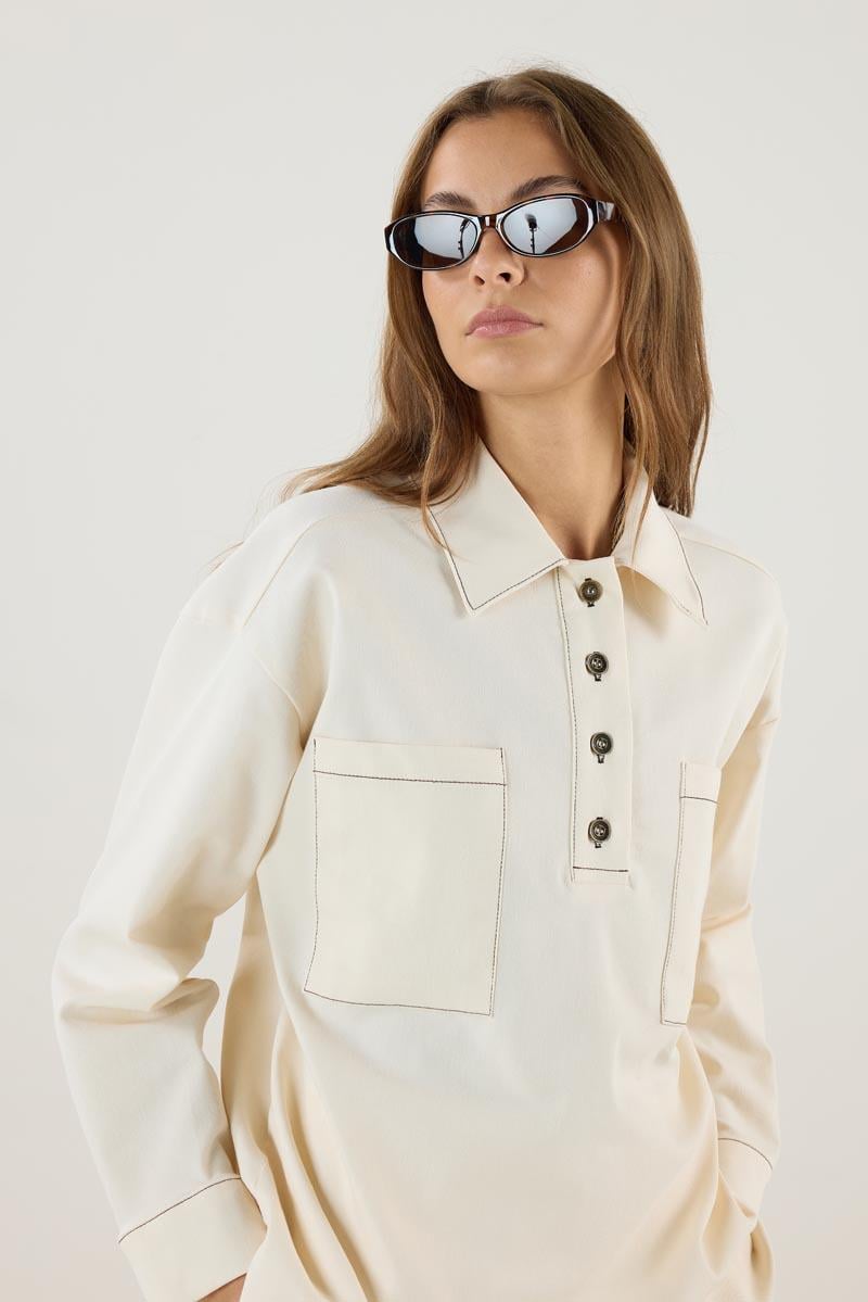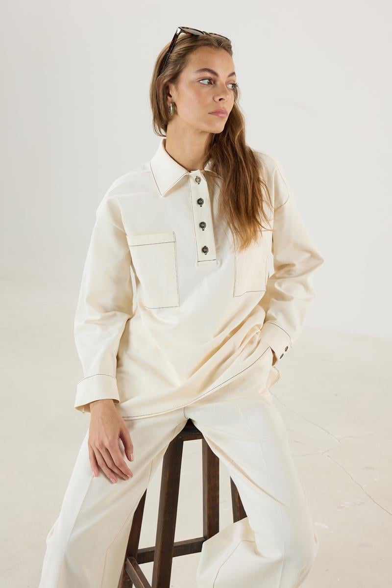 Kadın Gömlek Yaka Uzun Kollu Cepli Kot Gömlek Ekru (MTB25KGMK002)