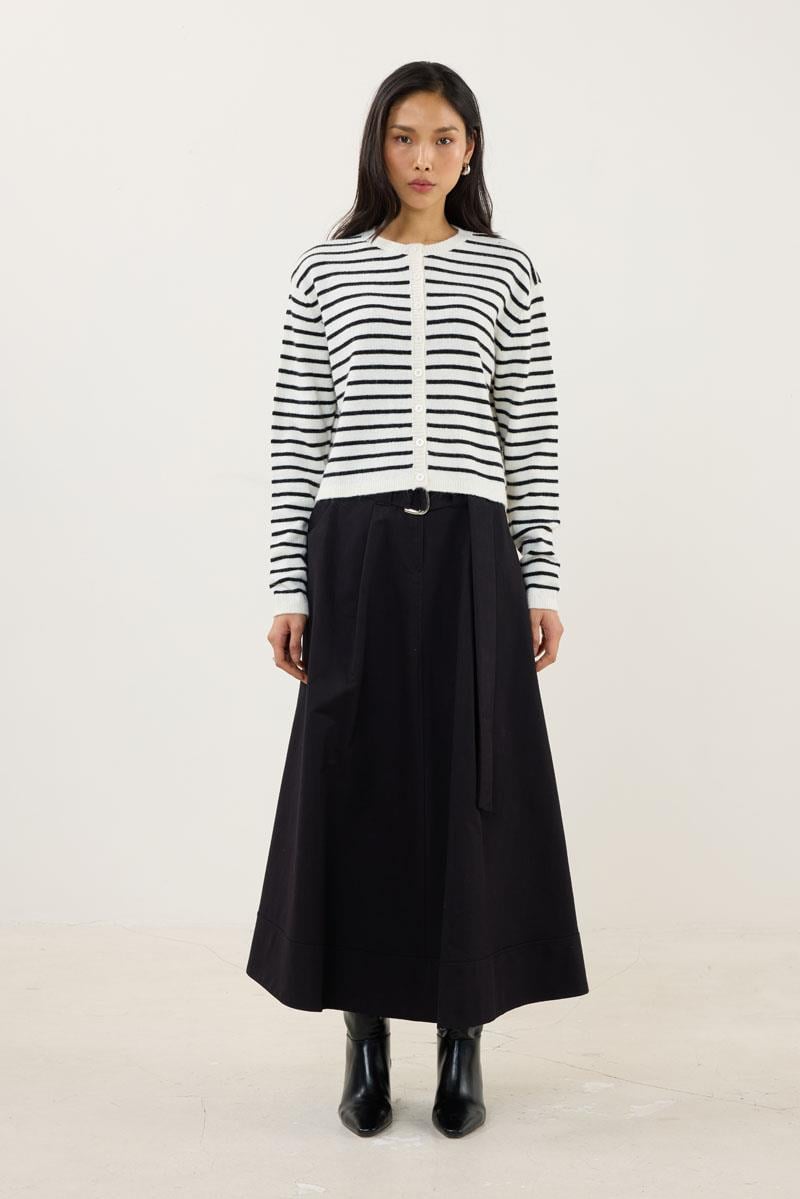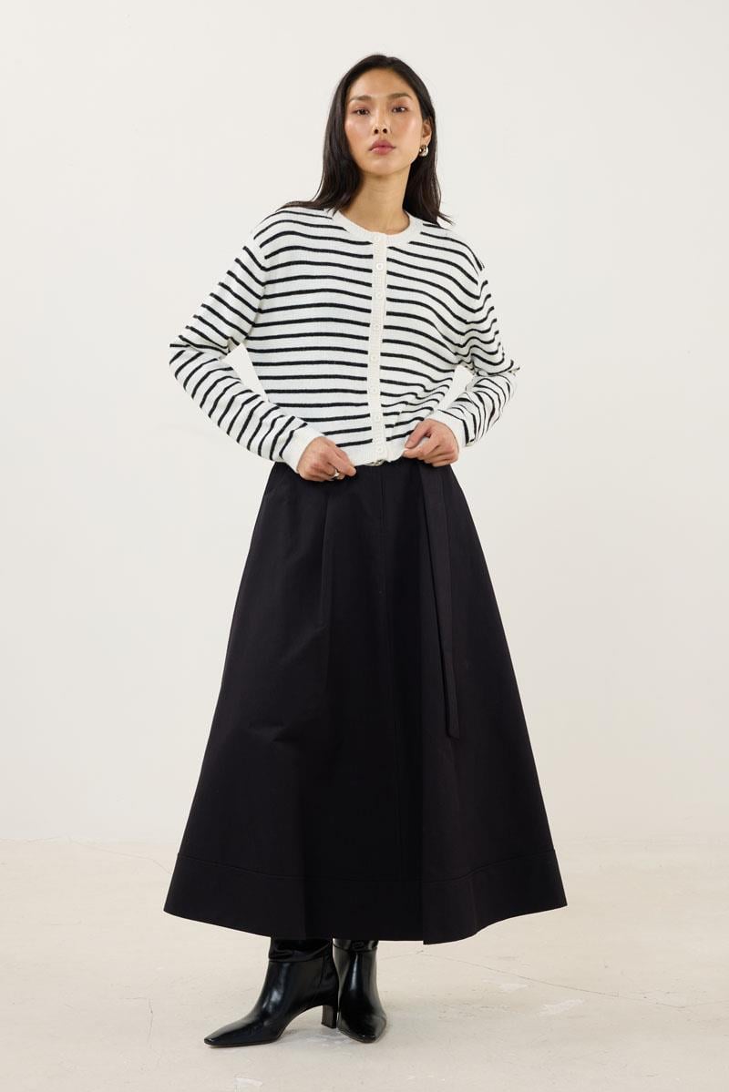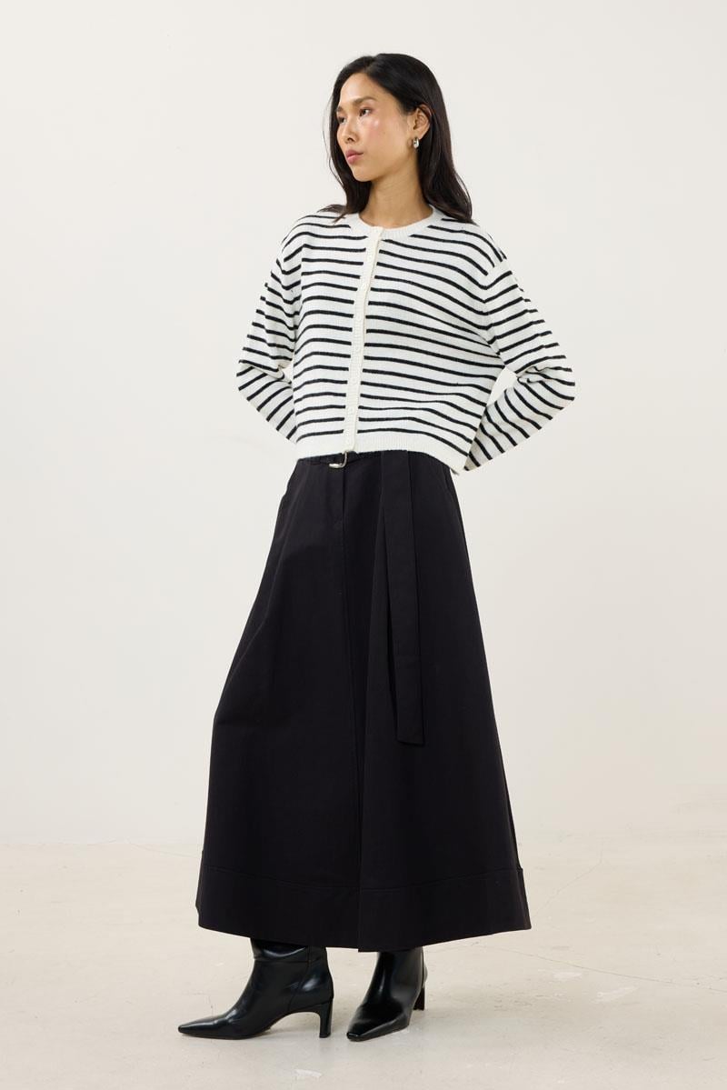 Çizgili İnce Triko Hırka Siyah