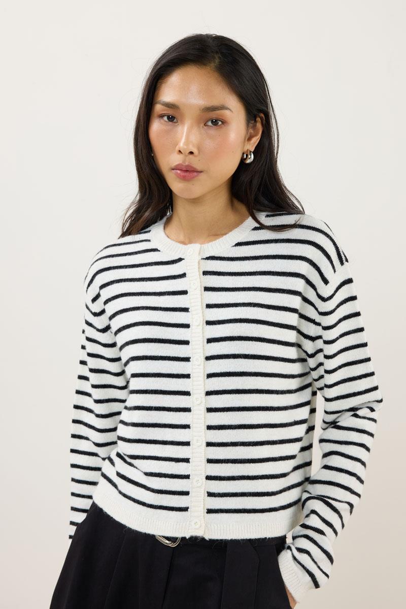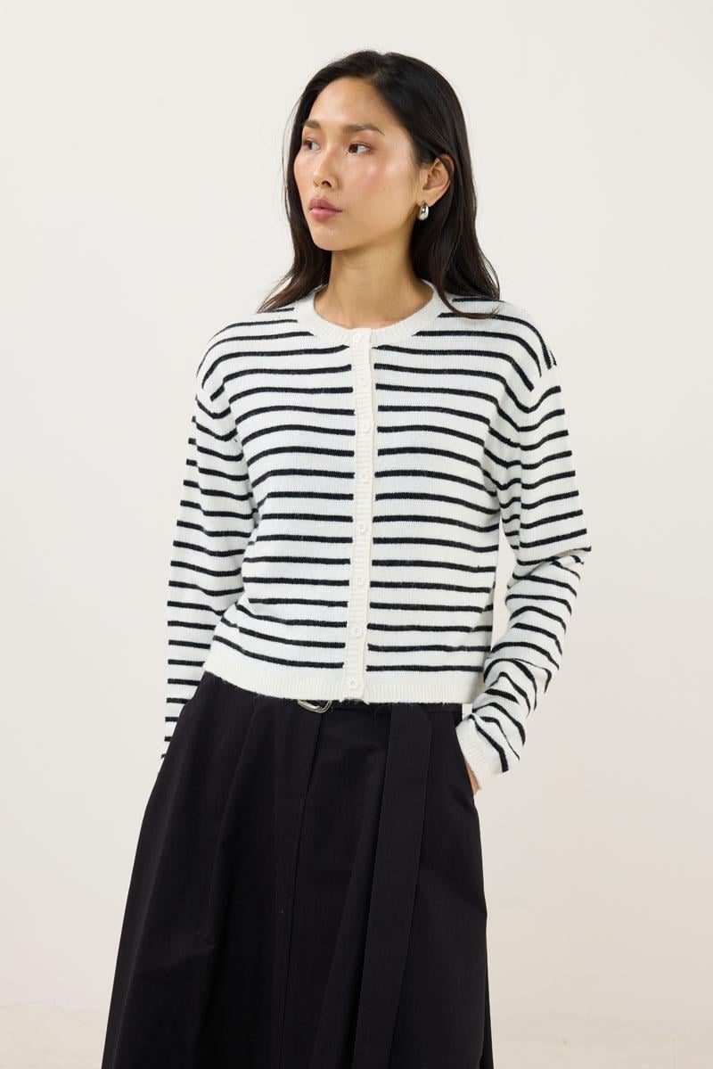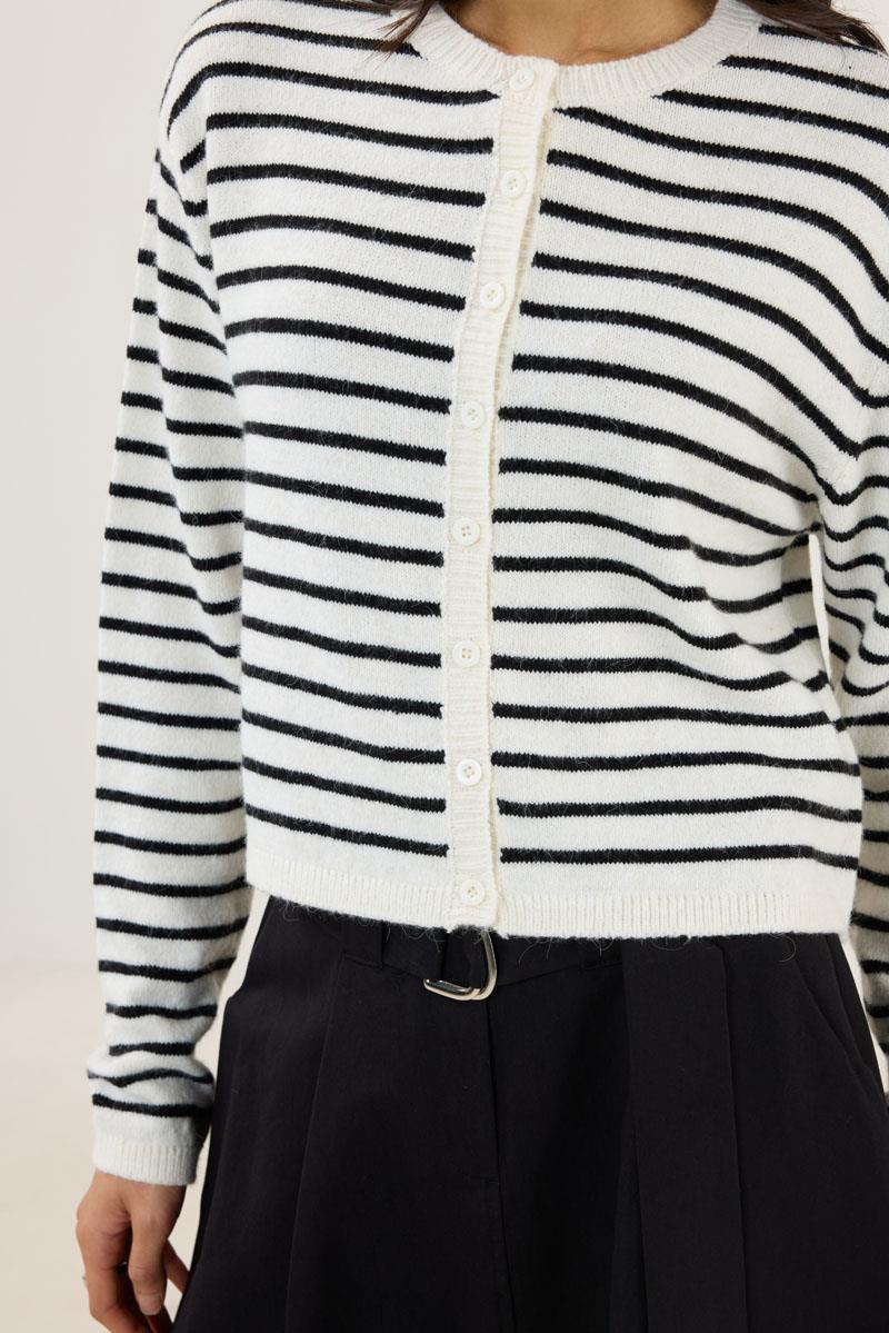 Çizgili İnce Triko Hırka Beyaz (MTW251HRK001)