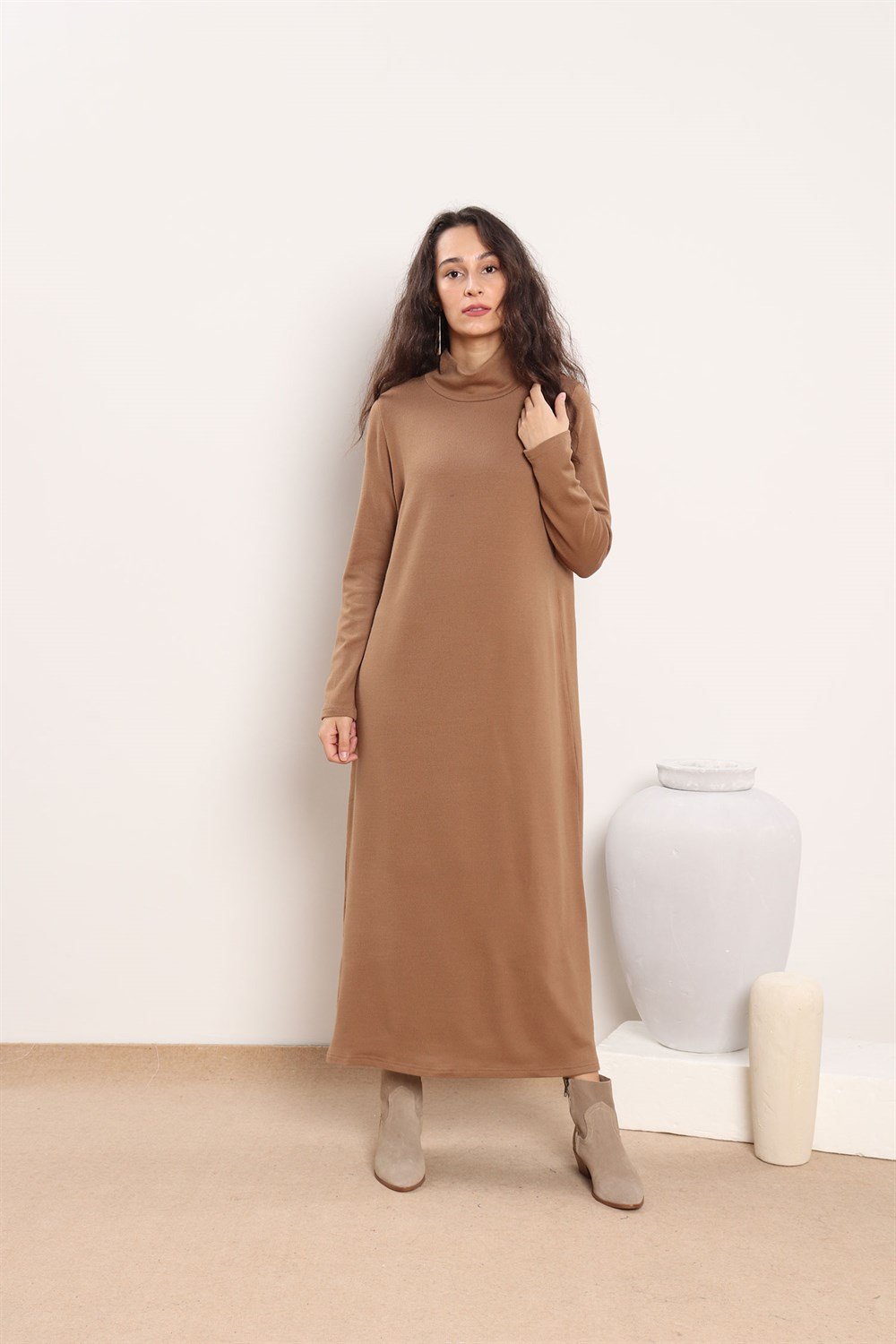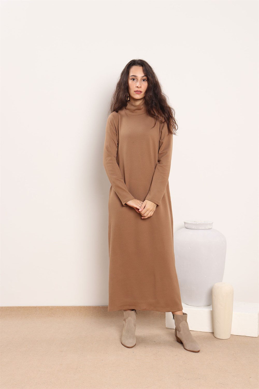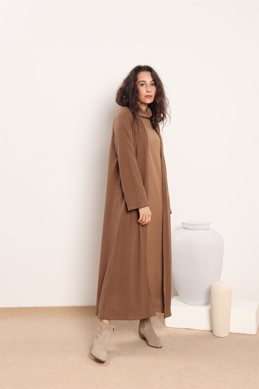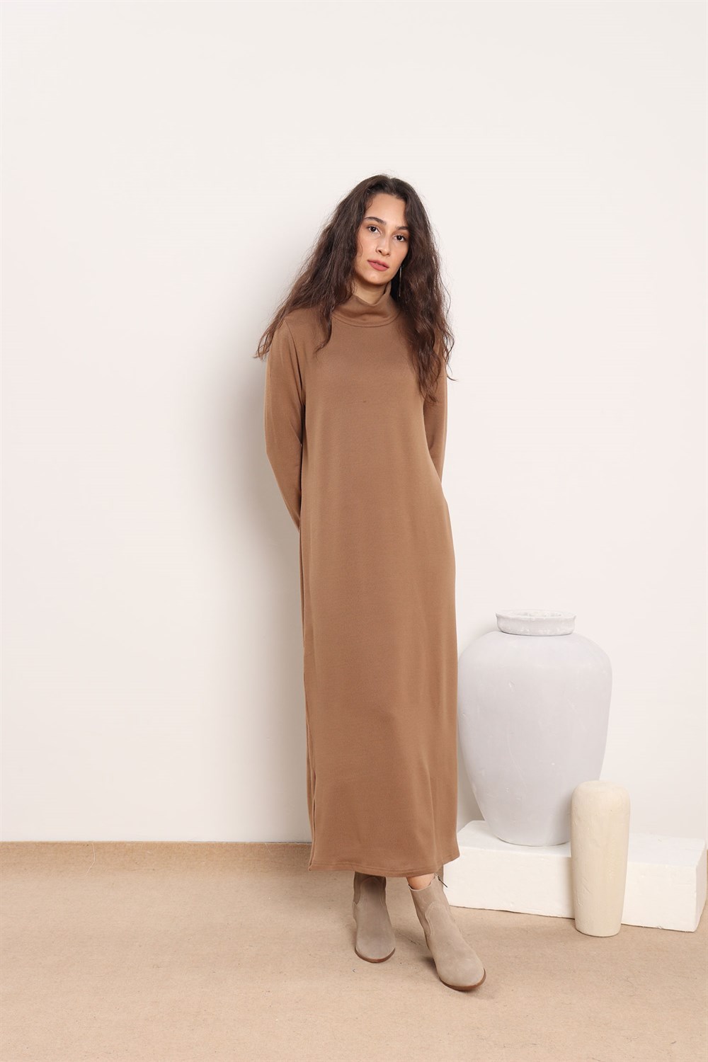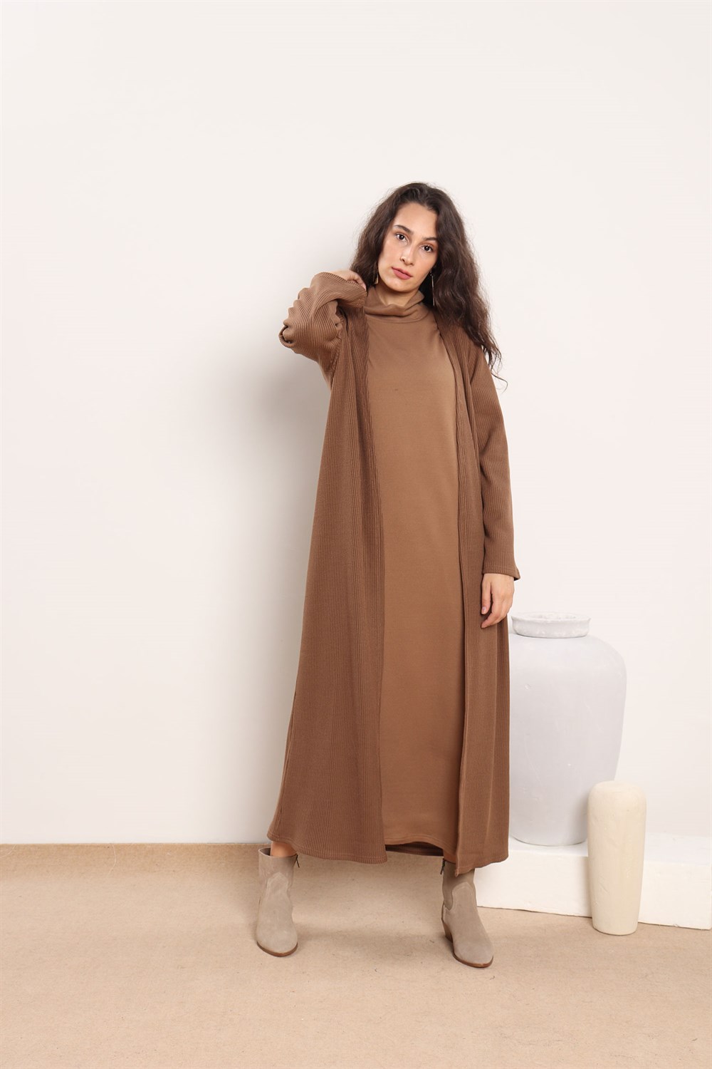 Renk: Camel Kumaş: Akrilik triko Mevsim: Kışlık Boy :ortalama 128 cm Beden seçenekleri: S beden (34-36 uyumlu, göğüs:99 cm) M beden (38-40 uyumlu) Verilen ölçüler en küçük bedene aittir, bedenler arasında ortalama 4 cm fark bulunmaktadır. Mankenin boyu :172 cm dir. Mankenin üzerindeki ürün: S bedendir. Kombindeki diğer ürünler: