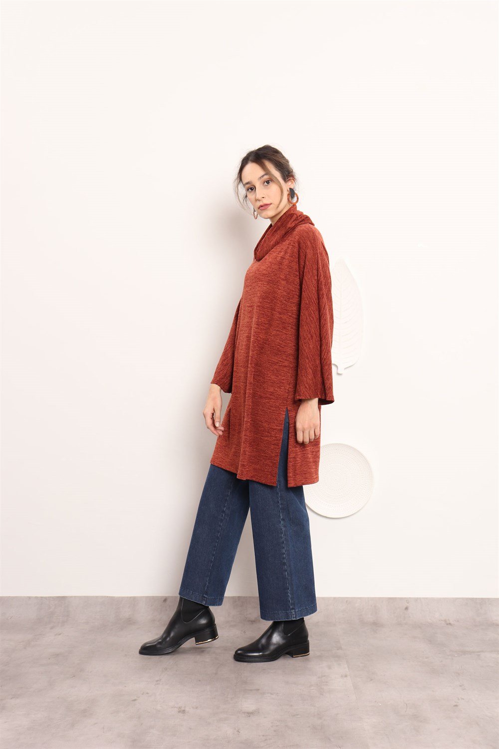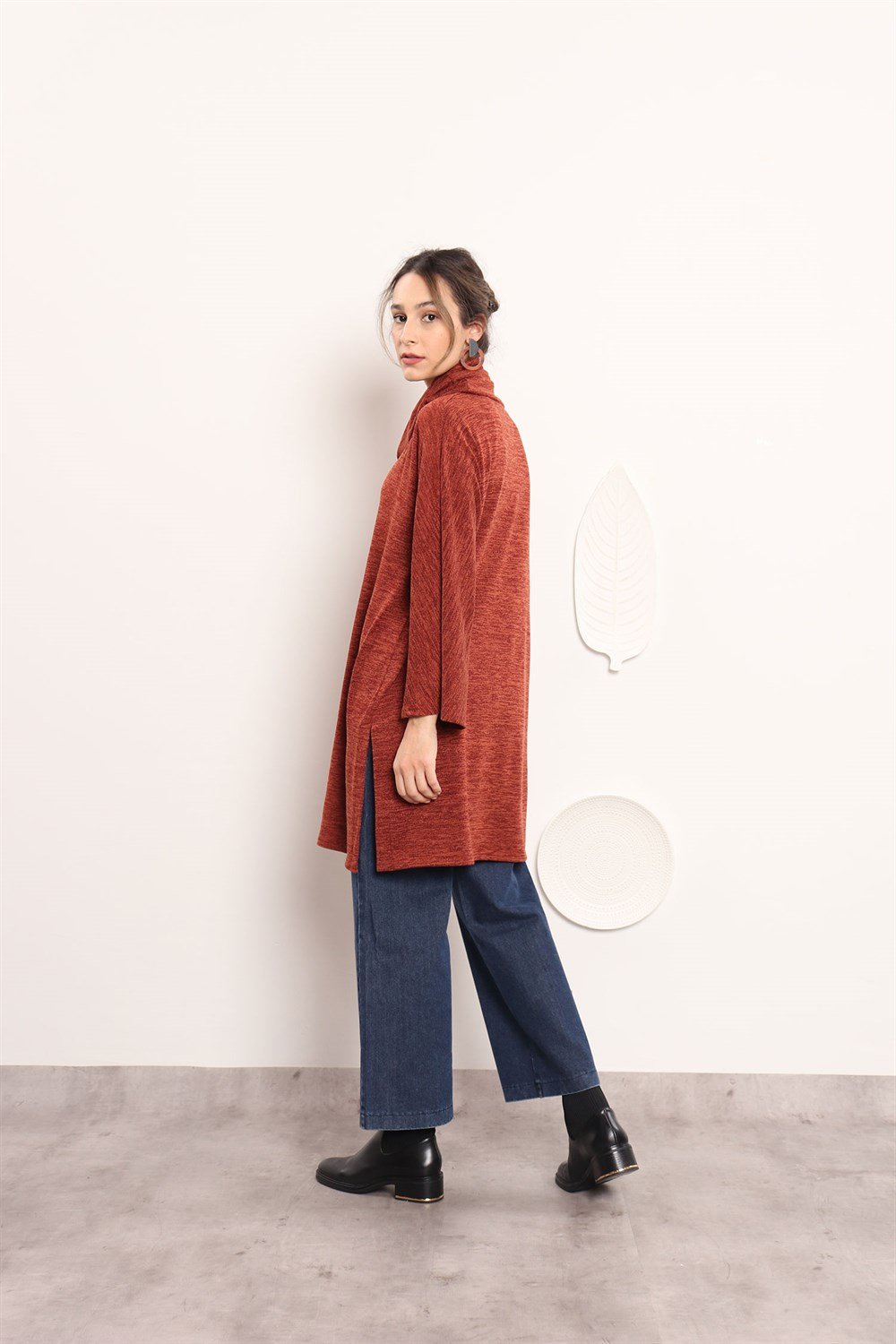 Renk: Kiremit Kumaş: Akrilik-pamuk karışımlı triko Mevsim: Kışlık-baharlık Boy :ortalama 90 cm