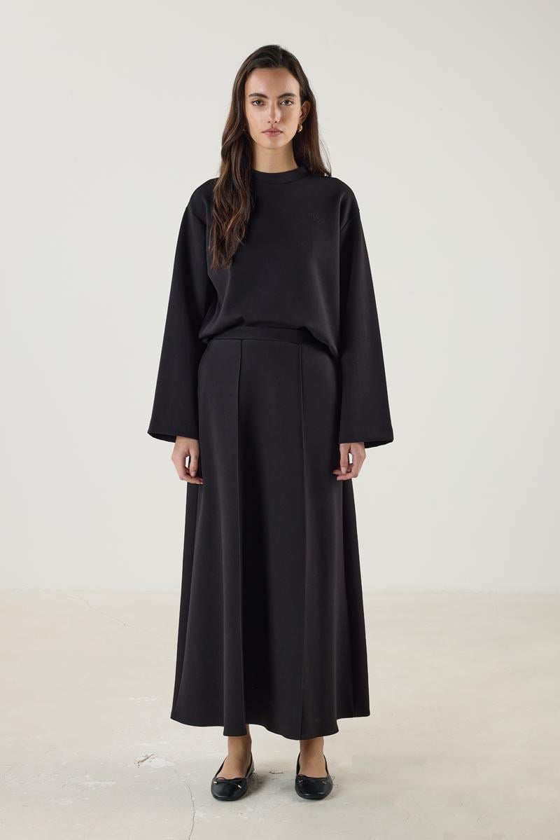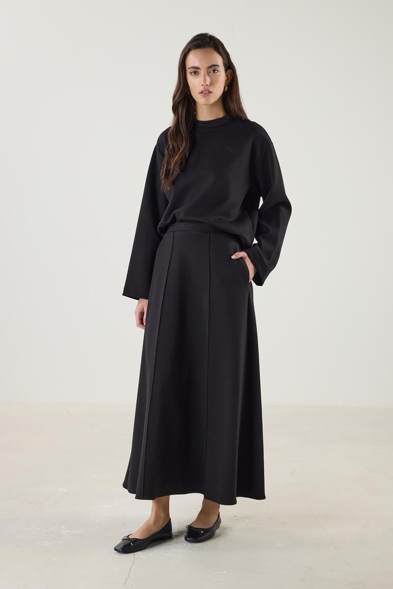 Kadın Dikiş Detaylı Çan Kesim Etek Siyah (MTM25KETK001)