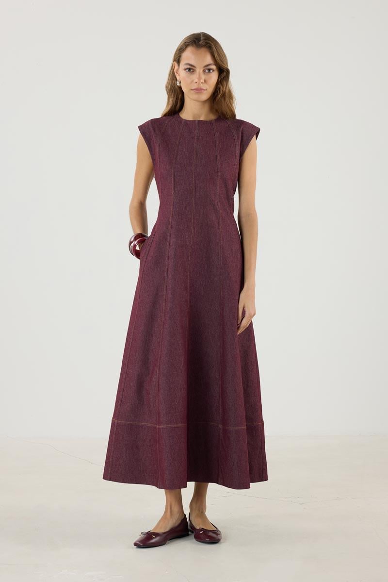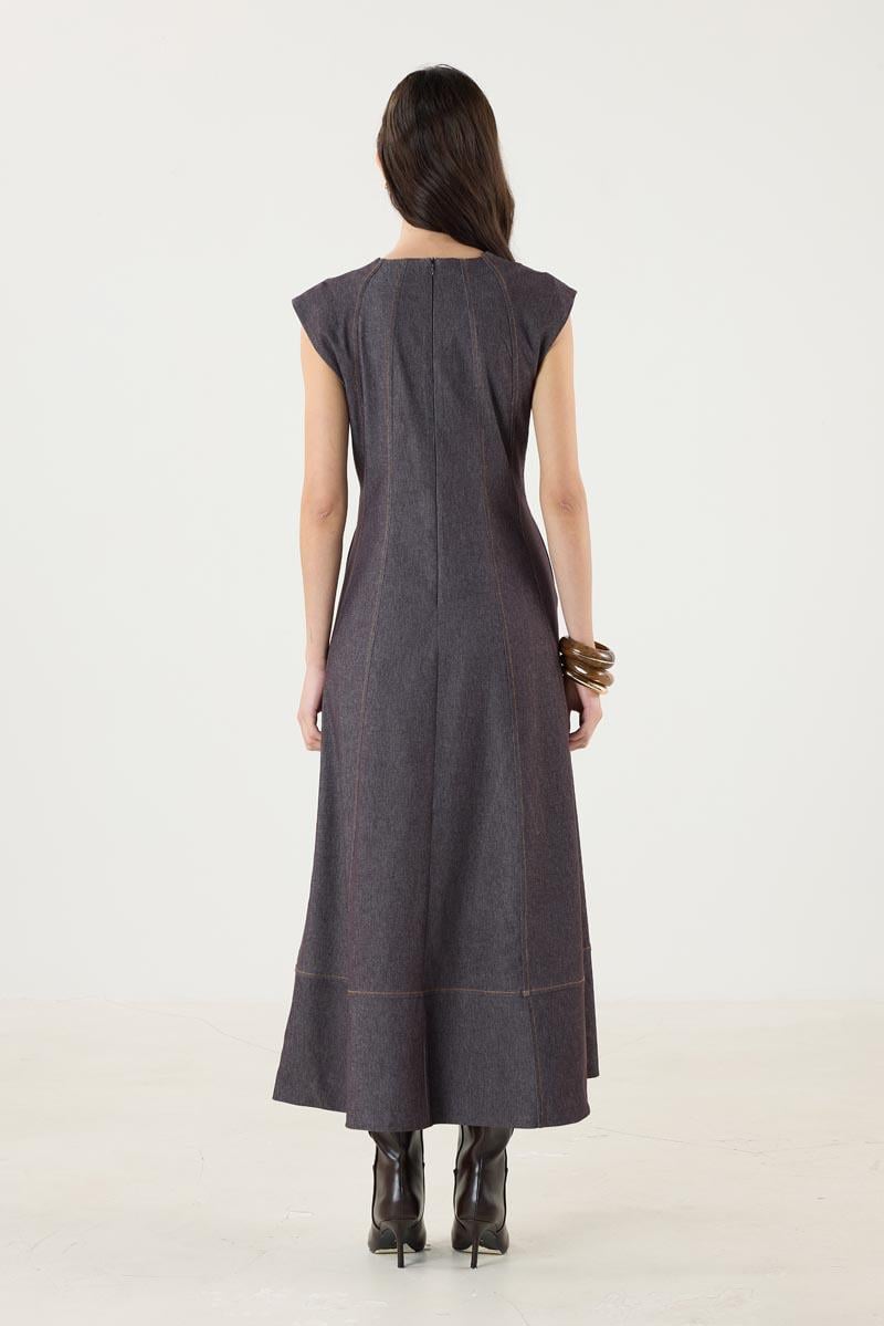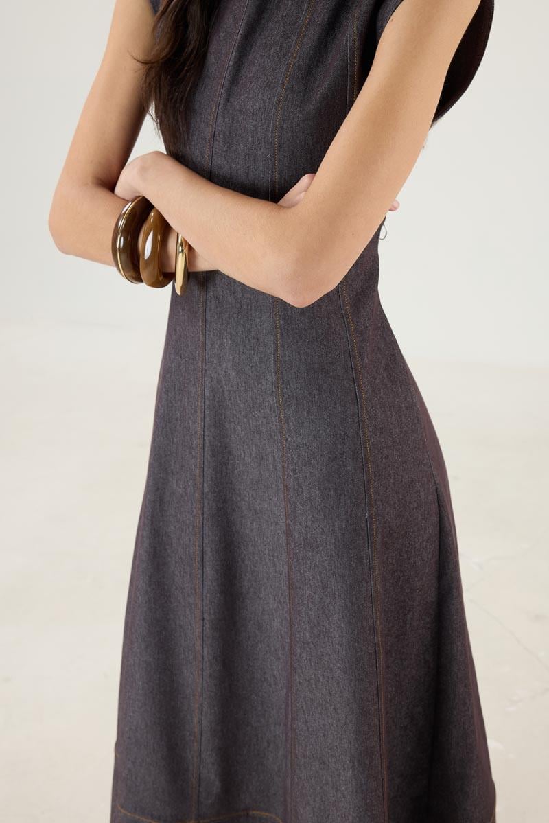 Kadın Bisiklet Yaka Dikiş Detaylı Kot Jile Elbise Kahverengi (MTM25KJLE001)