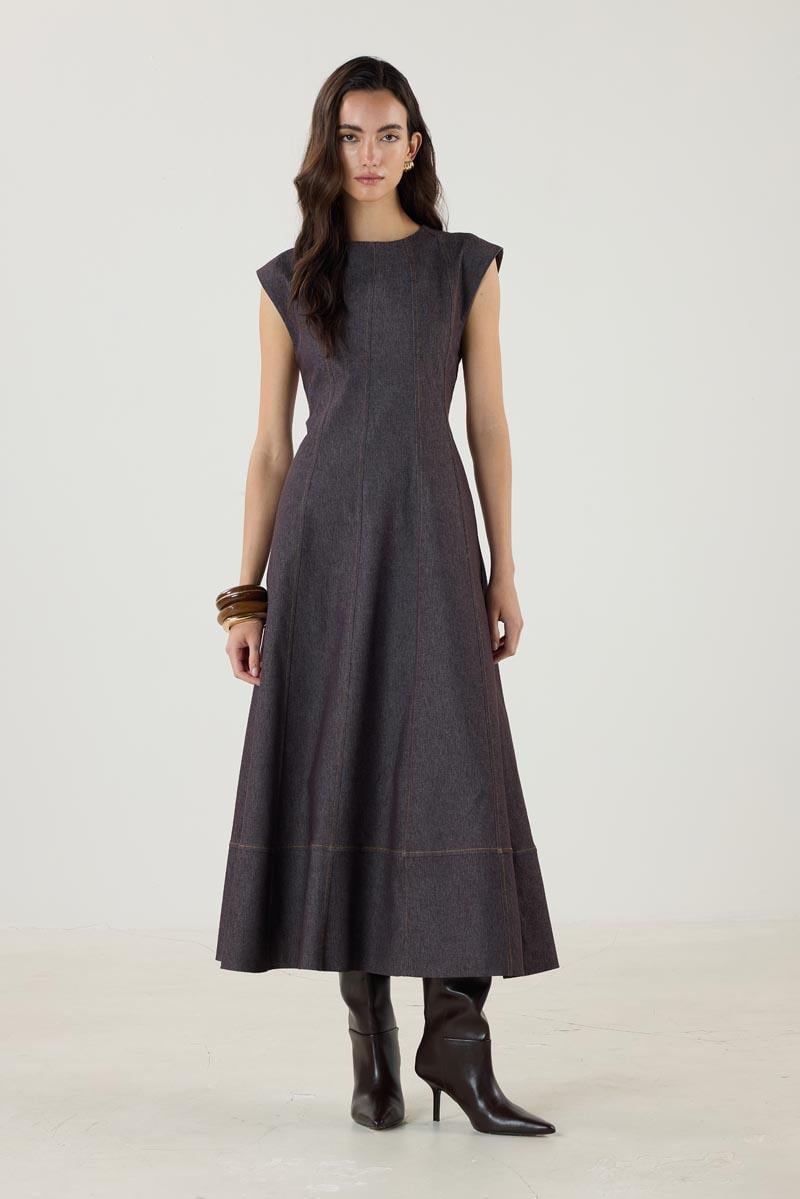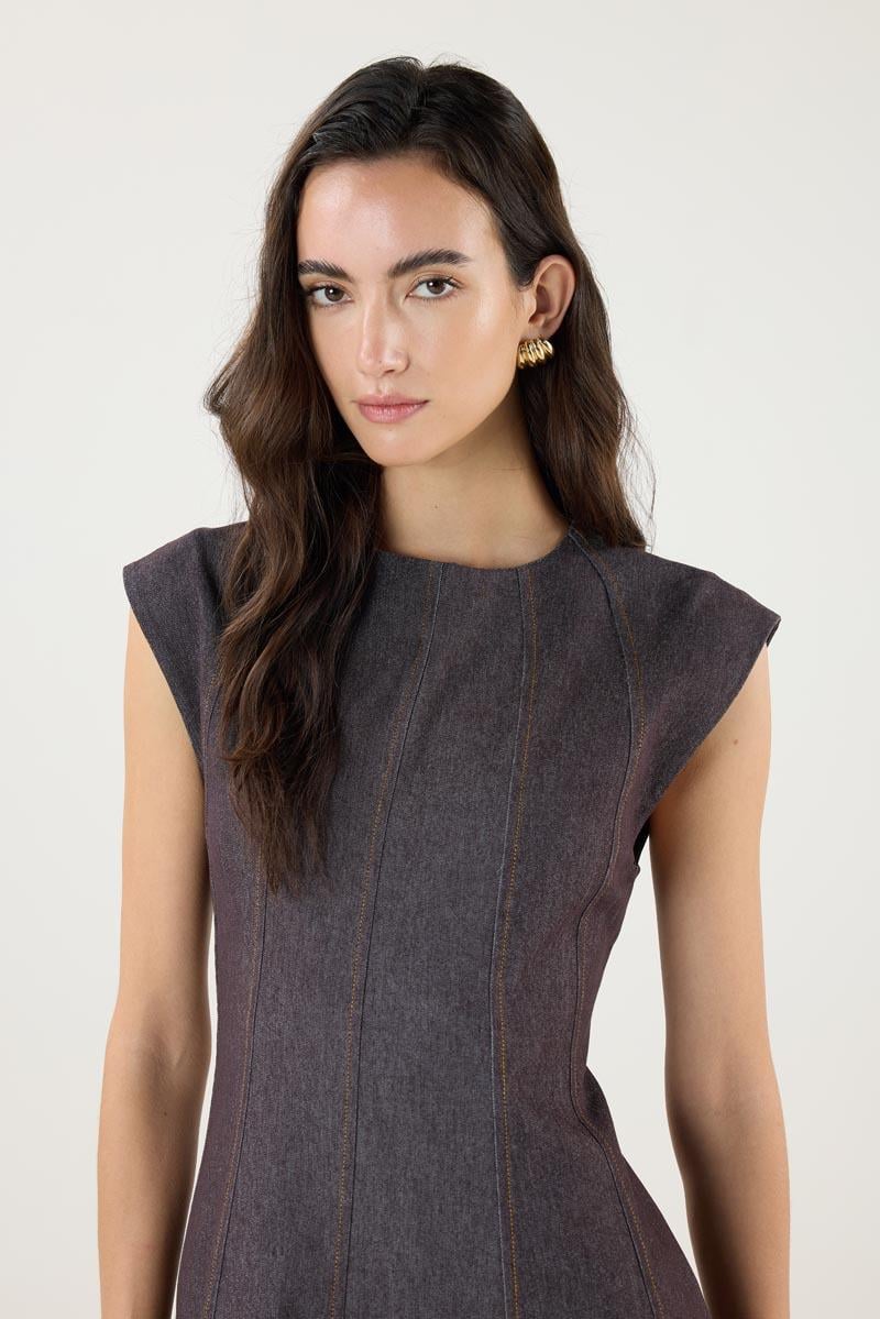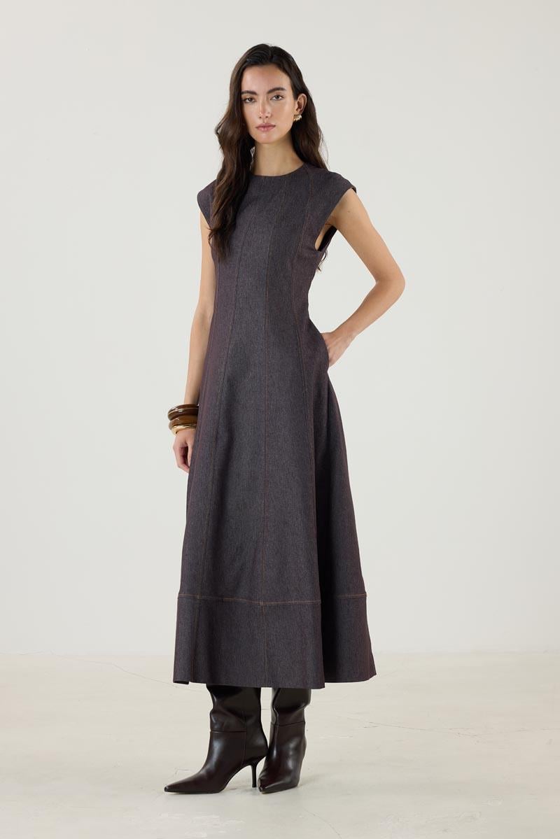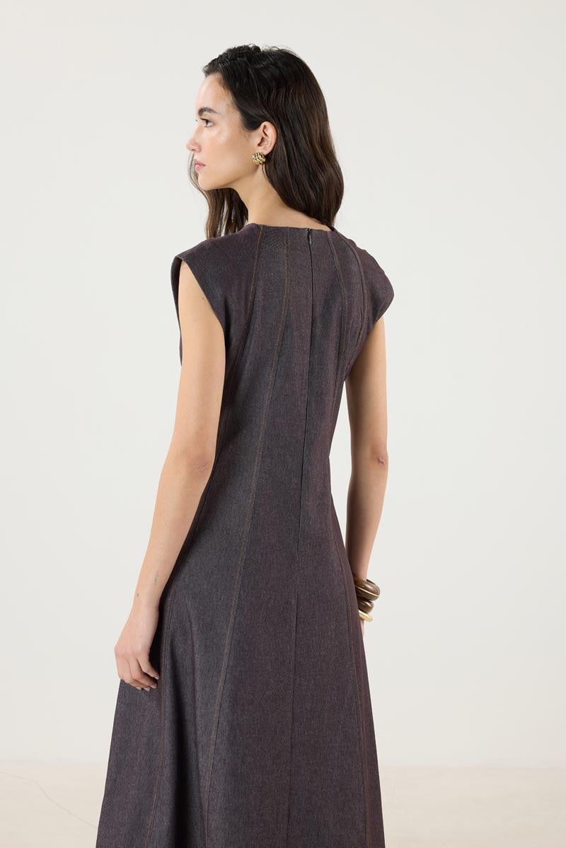 Kadın Bisiklet Yaka Dikiş Detaylı Kot Jile Elbise Kahverengi (MTM25KJLE001)
