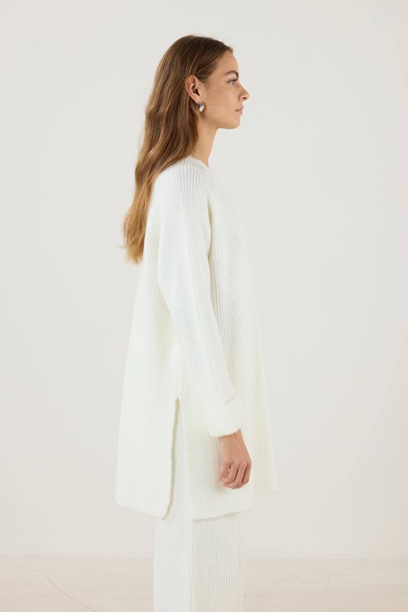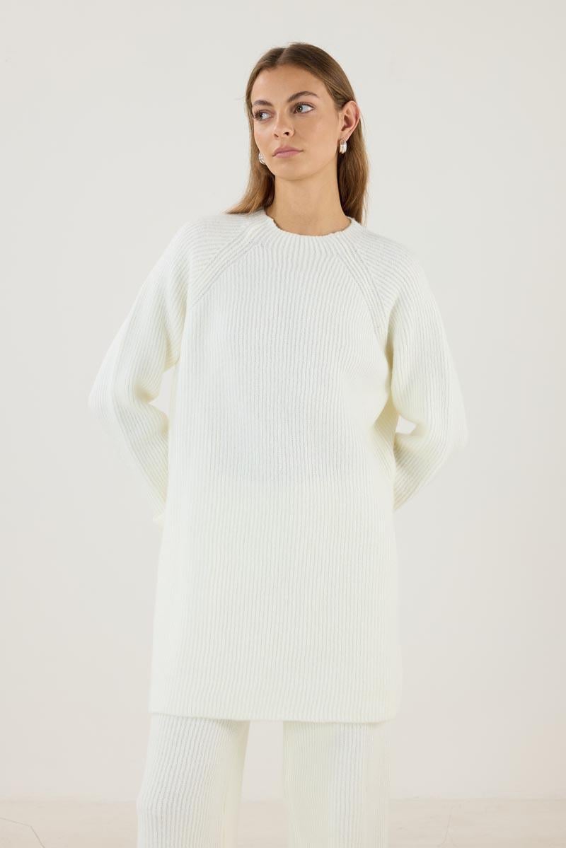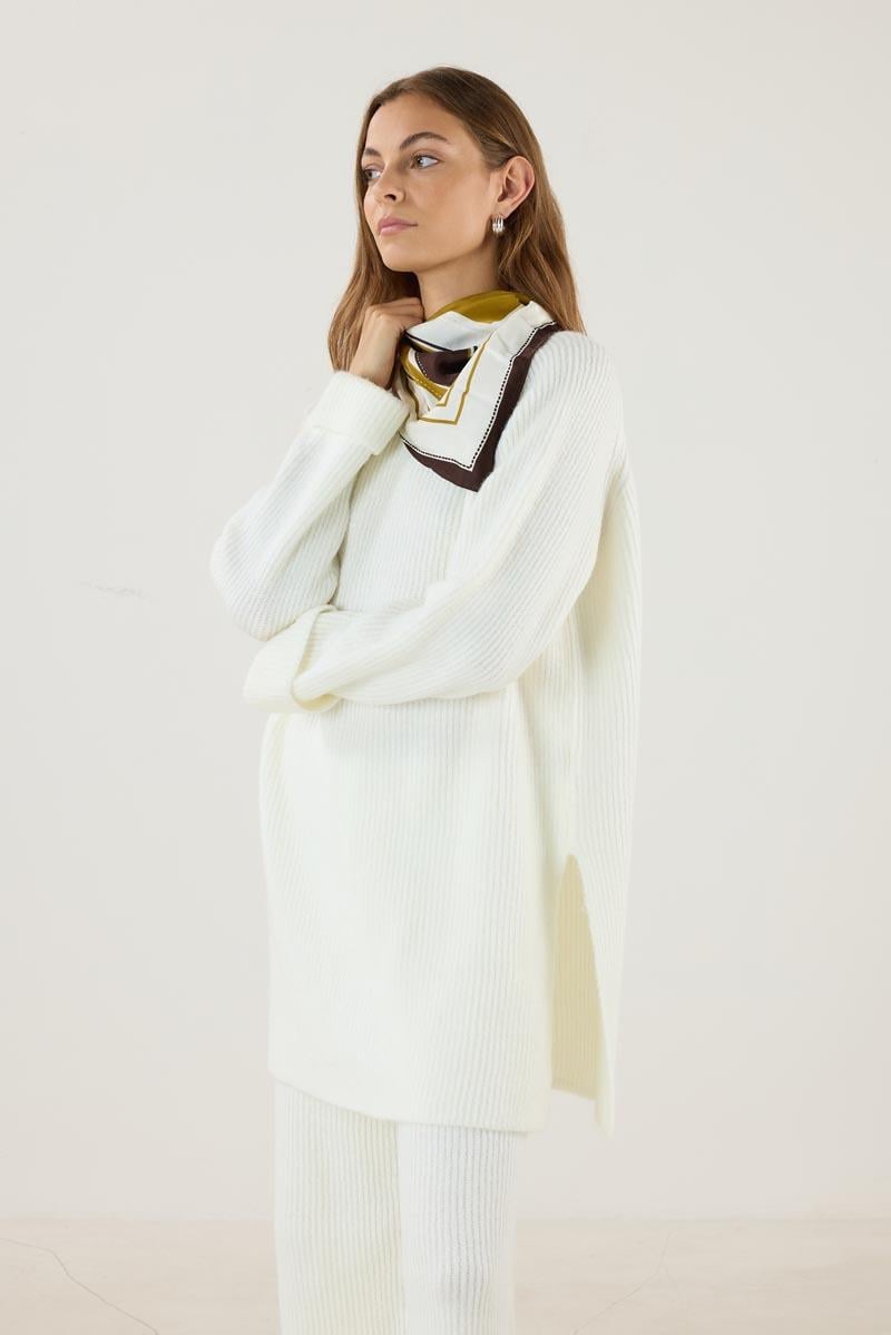 Kadın Bisiklet Yaka Uzun Kollu Duble Kollu Kalın Örme Triko Kazak Ekru (MTW25KKZK002)