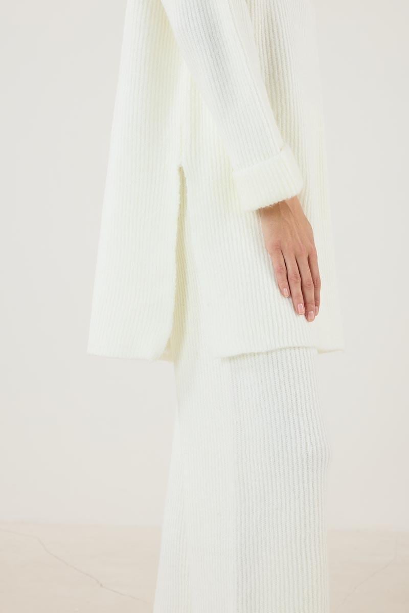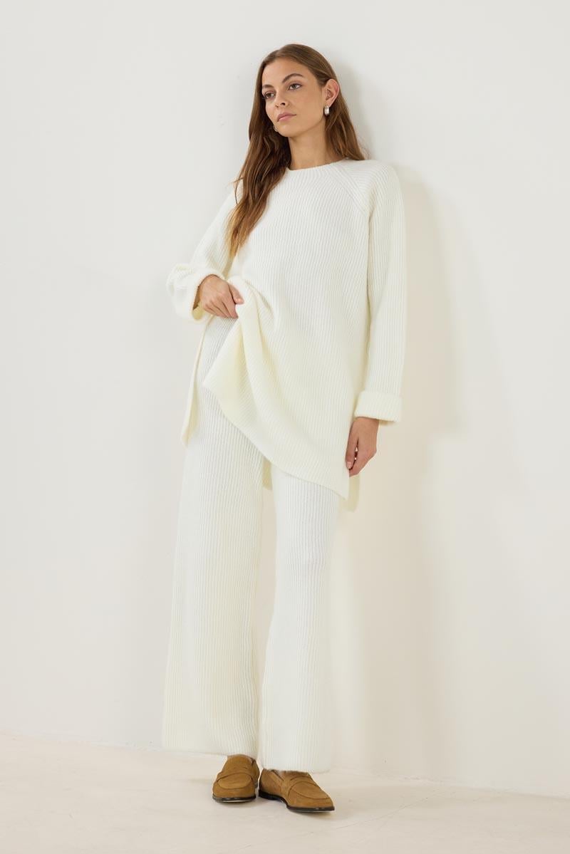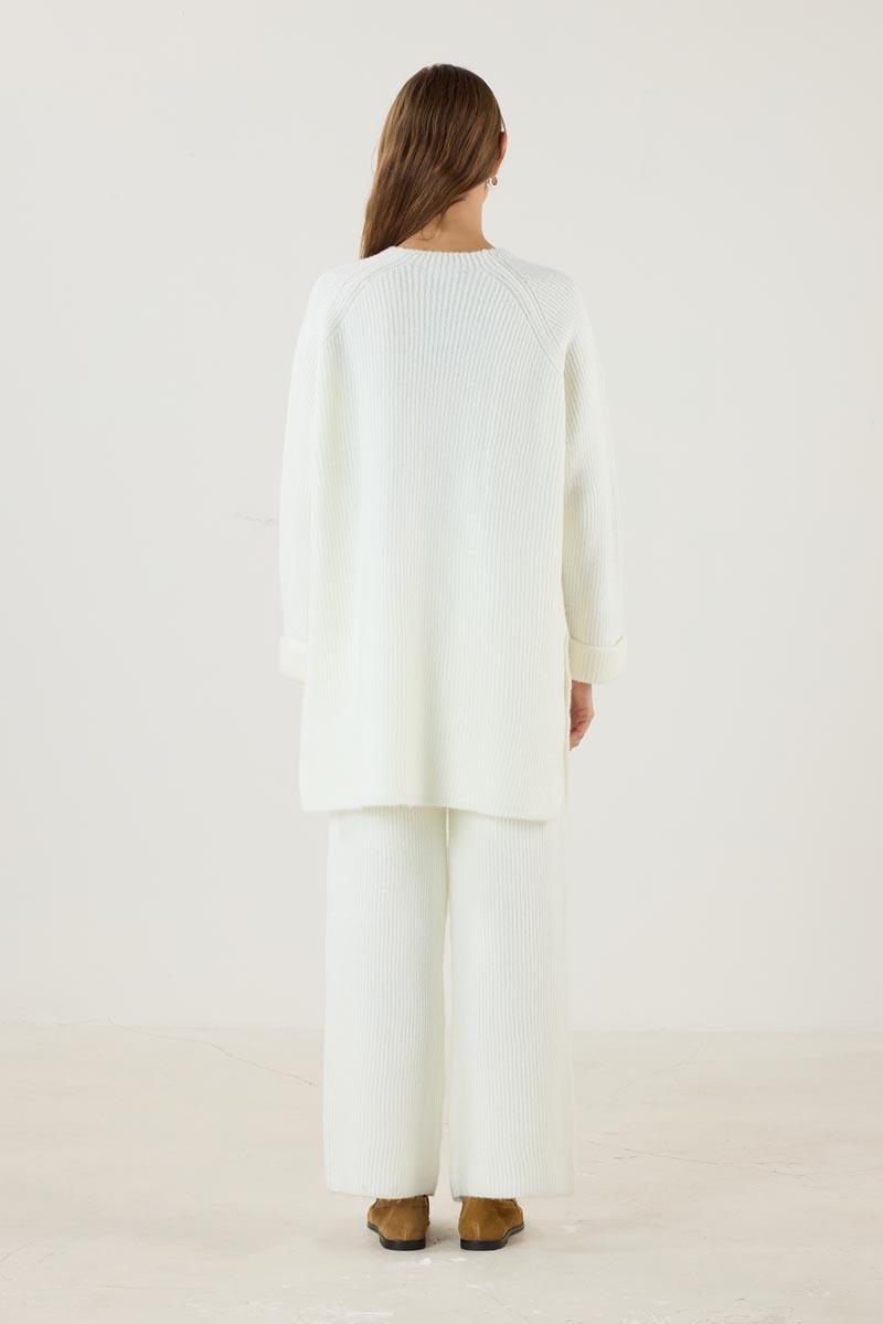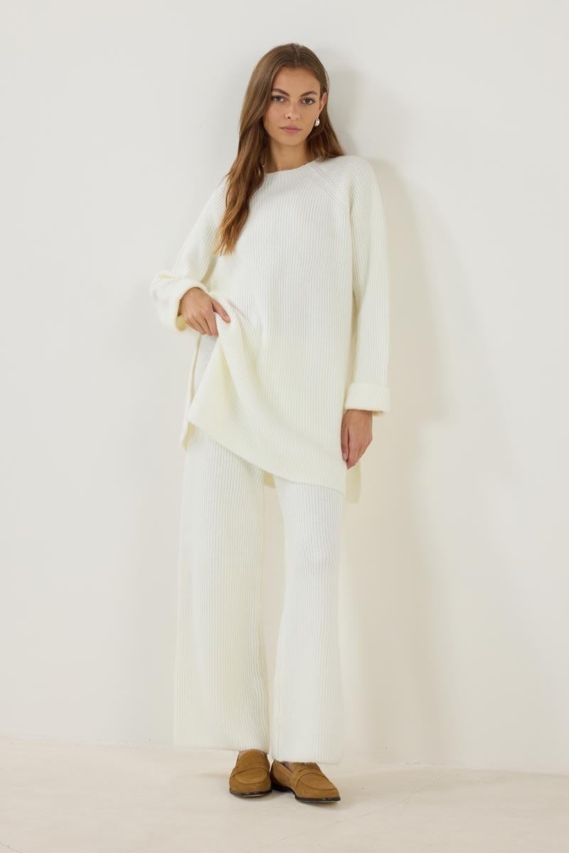 Kadın Bisiklet Yaka Uzun Kollu Duble Kollu Kalın Örme Triko Kazak Ekru (MTW25KKZK002)
