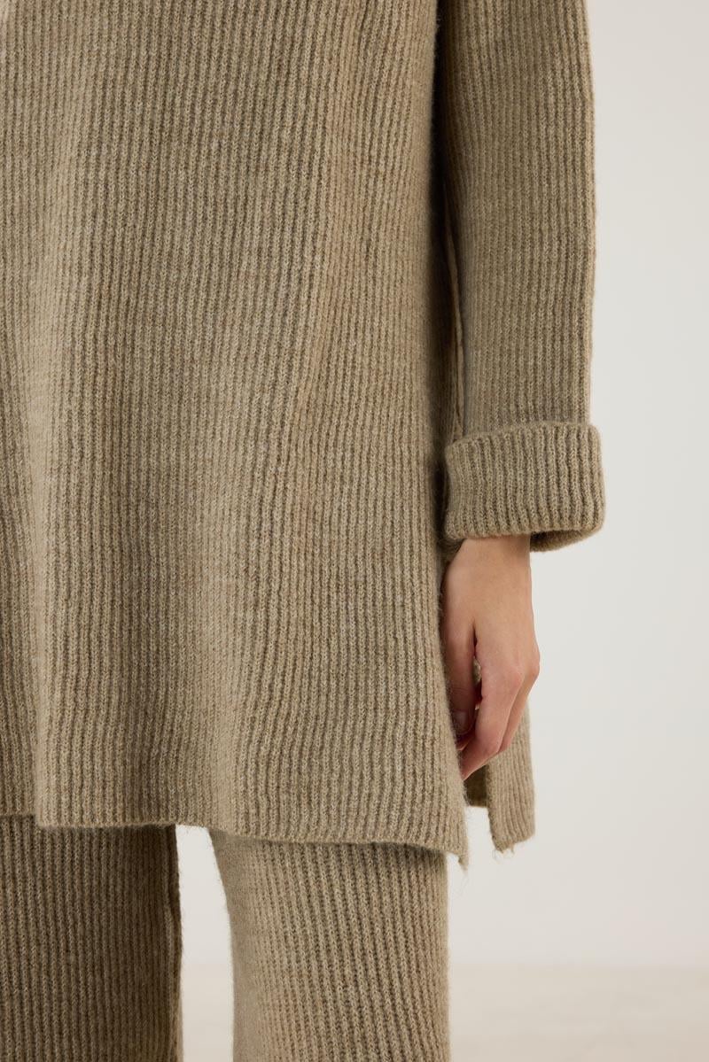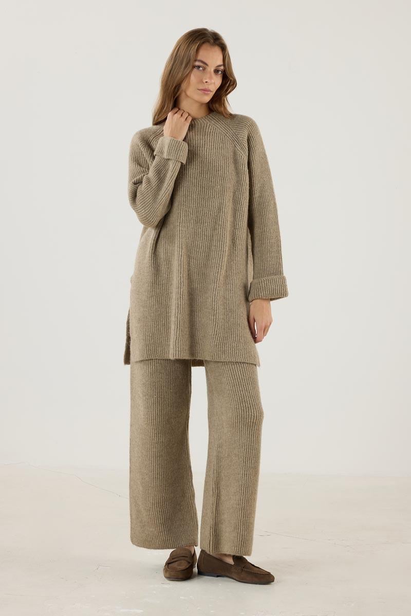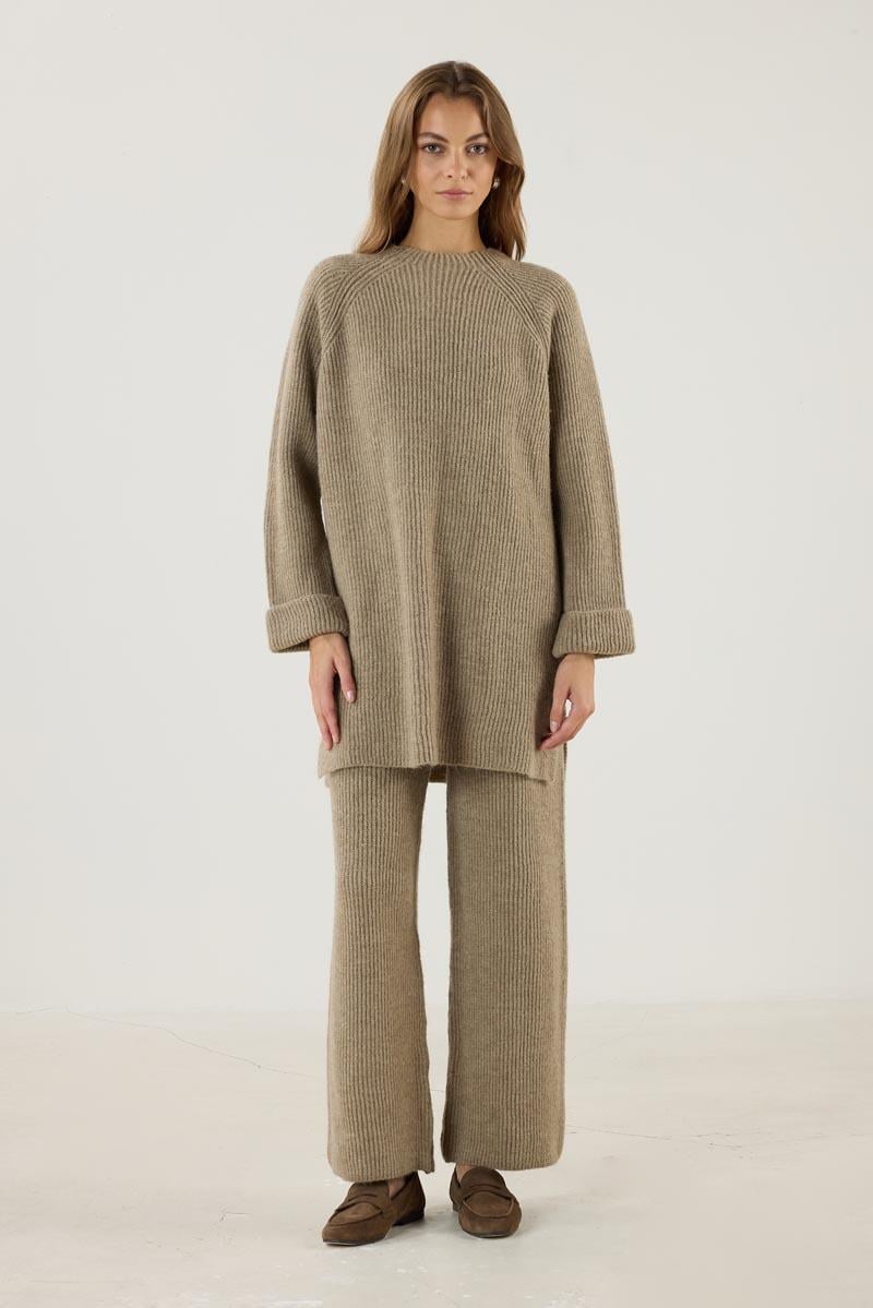 Kadın Bisiklet Yaka Uzun Kollu Duble Kollu Kalın Örme Triko Kazak Vizon (MTW25KKZK002)