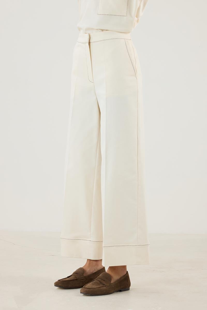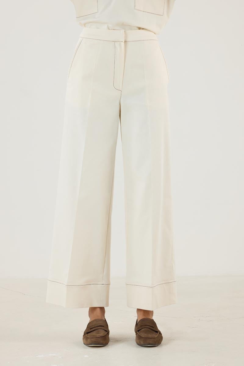 Kadın Duble Paça Kot Pantolon Ekru (MTB25KPNT001)