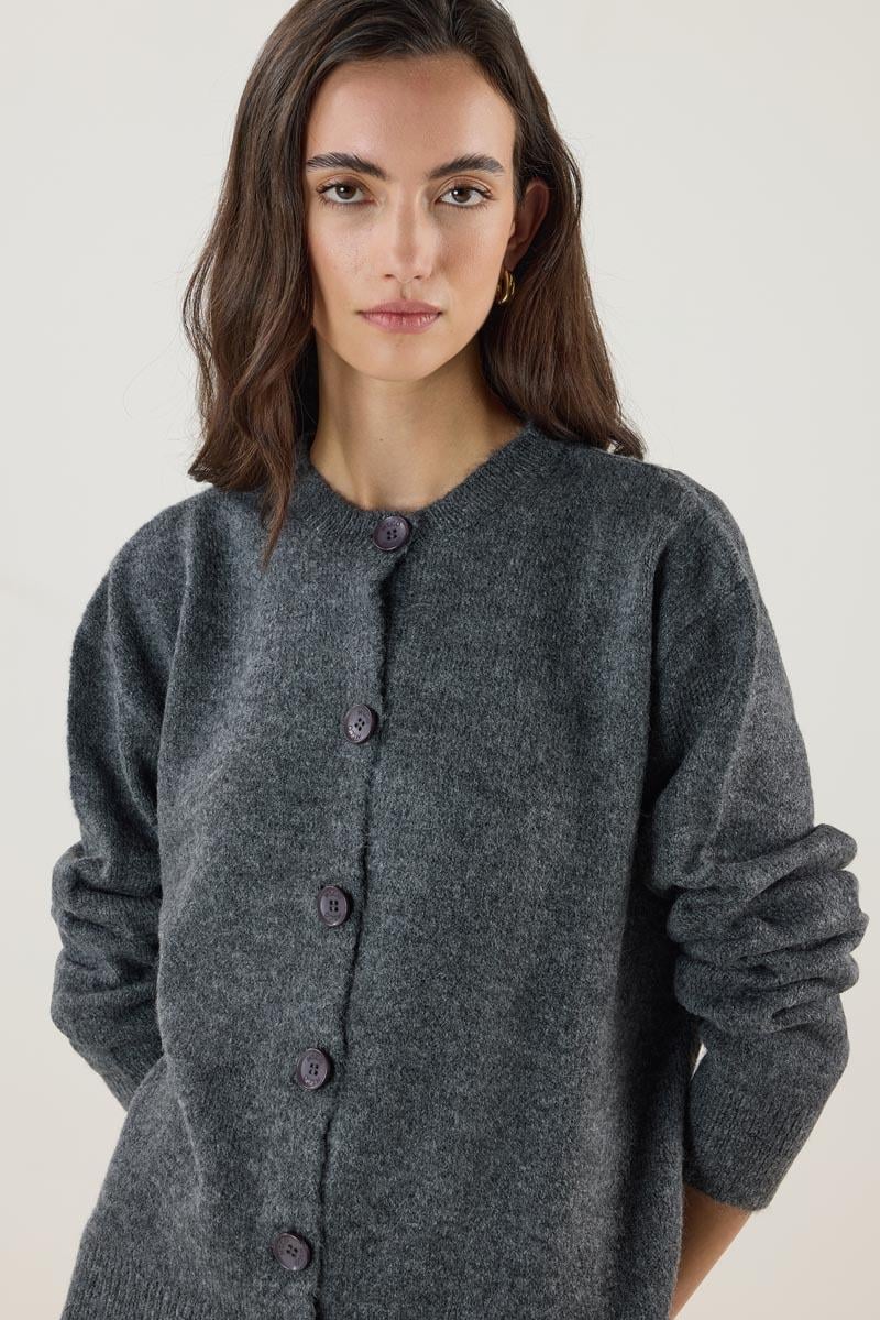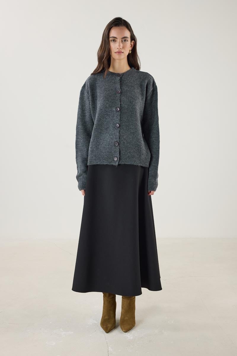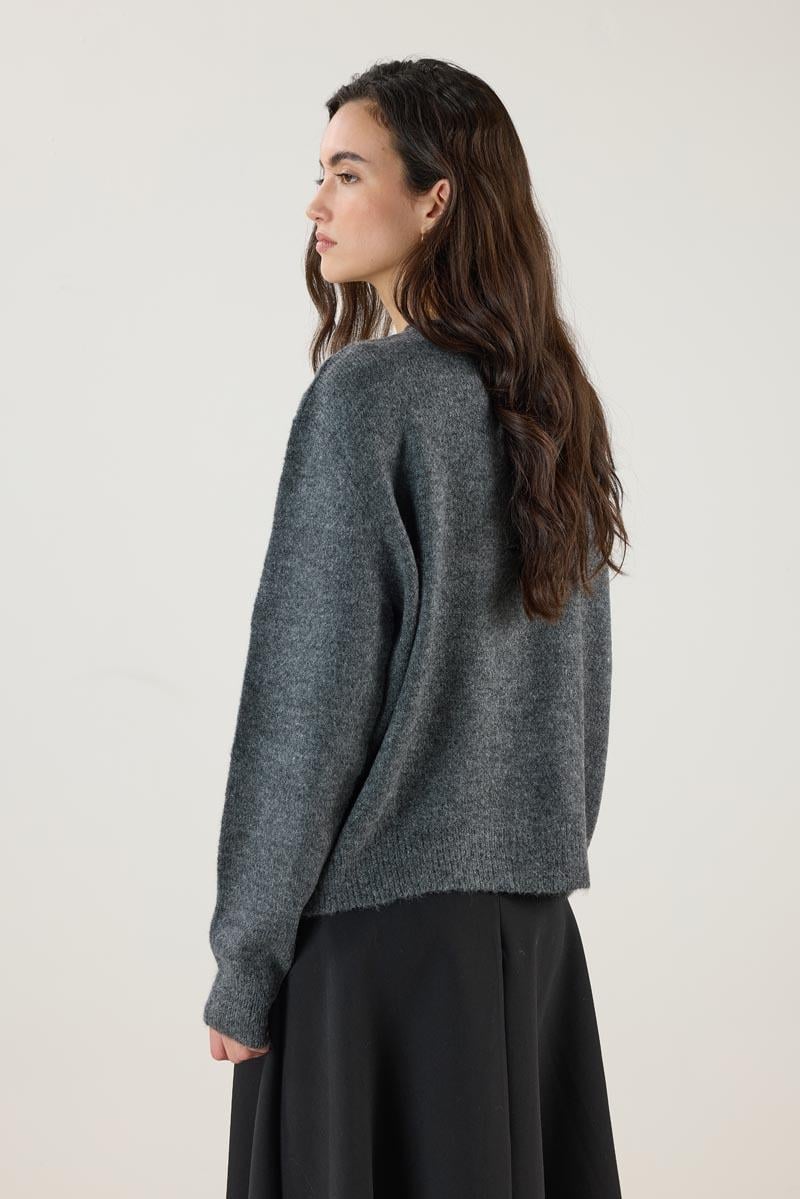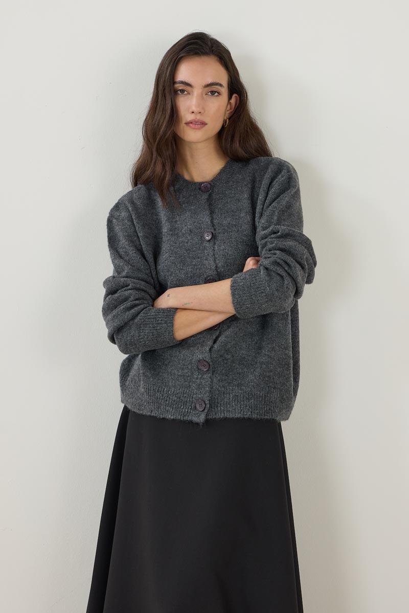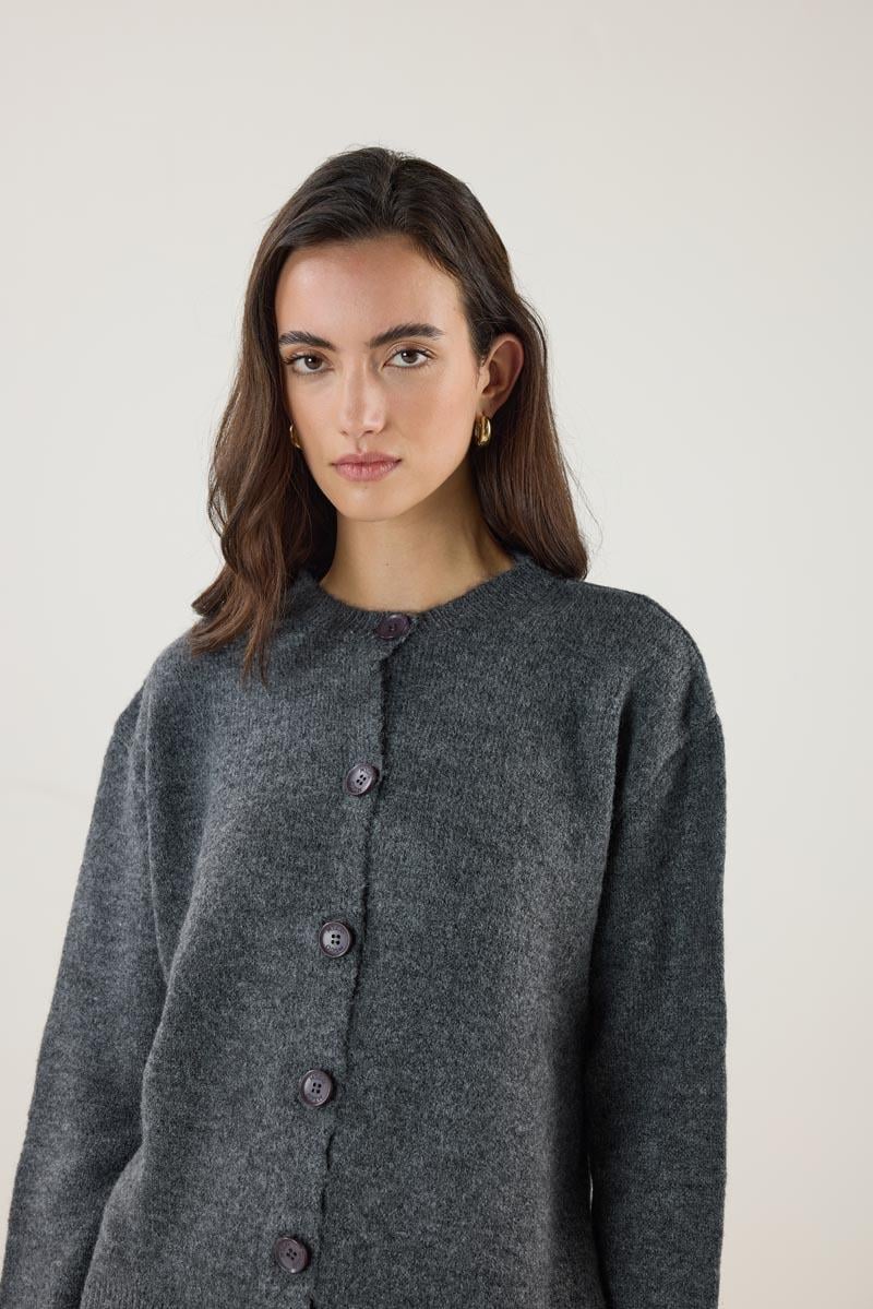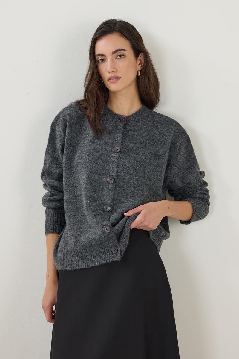 Kadın V Yaka Düğmeli Örme Triko Kısa Hırka Antrasit (MTW25KHRK001)
