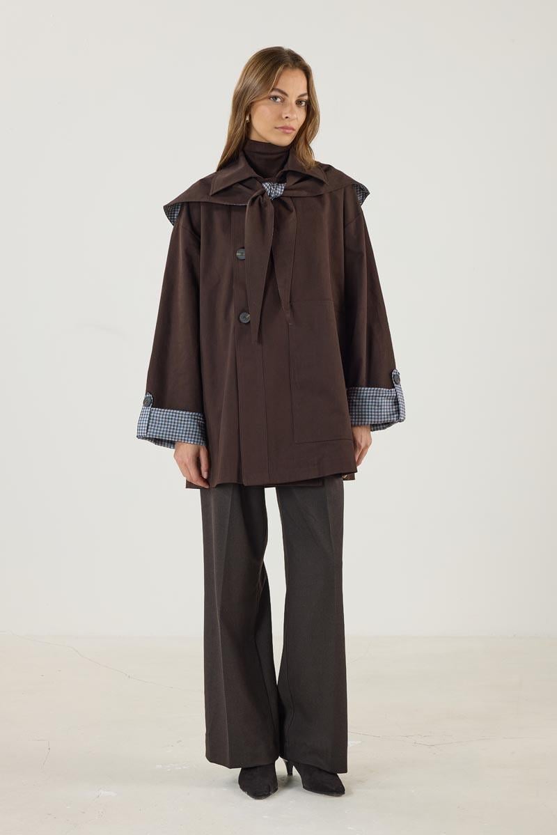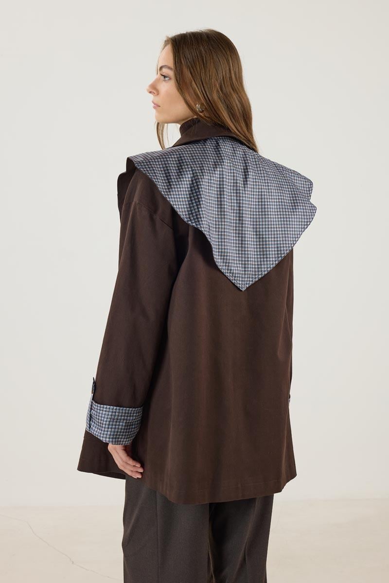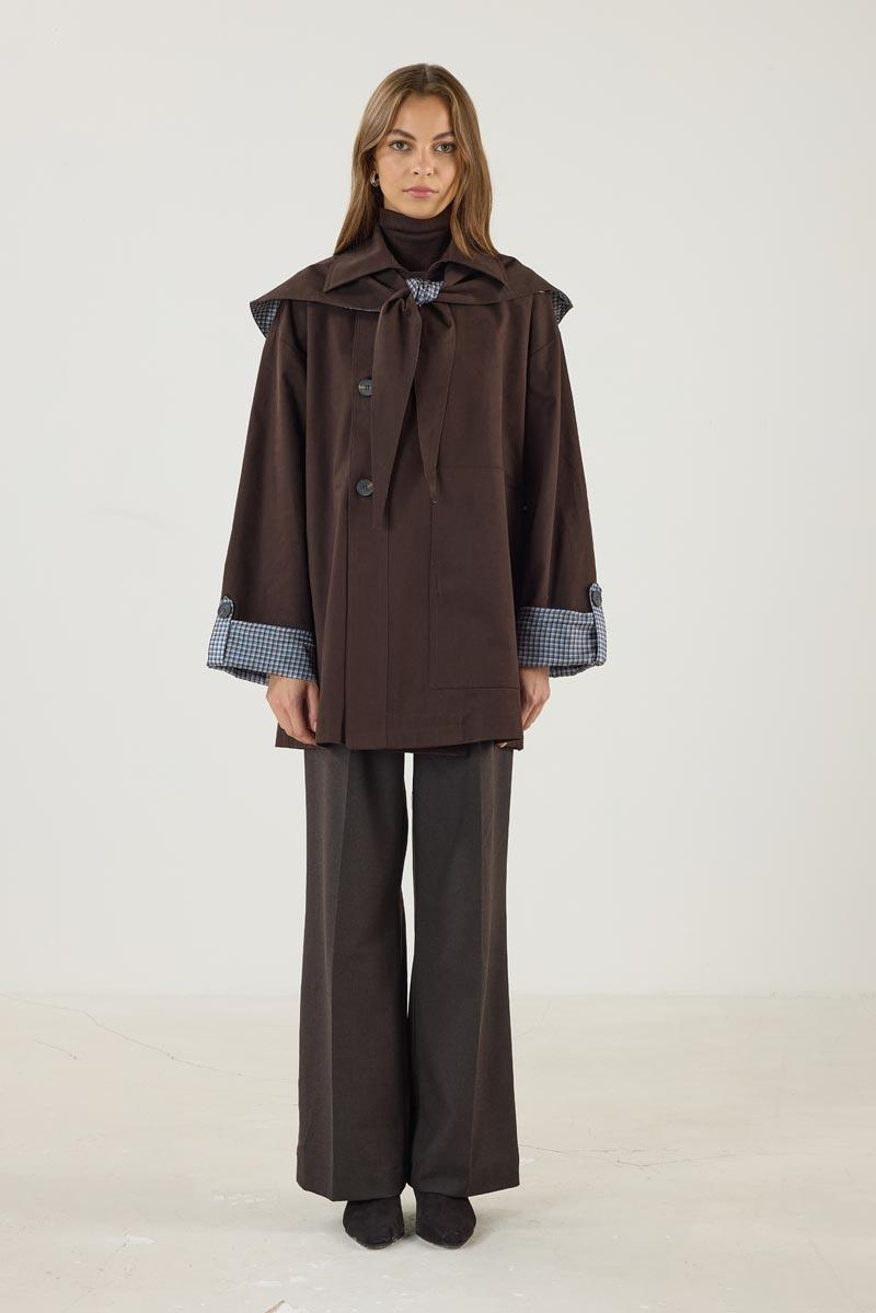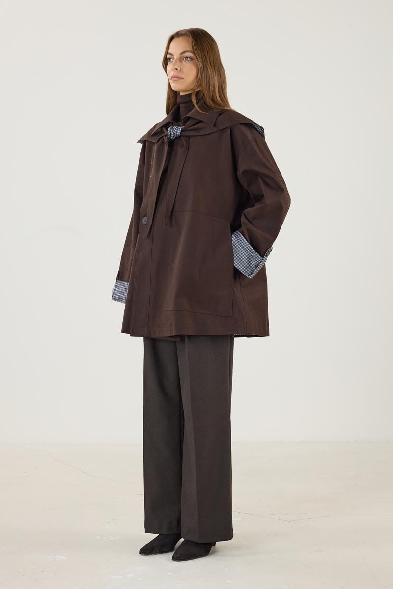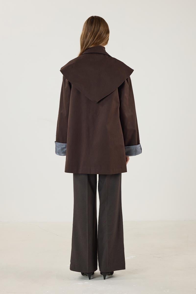 Kadın Gömlek Yaka Ekose Astarlı Trençkot Acı kahve (MTM25KTRC004)