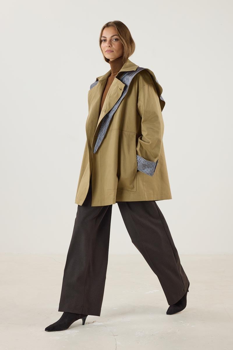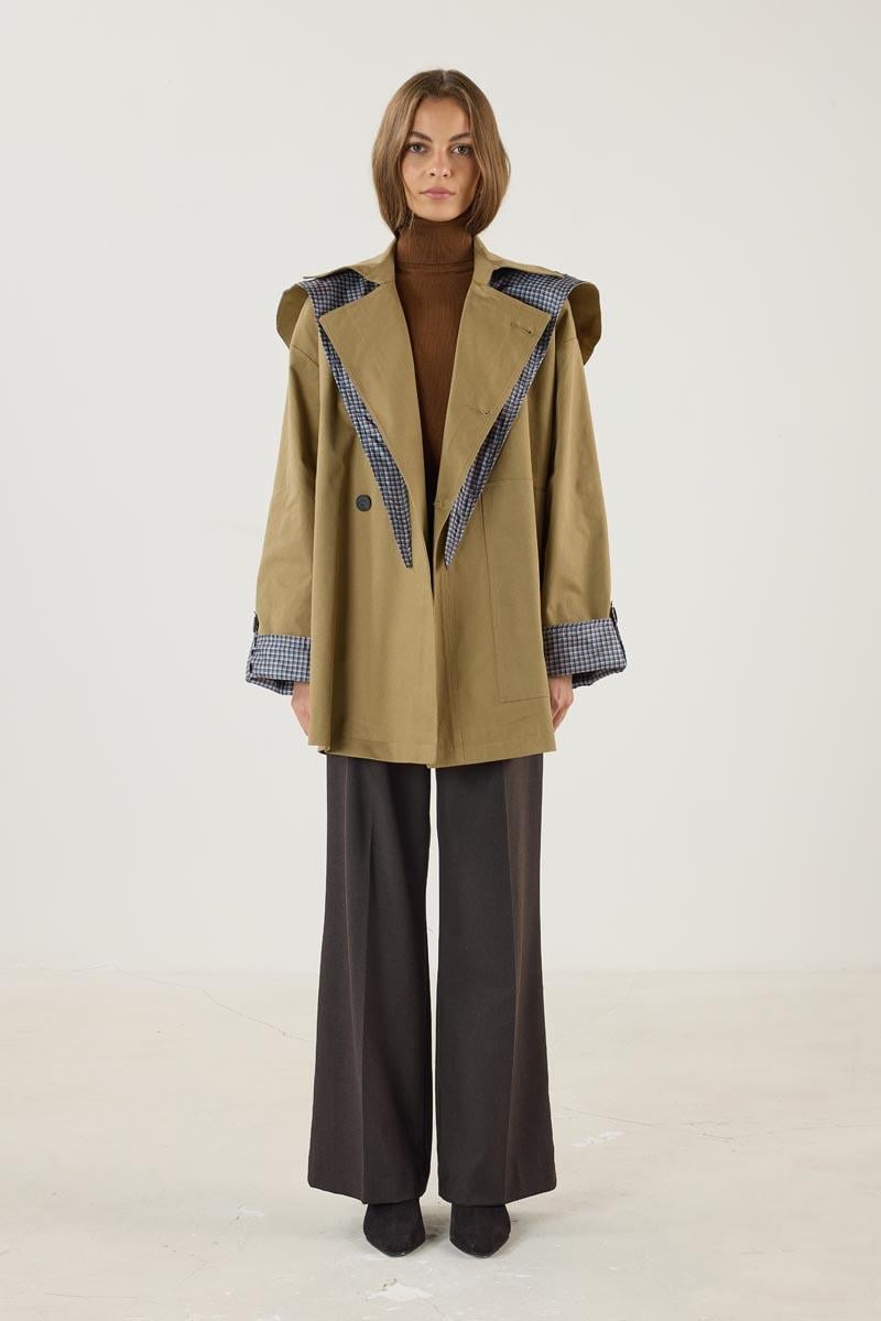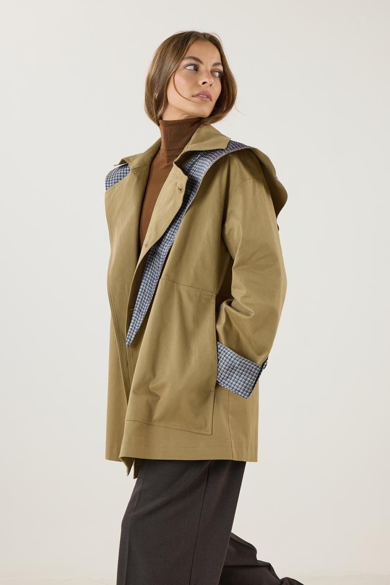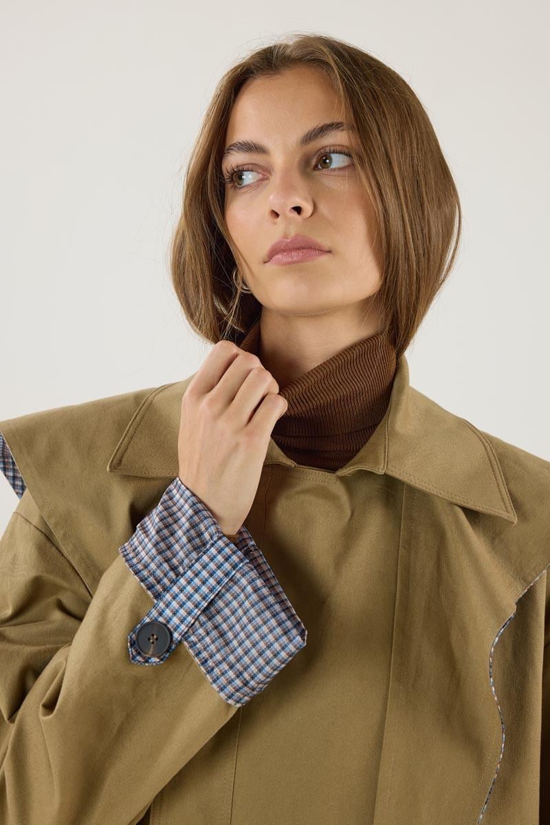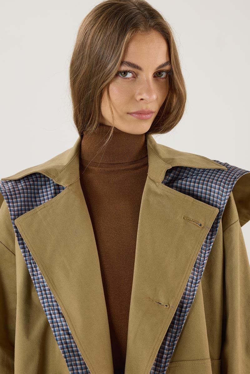 Kadın Gömlek Yaka Ekose Astarlı Trençkot Vizon Kadın Gömlek Yaka Ekose Astarlı Trençkot Acı kahve