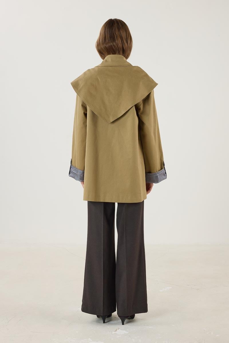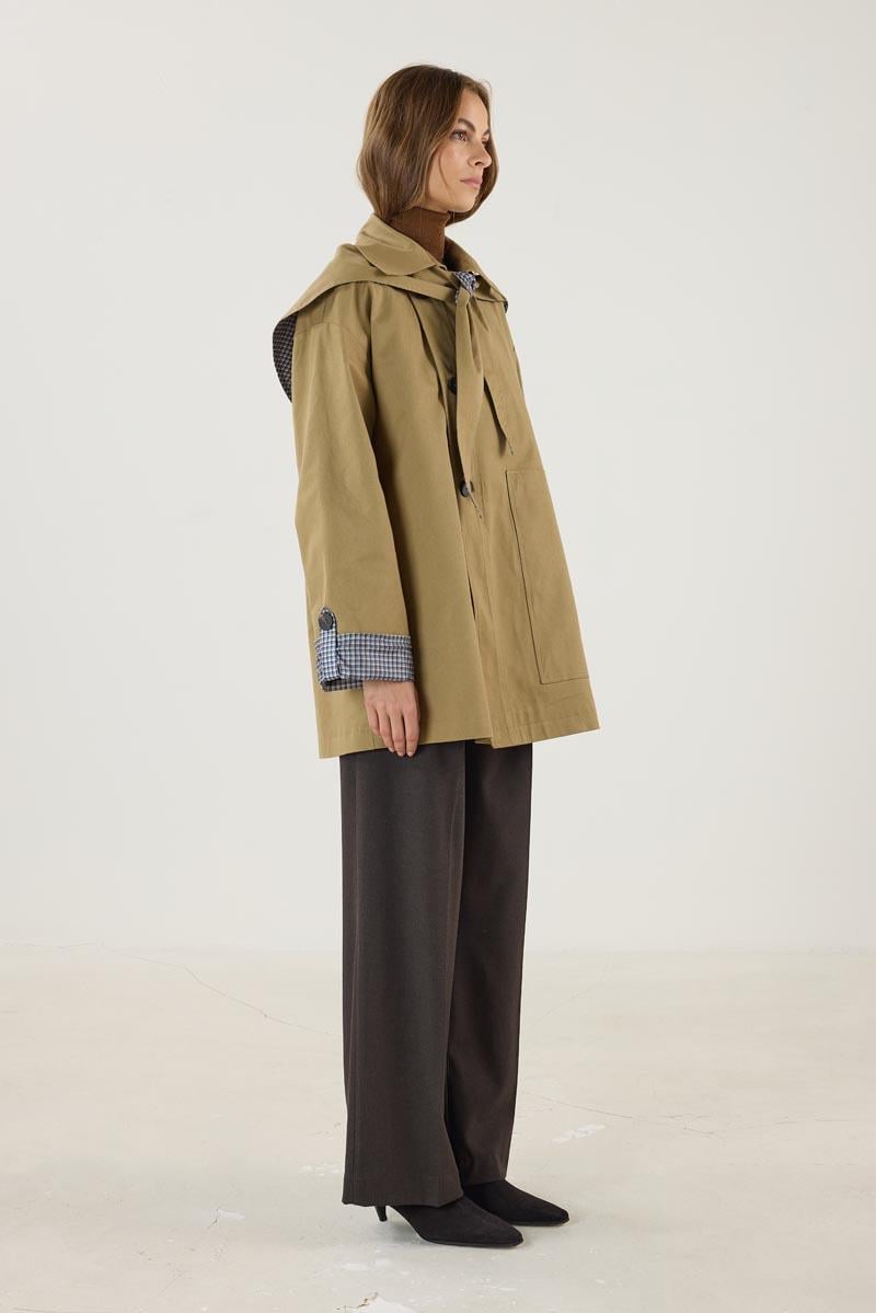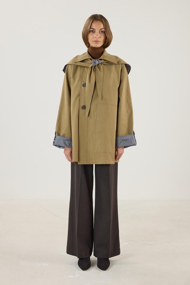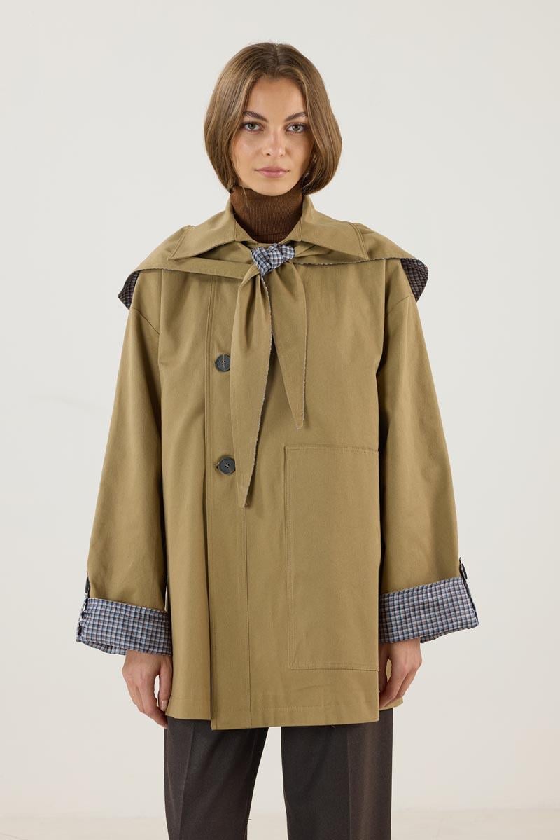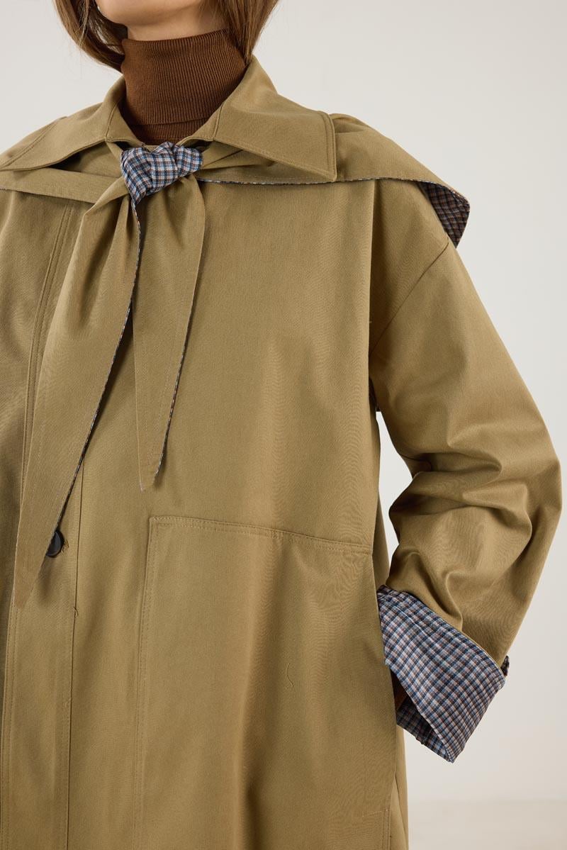 Kadın Gömlek Yaka Ekose Astarlı Trençkot Camel (MTM25KTRC004)