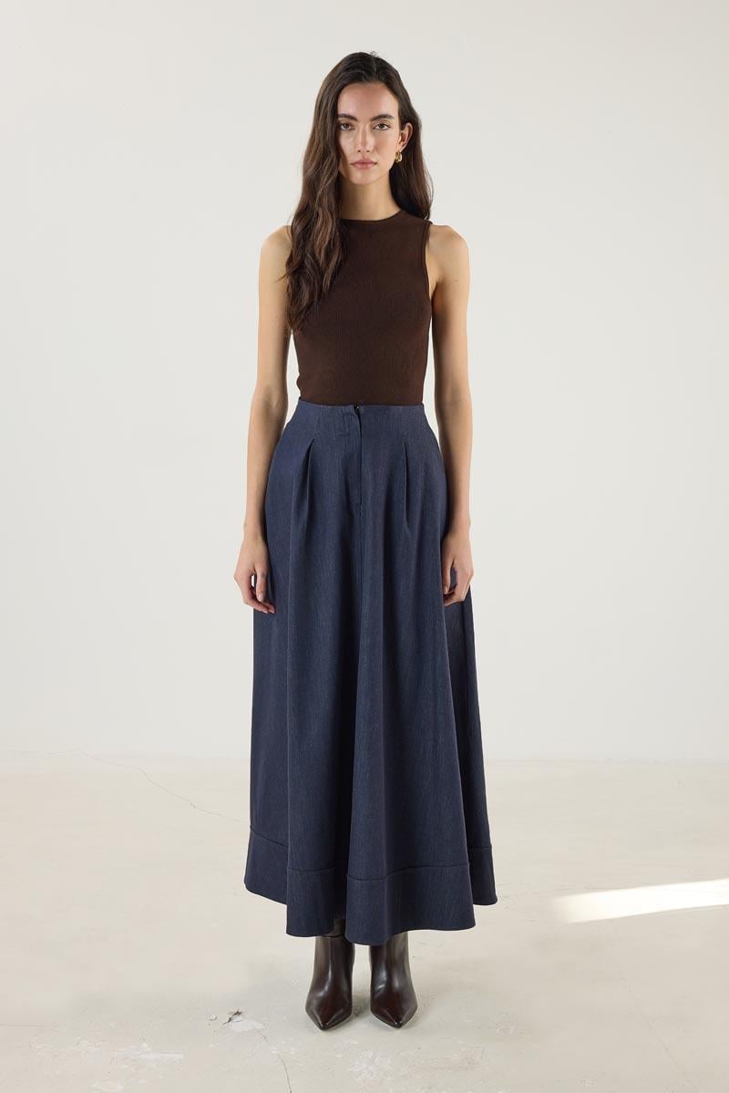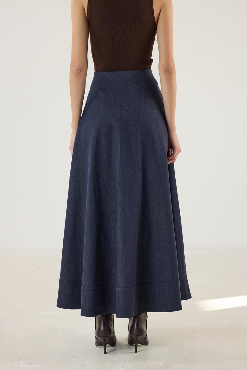 Kadın Etek Ucu Parçalı Kloş Kesim Kot Etek Lacivert (MTB25KETK001)
