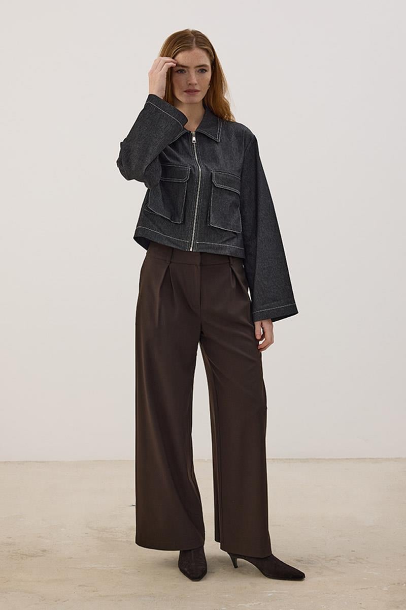 Fermuarlı Kot Ceket Beyaz Dikişli Fermuarlı Kot Ceket Camel Dikişli Fermuarlı Kot Ceket Bordo Fermuarlı Kot Ceket Acı kahve
