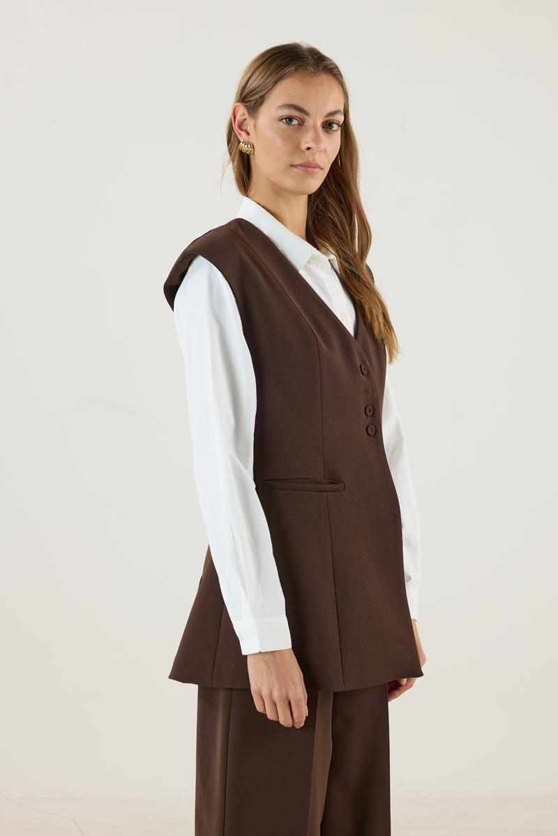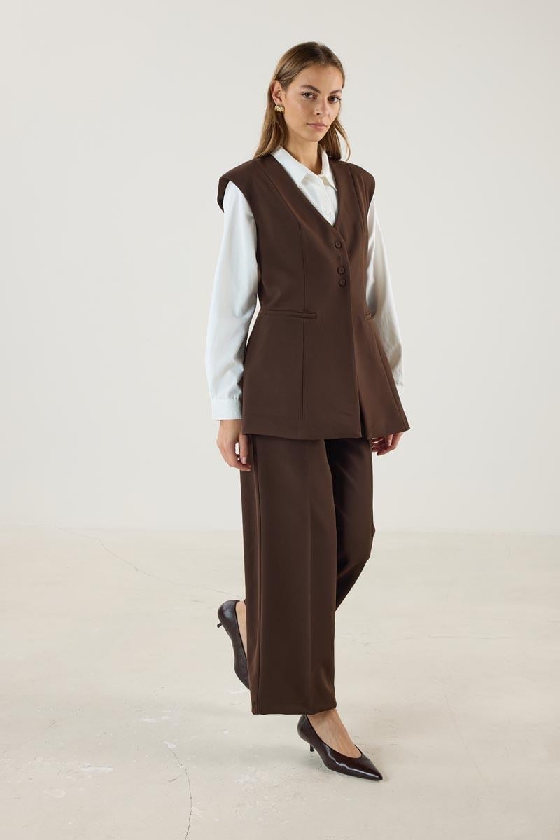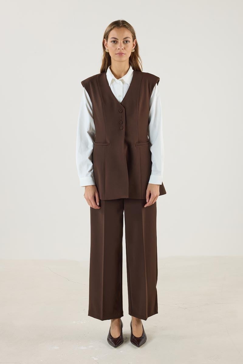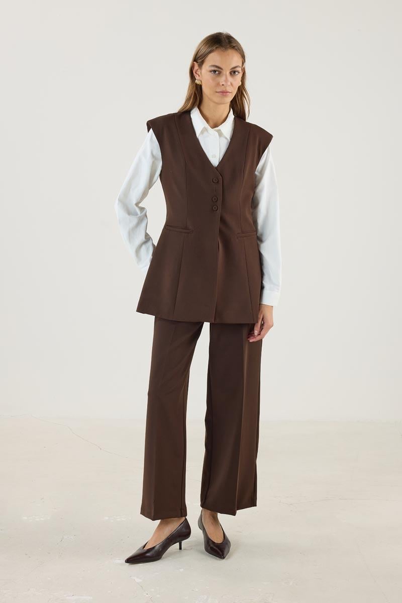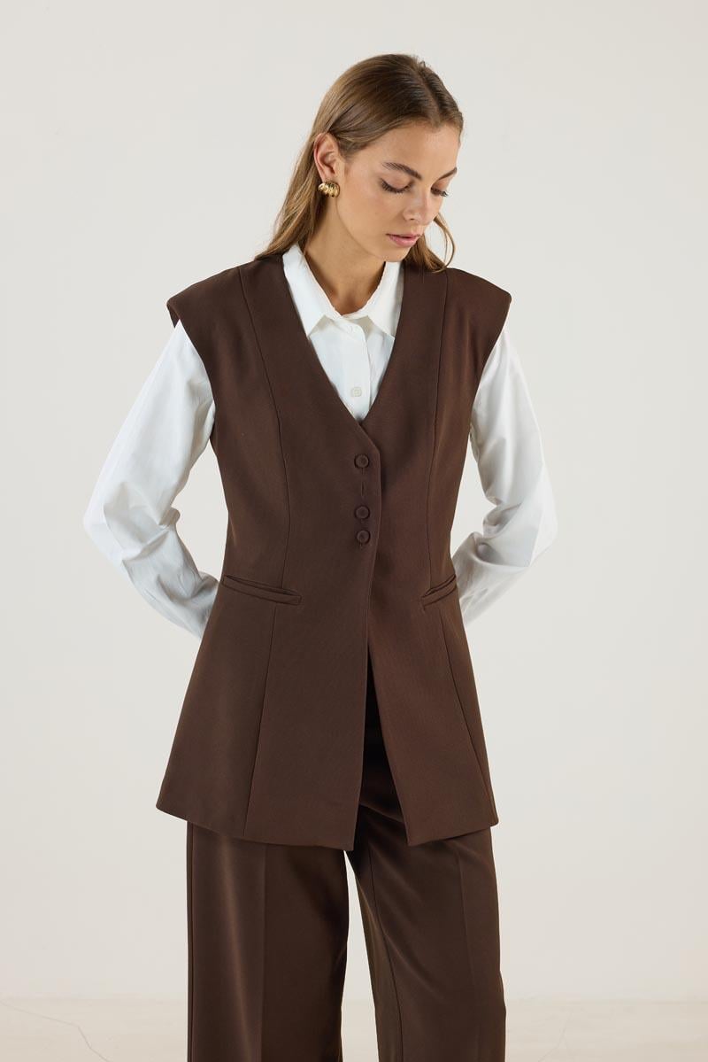 Kadın V Yaka Fit Kalıplı Kuplu Yelek Acı kahve (MTM25KYLK001)