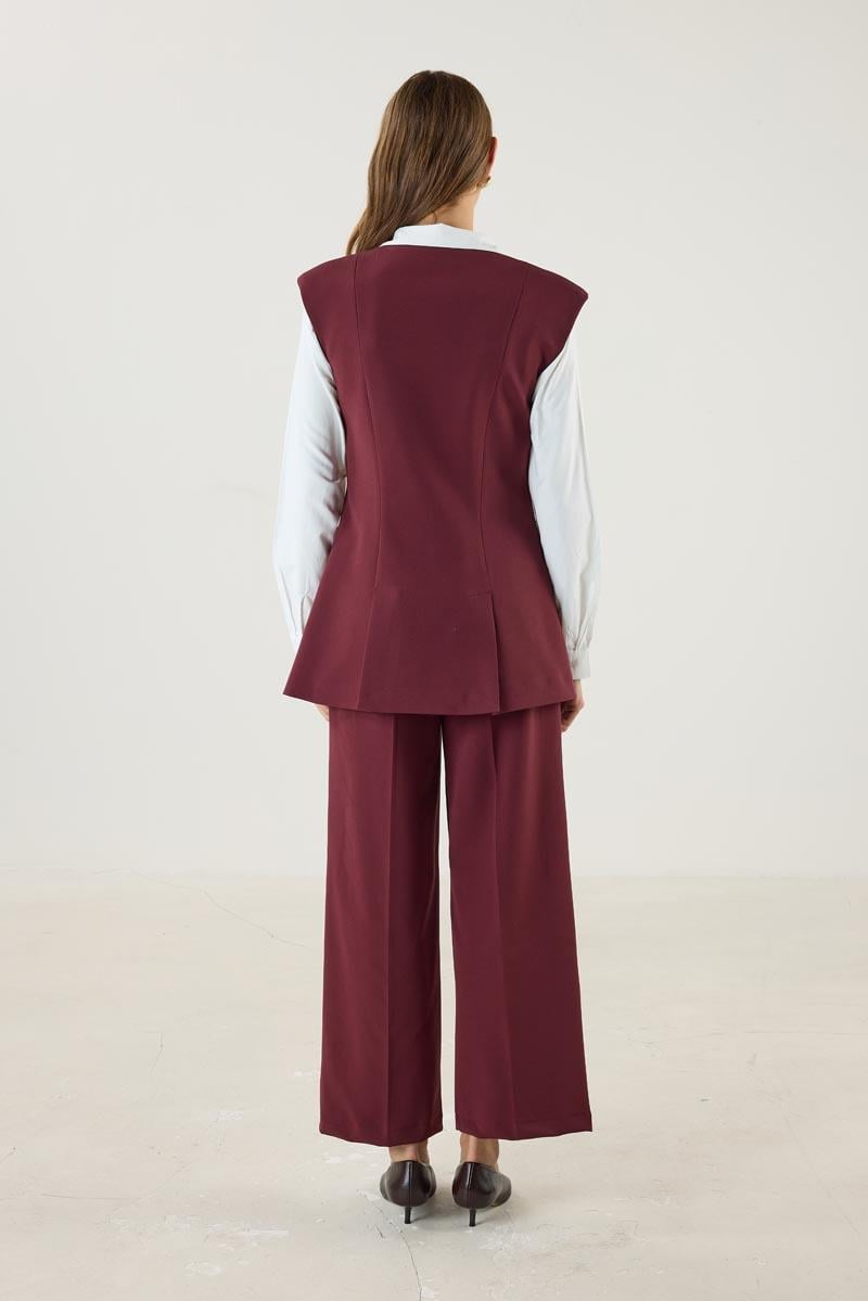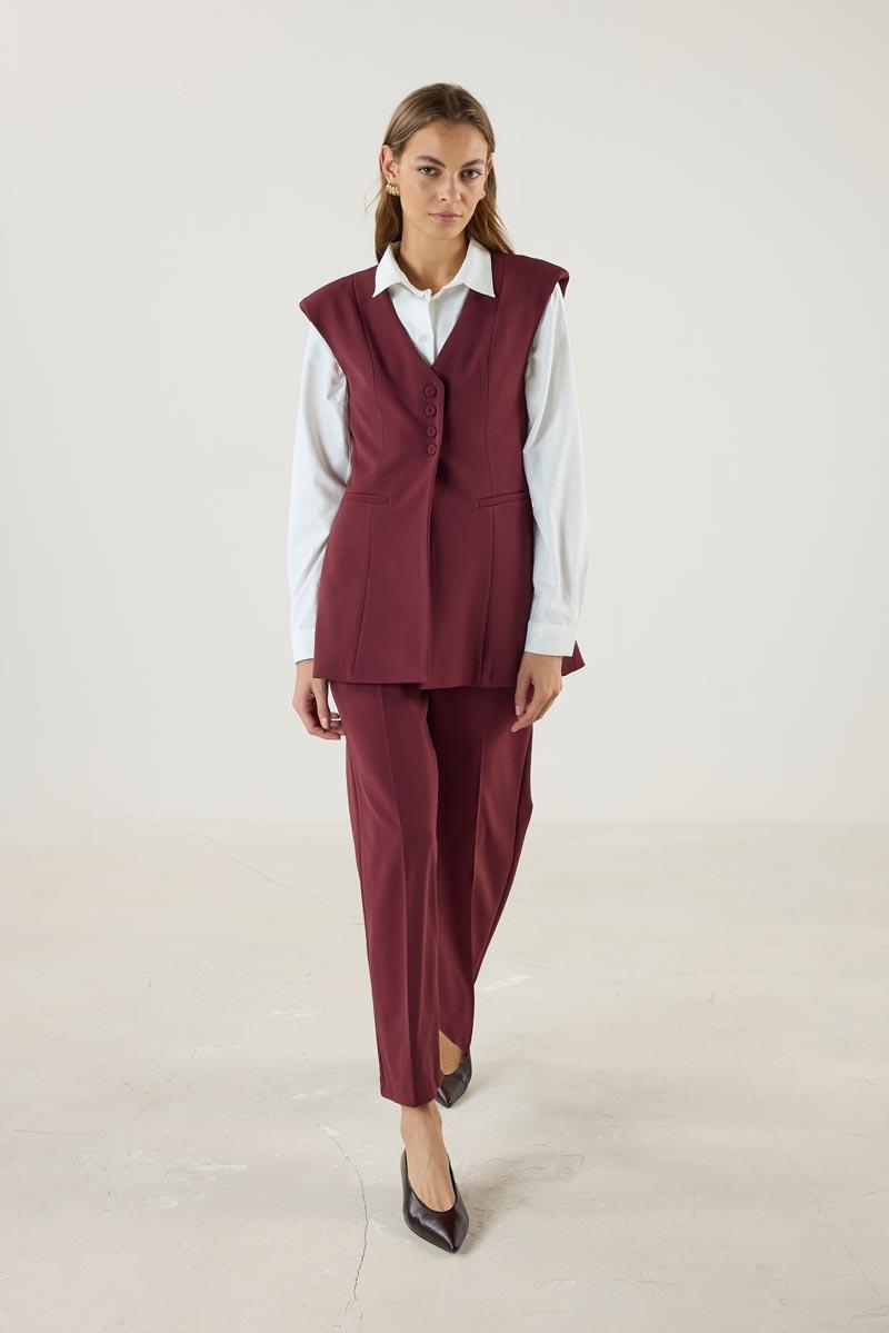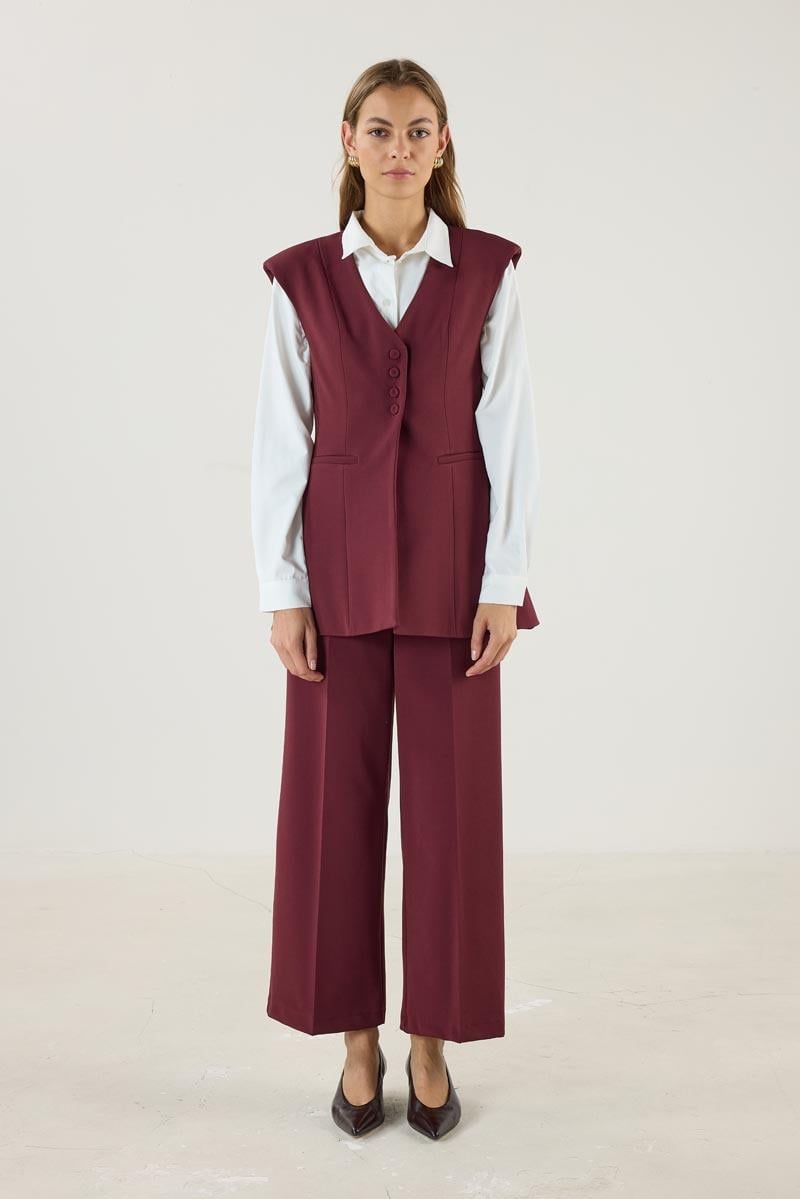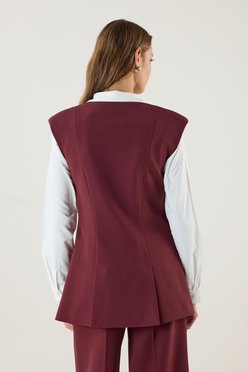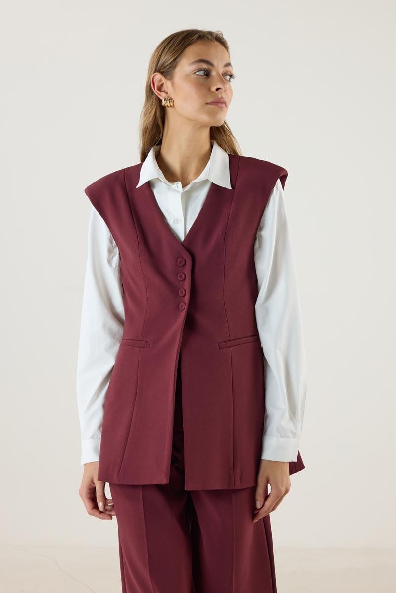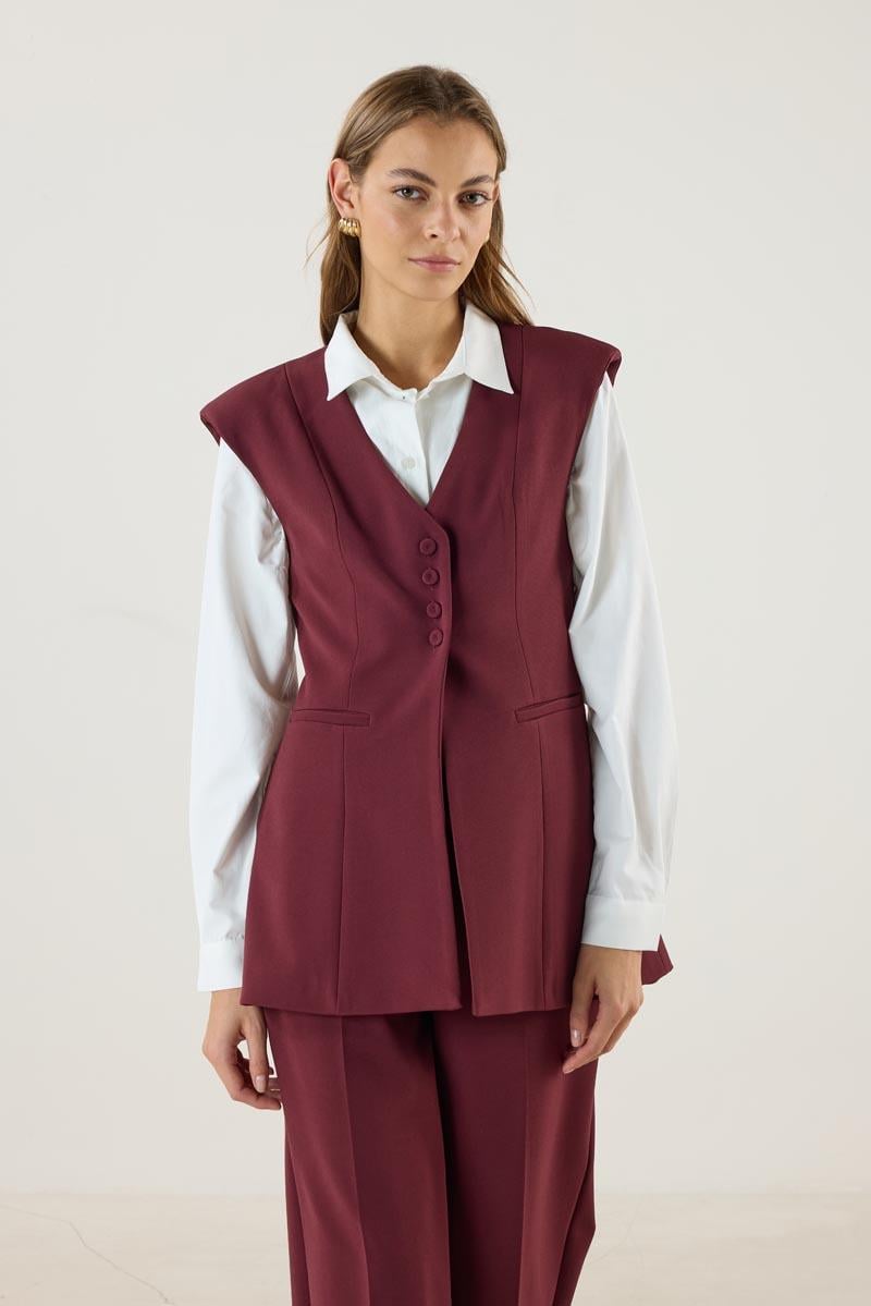 Kadın V Yaka Fit Kalıplı Kuplu Yelek Bordo (MTM25KYLK001)