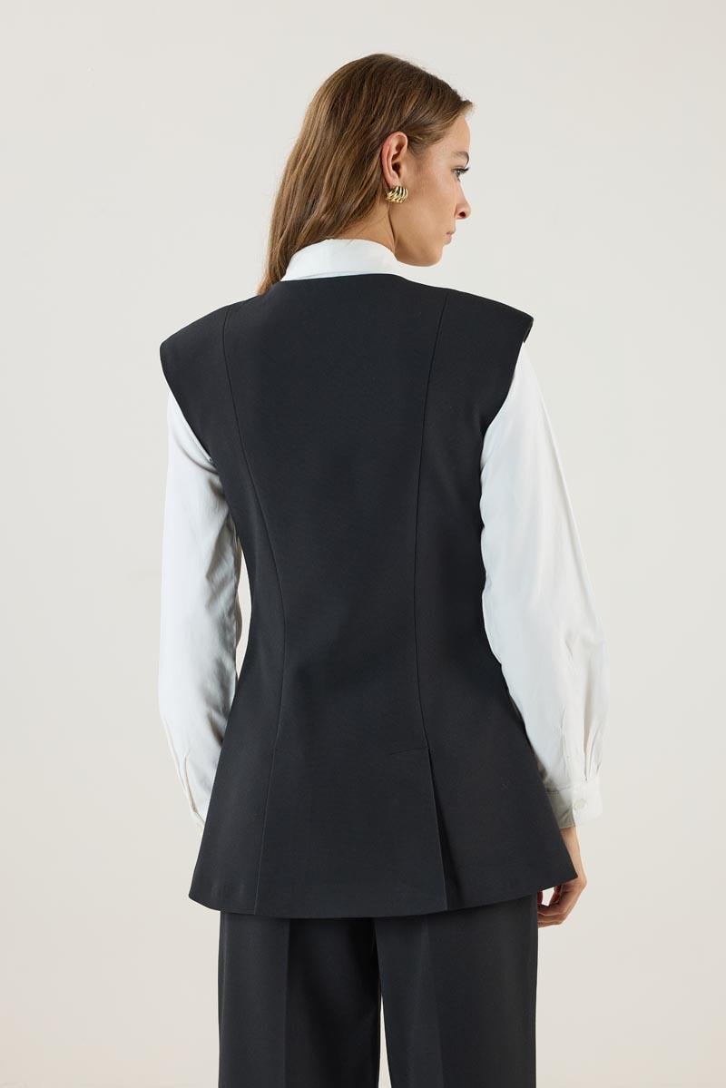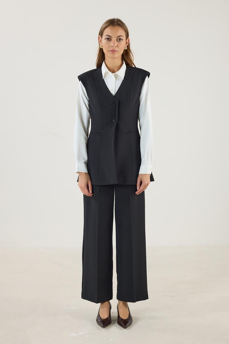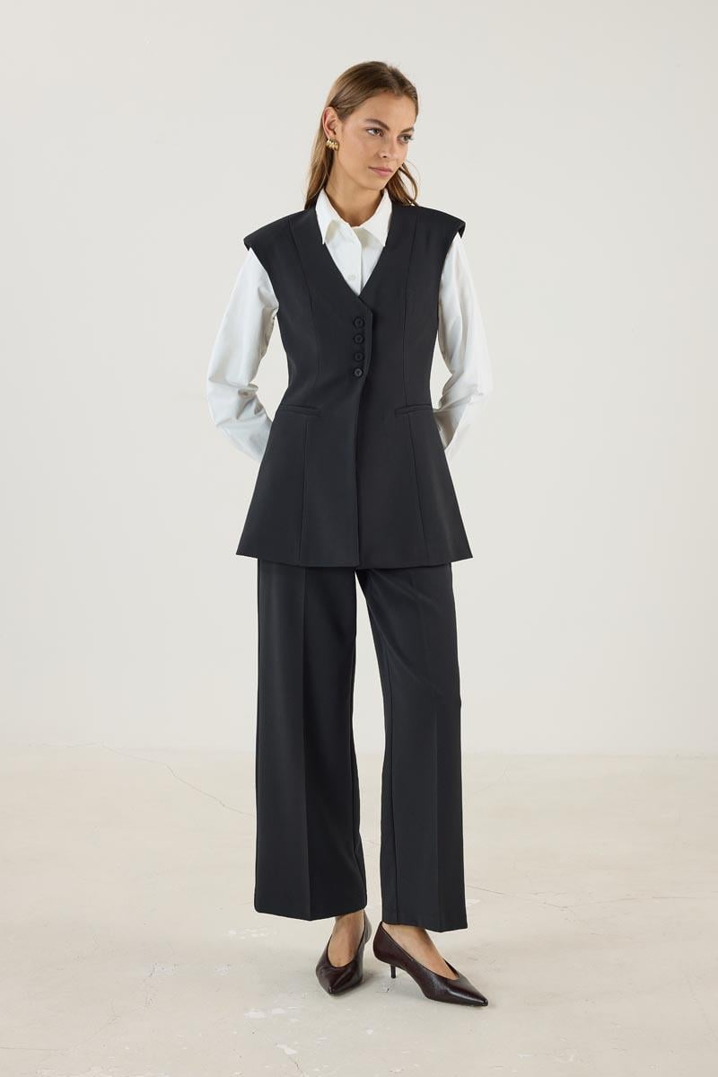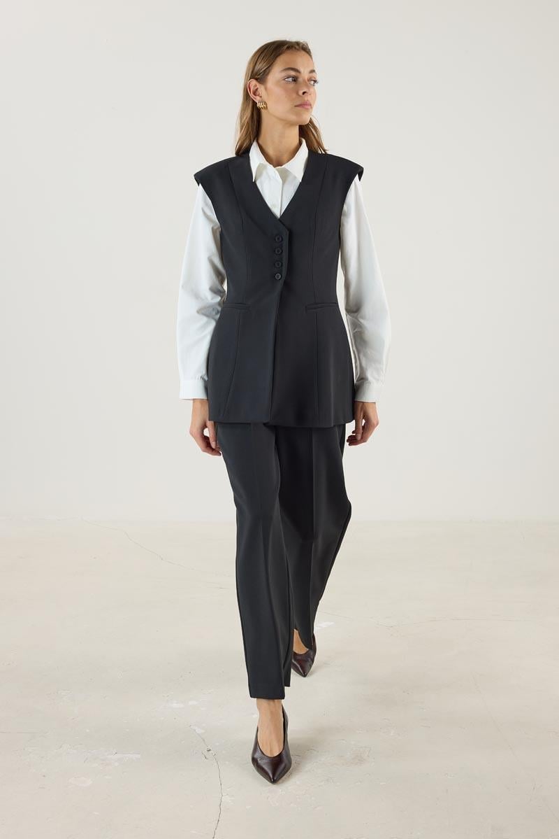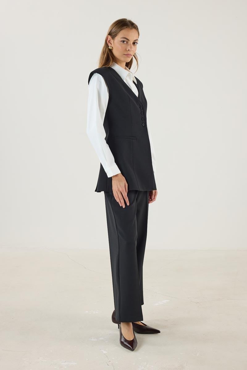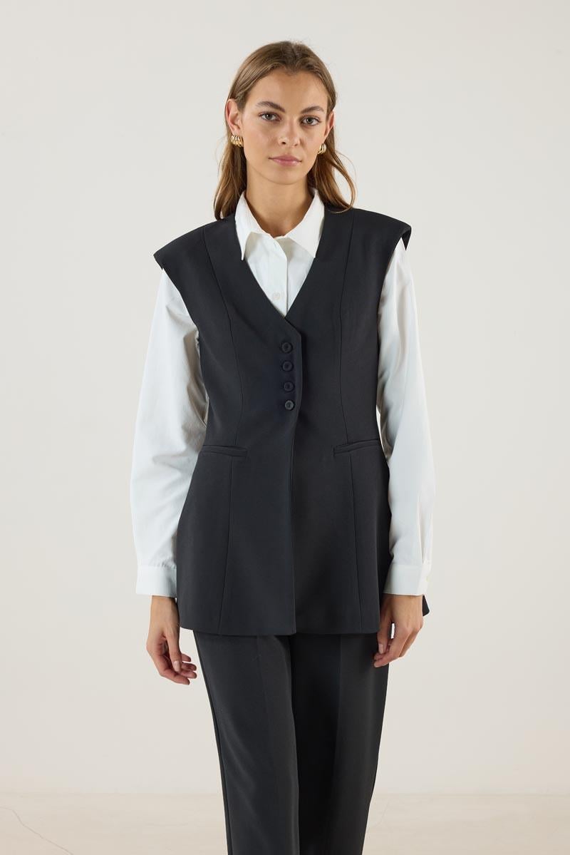 Kadın V Yaka Fit Kalıplı Kuplu Yelek Siyah (MTM25KYLK001)