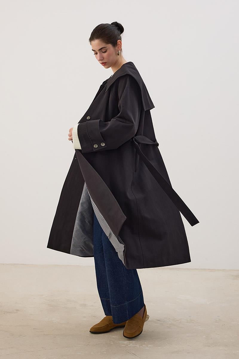 Geniş Yaka Uzun Trençkot Siyah (MTM251TRC002)
