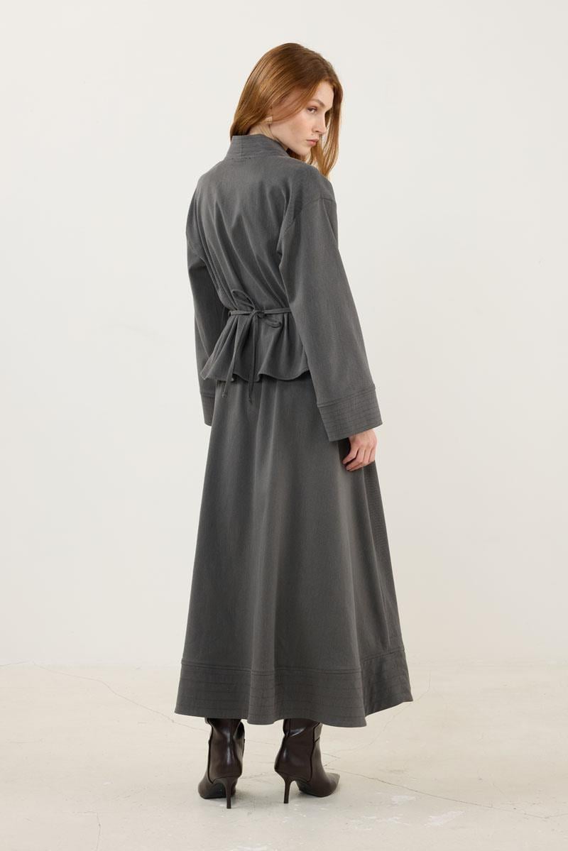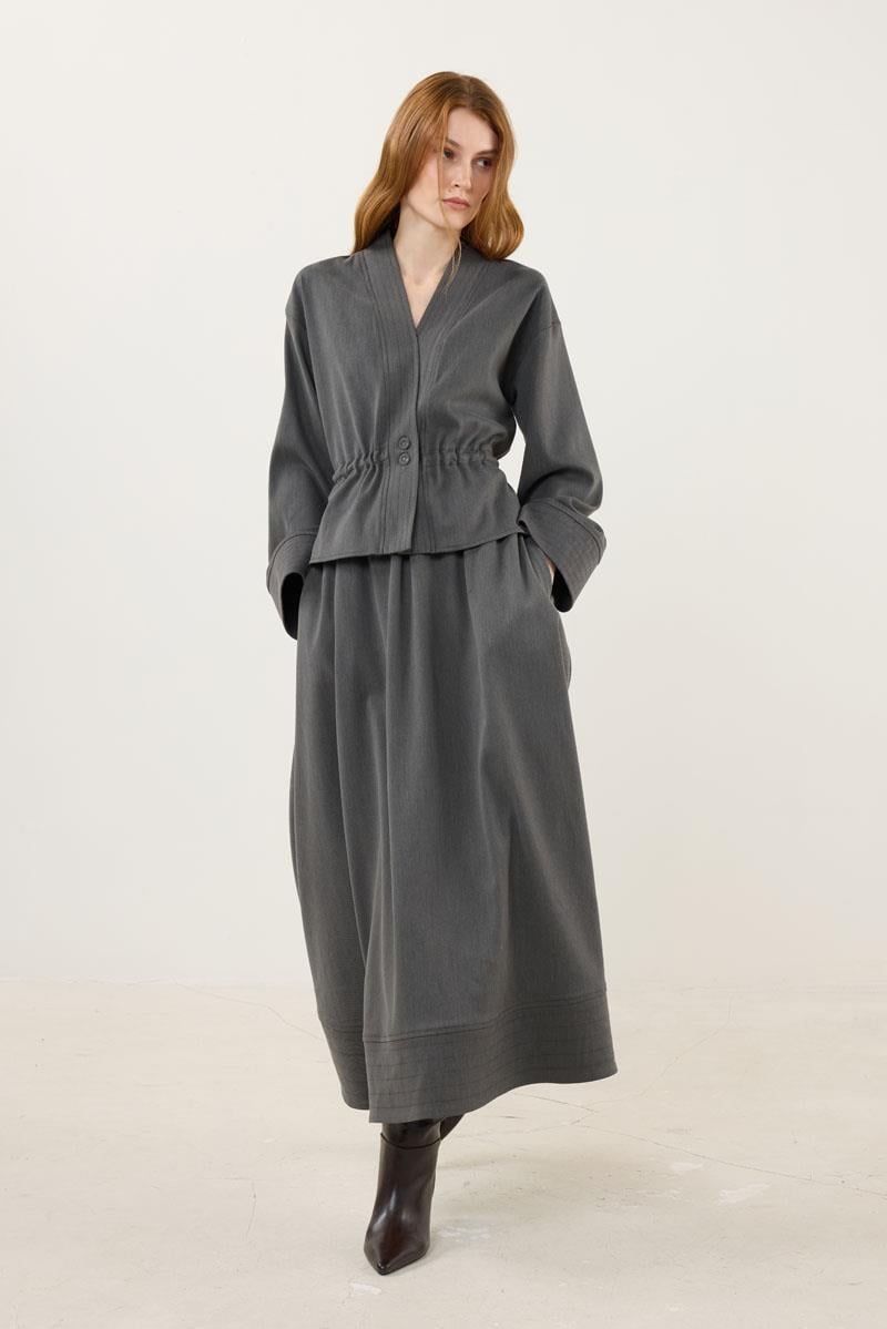 Gri Dikiş Detaylı Ceket Etek Takım (MTTAKIM069)