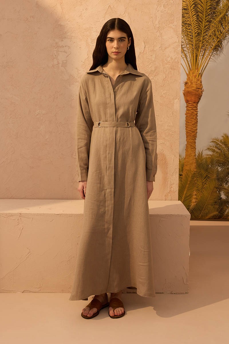 D tokalı %100 Keten Elbise Vizon (MTS25KELB003)