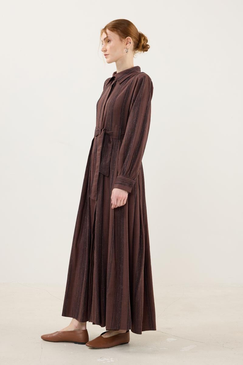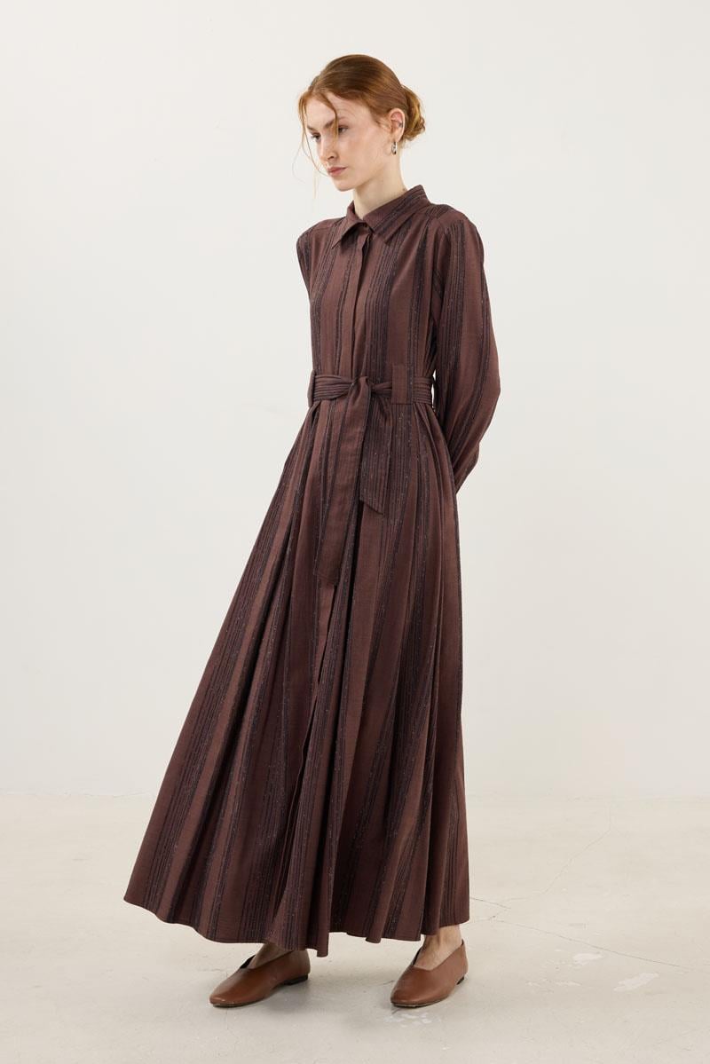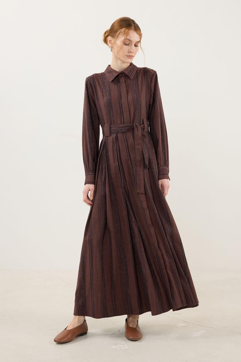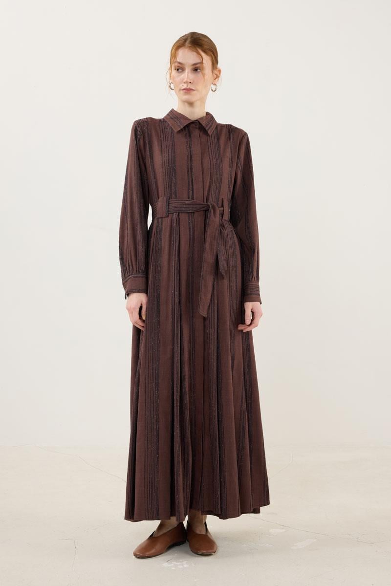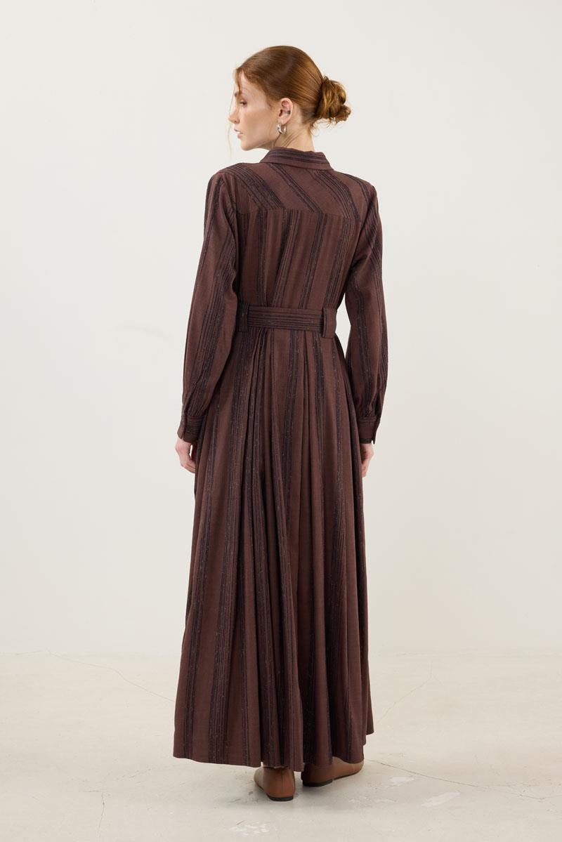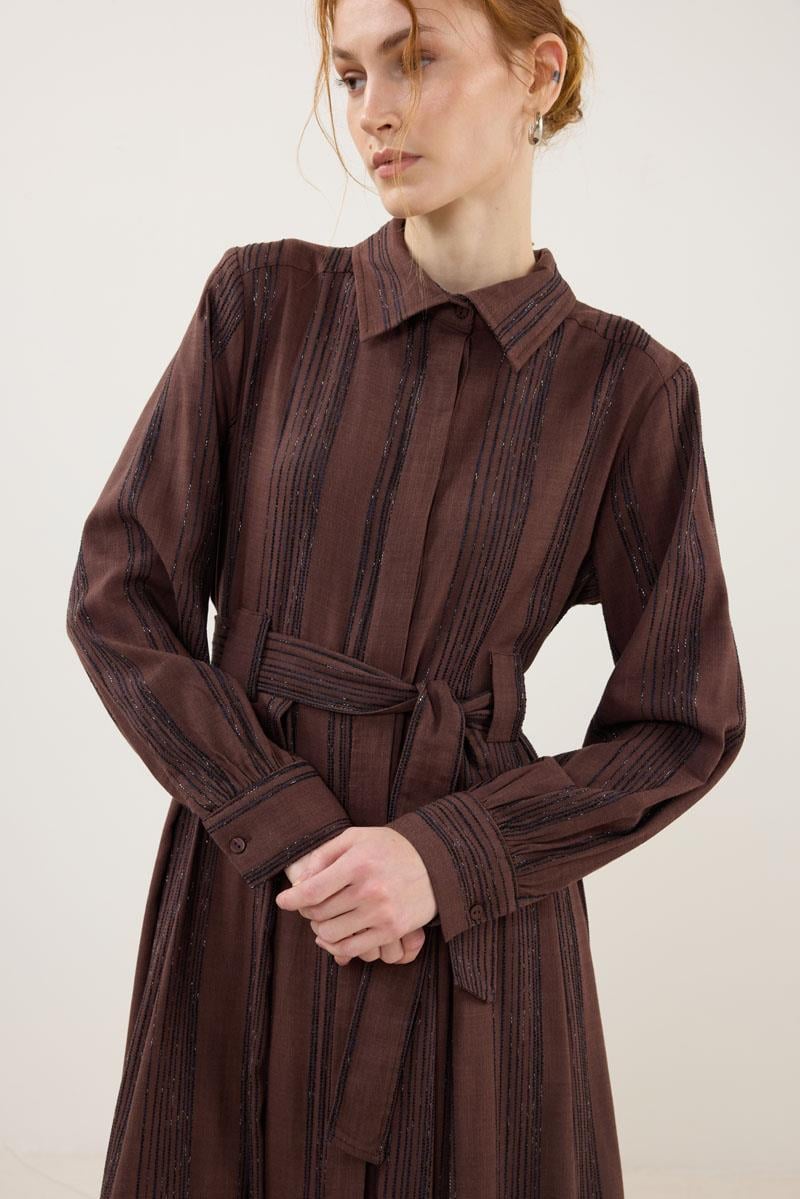 Köprü Detaylı Çizgili Elbise Acı kahve (MTS25KELB025)