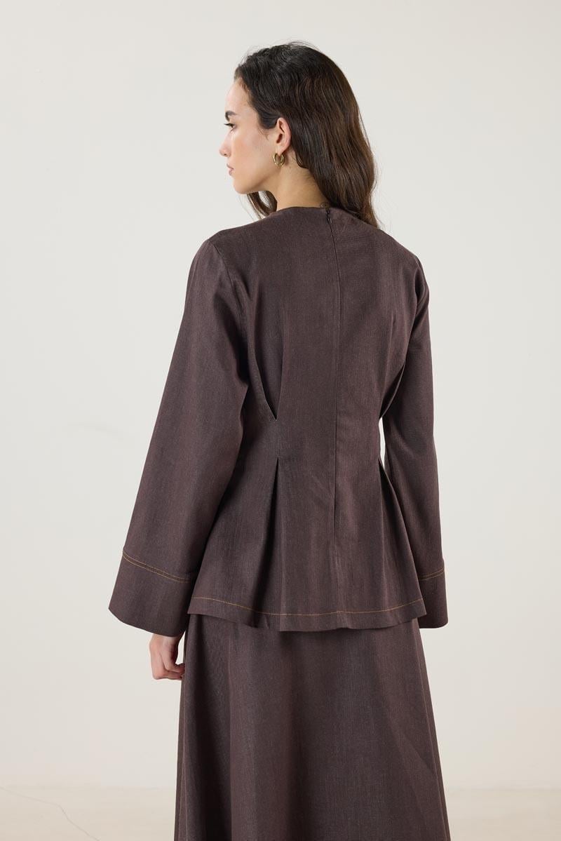 Kahverengi Kot Bluz, Etek Takım (MTTAKIM049)