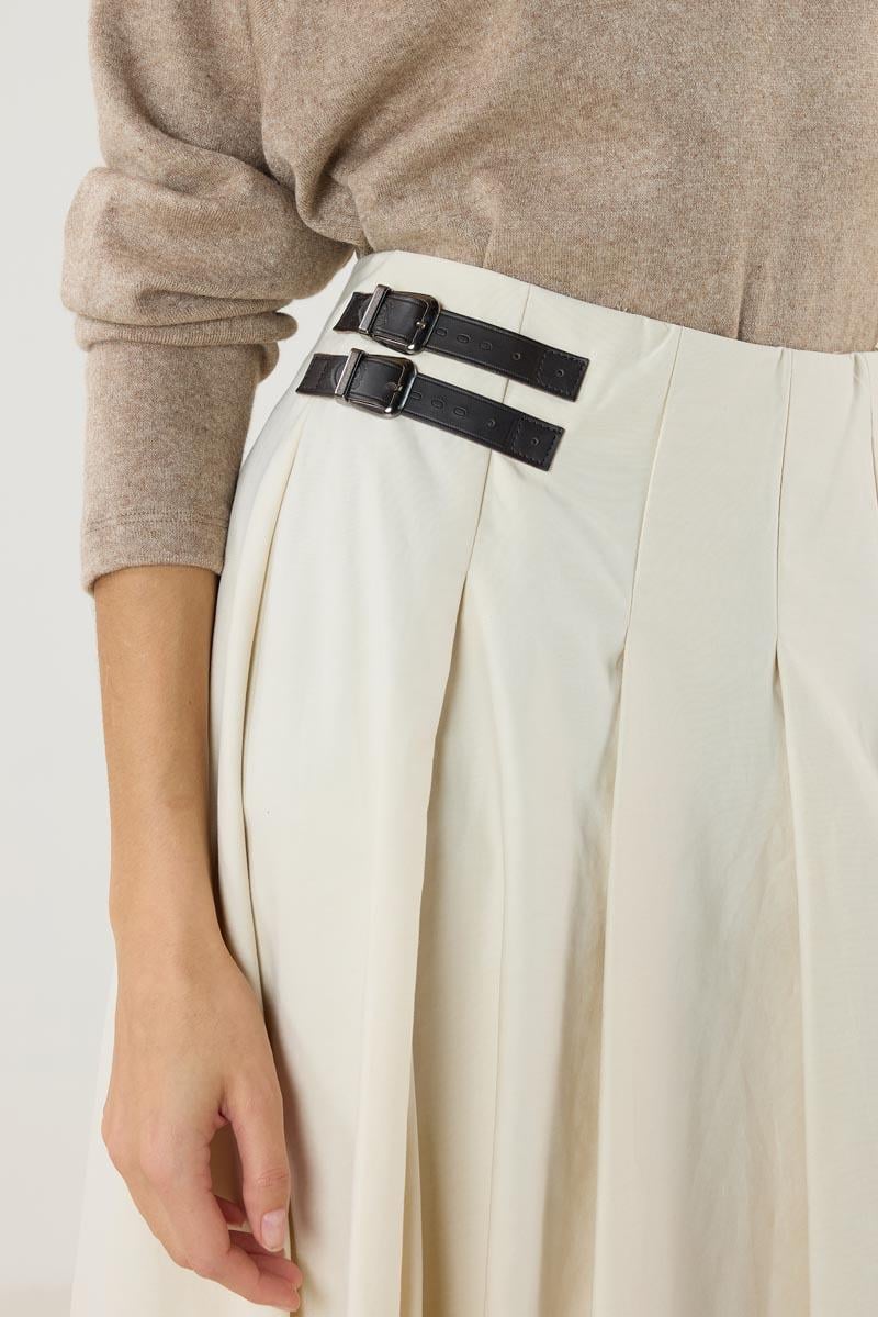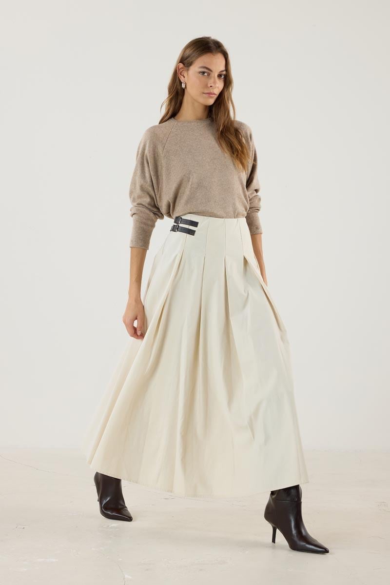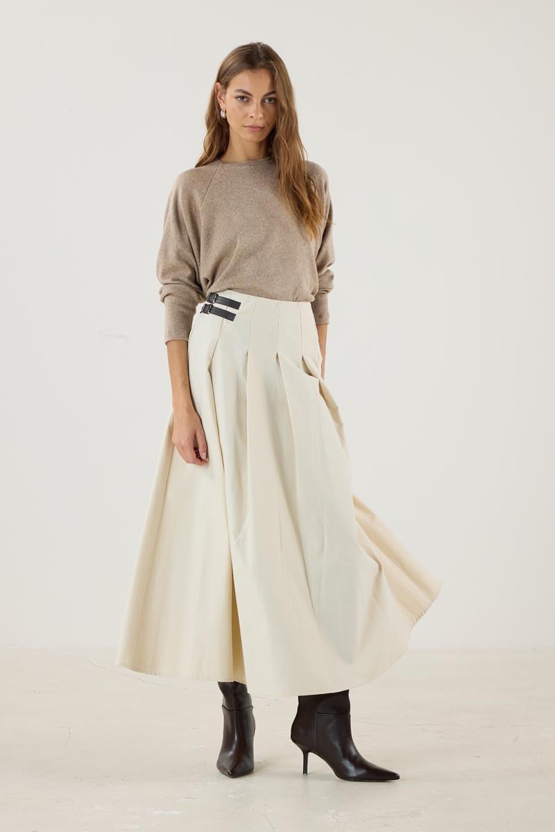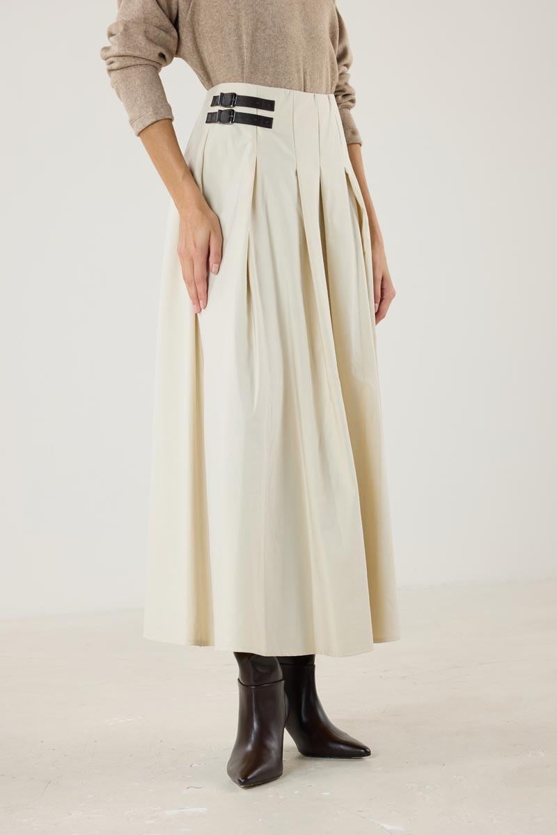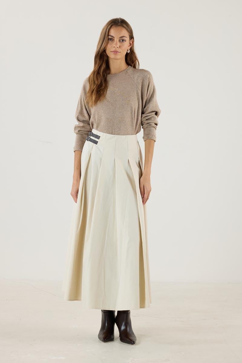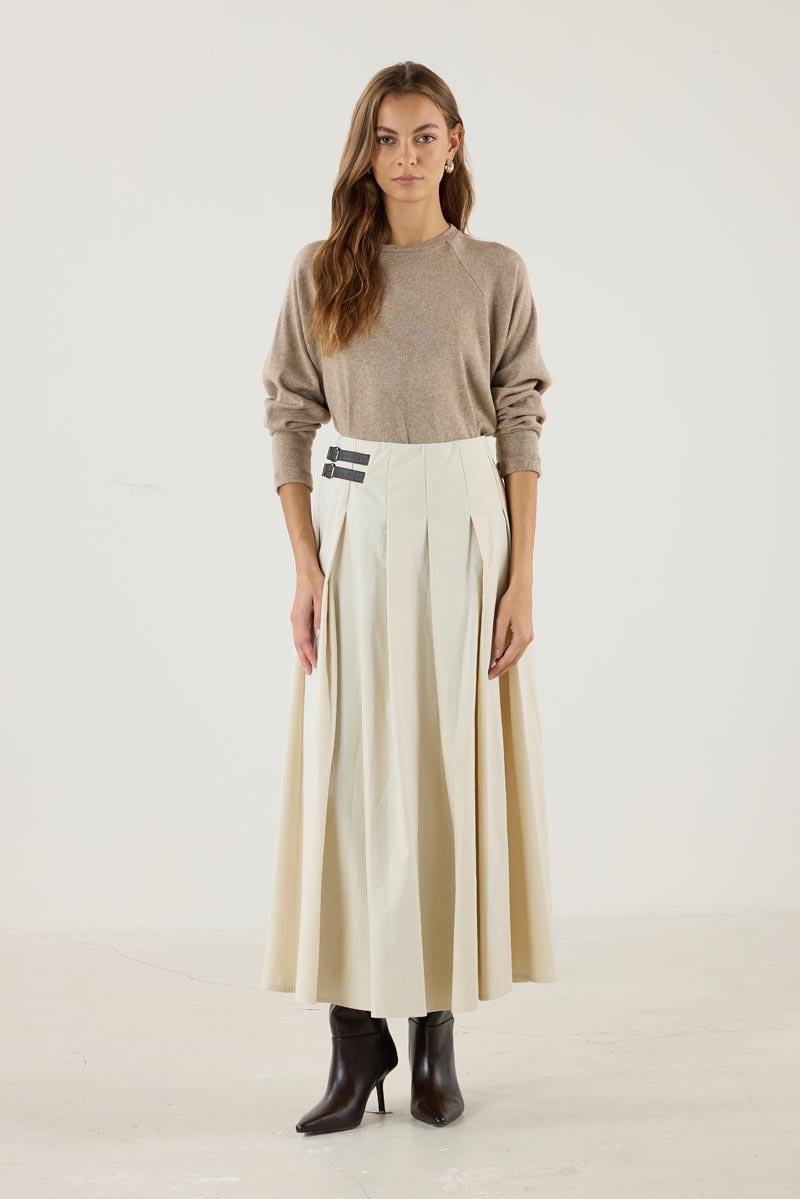 Kemer Aksesuarlı Pileli Etek Krem (MTS25KETK013)