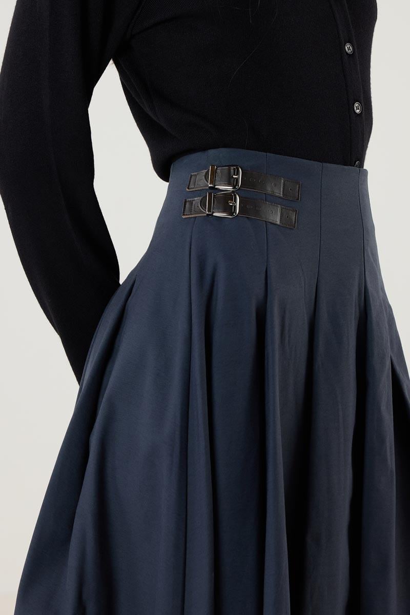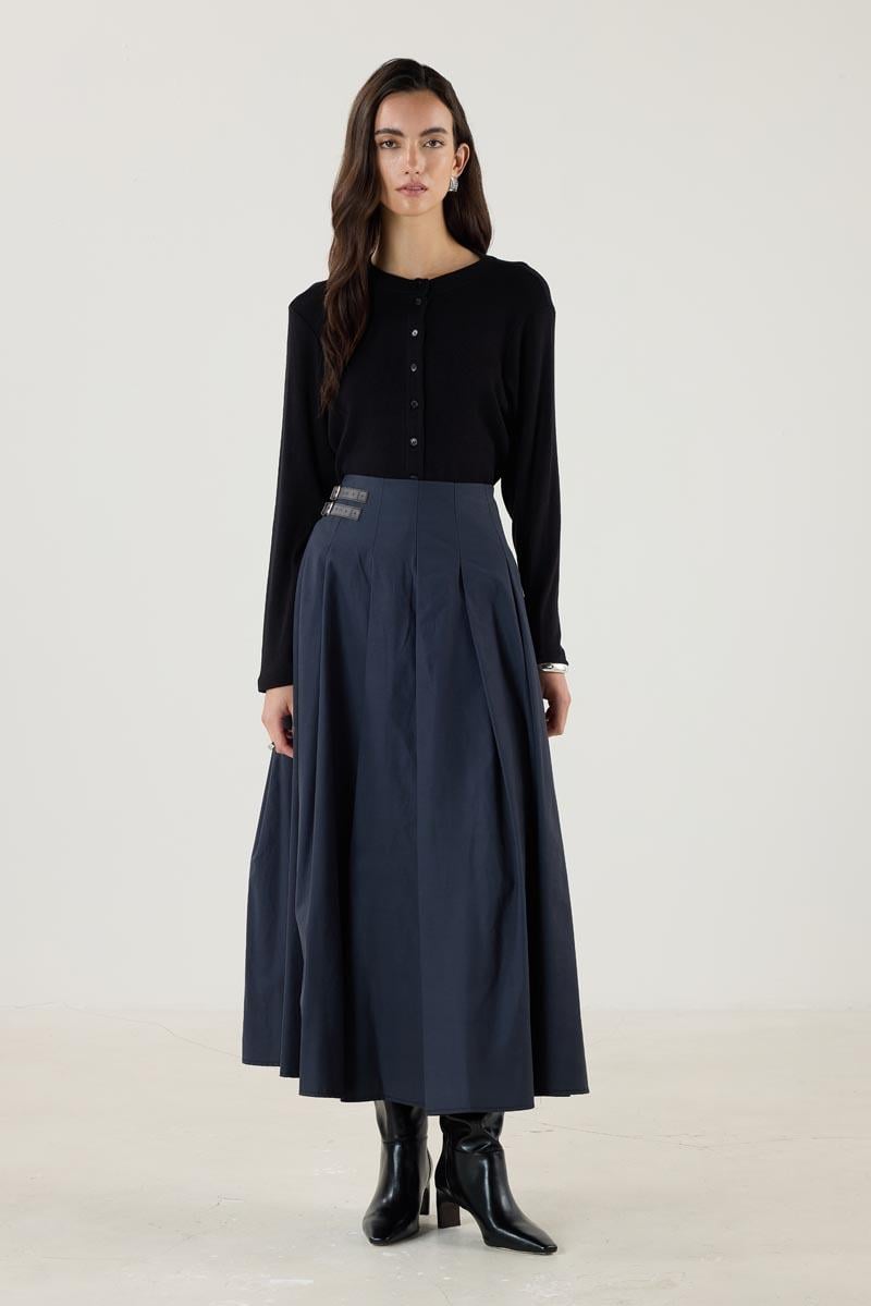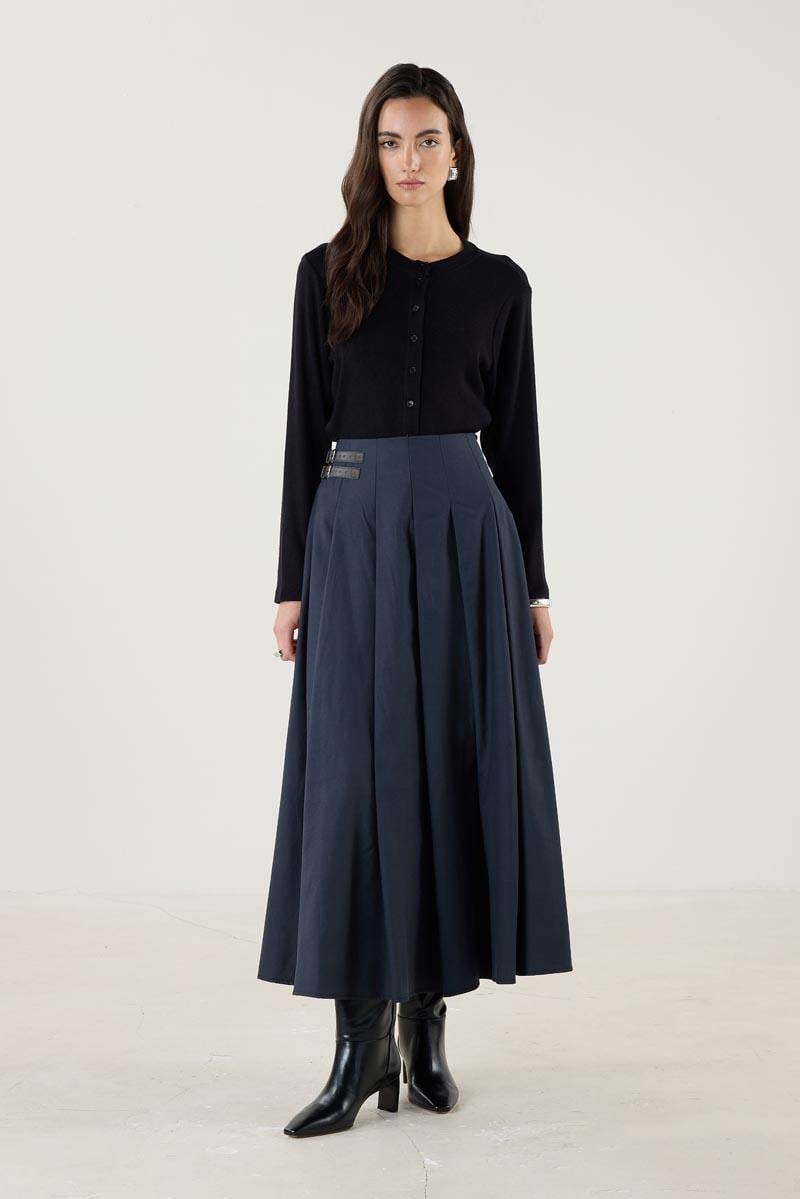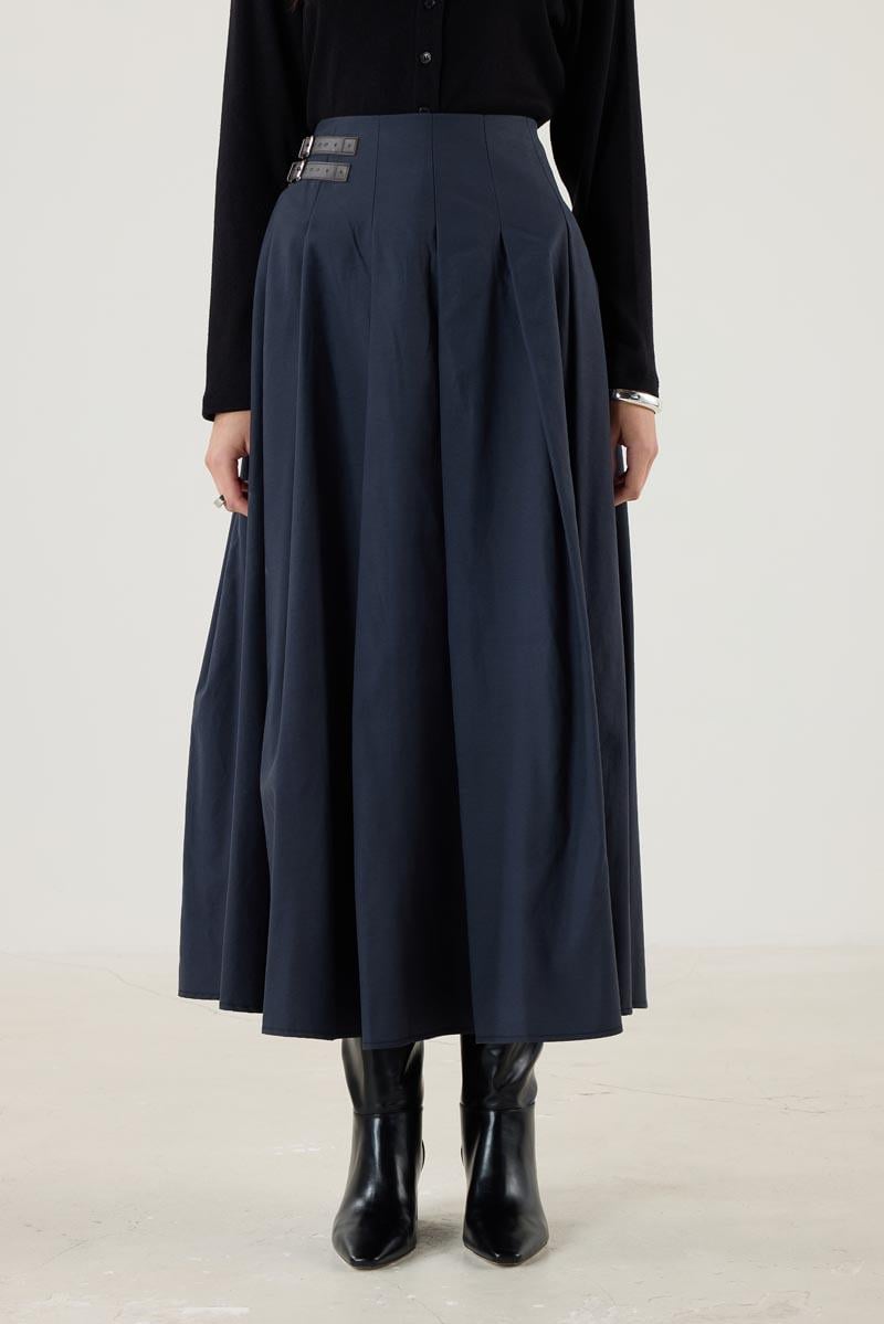 Kemer Aksesuarlı Pileli Etek Lacivert (MTS25KETK013)