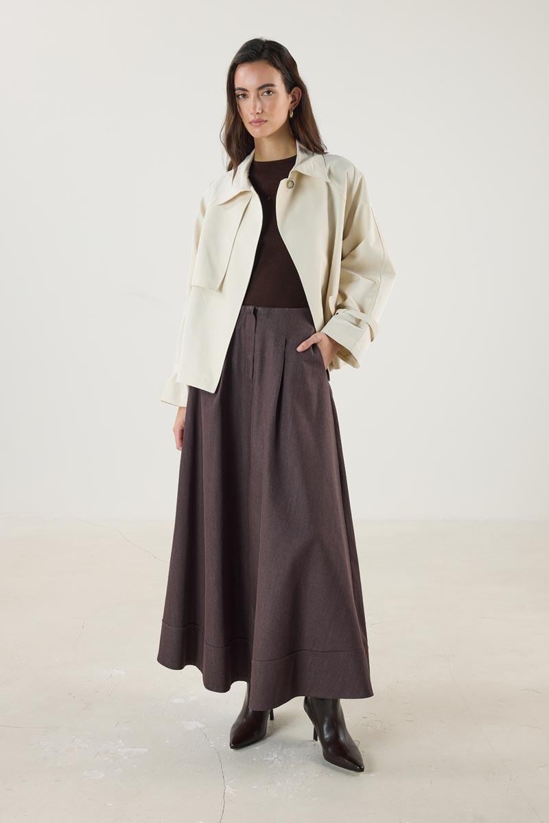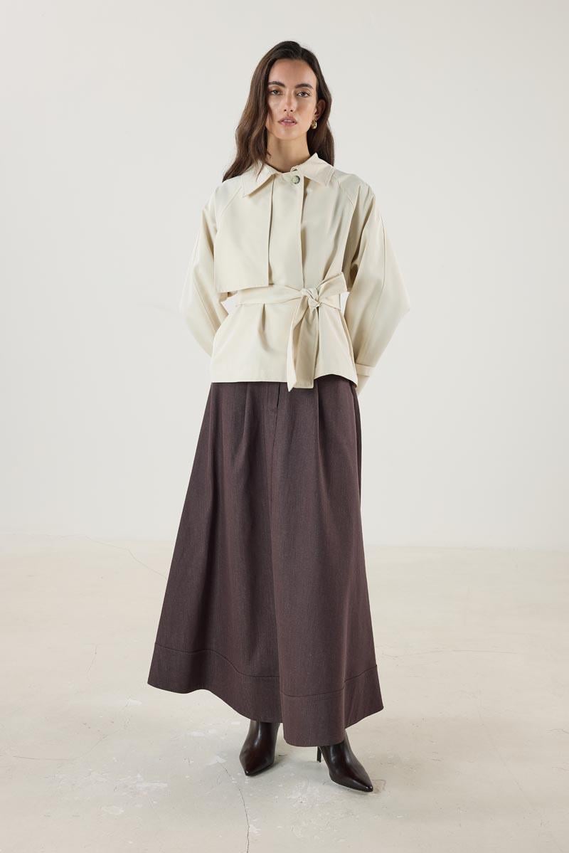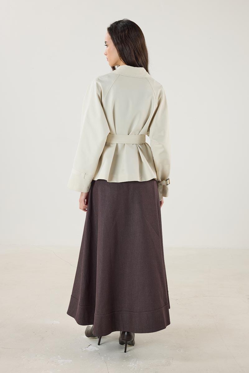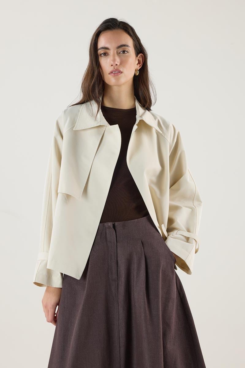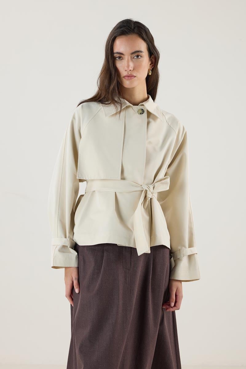 Kadın Gömlek Yaka Kemerli Cepli Kısa Trençkot (MTM25KTRC002)