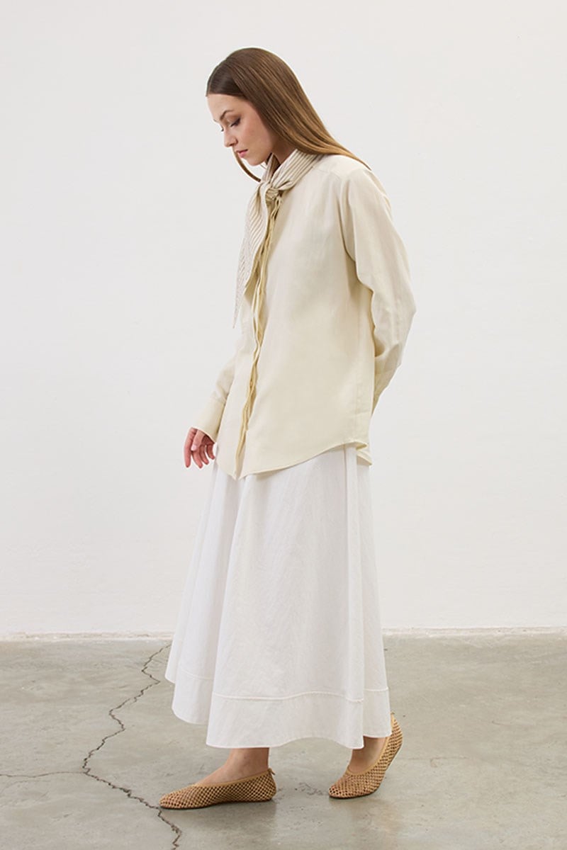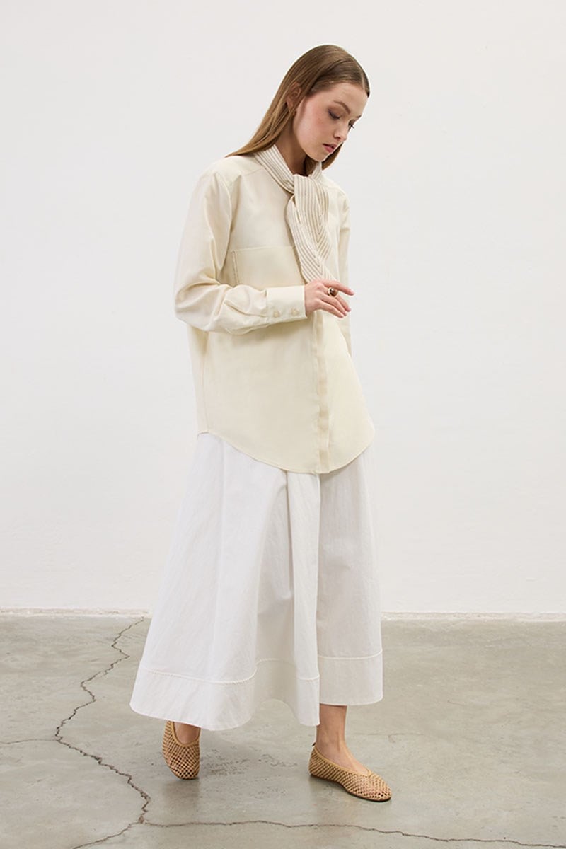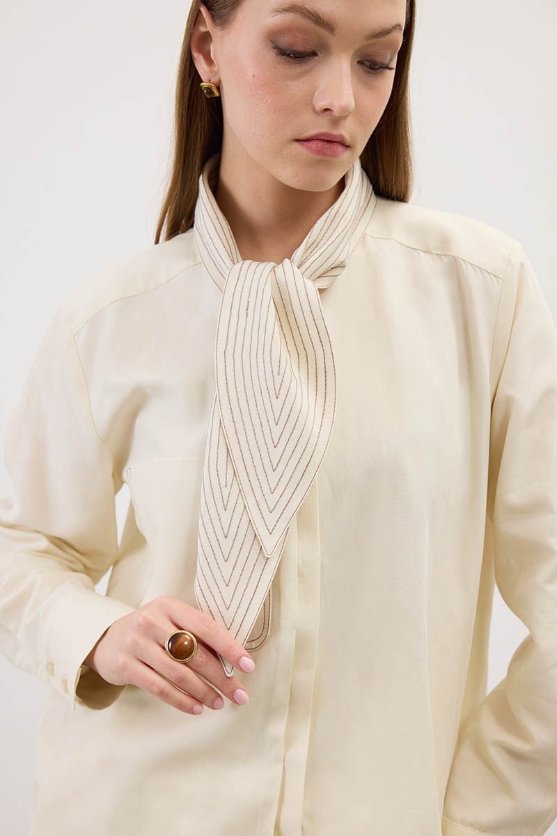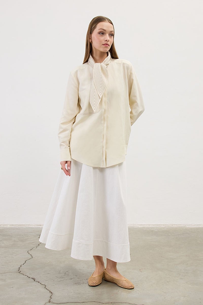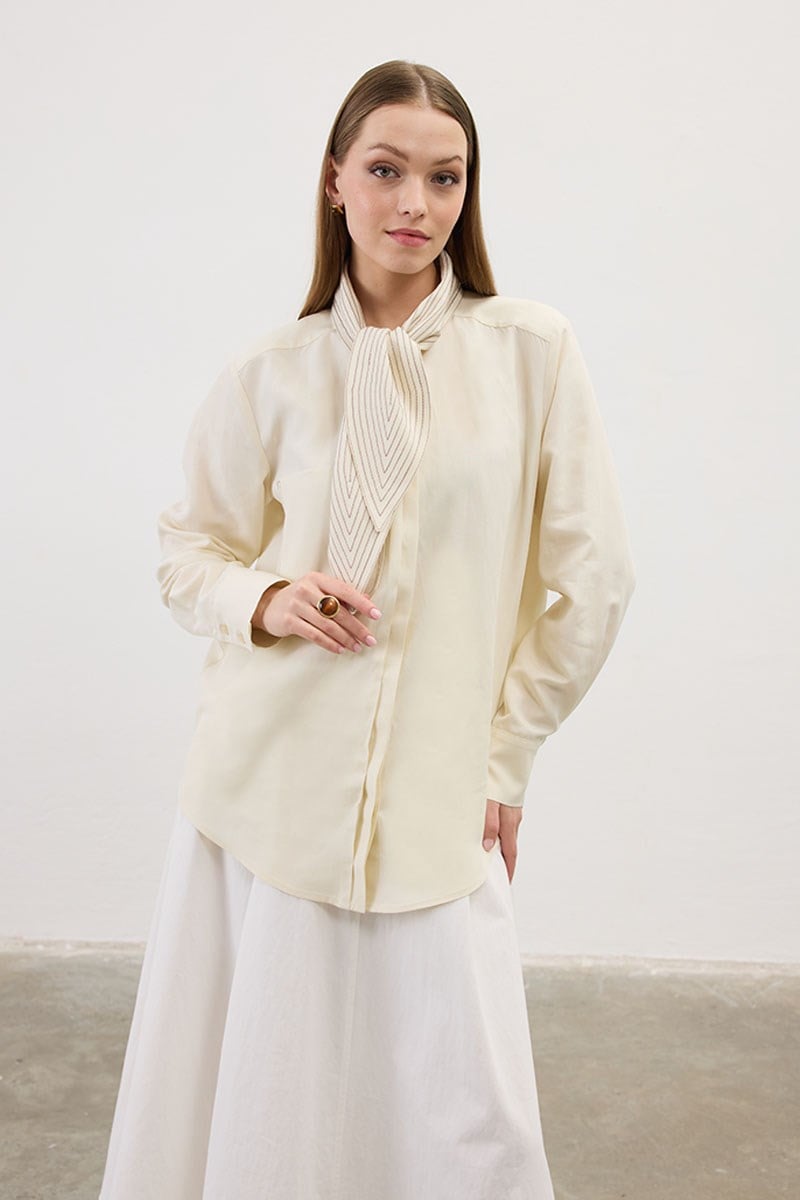 Kendinden Fularlı Gömlek Krem (MTS261GMK009)
