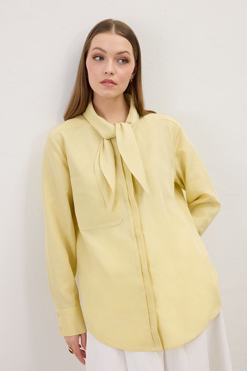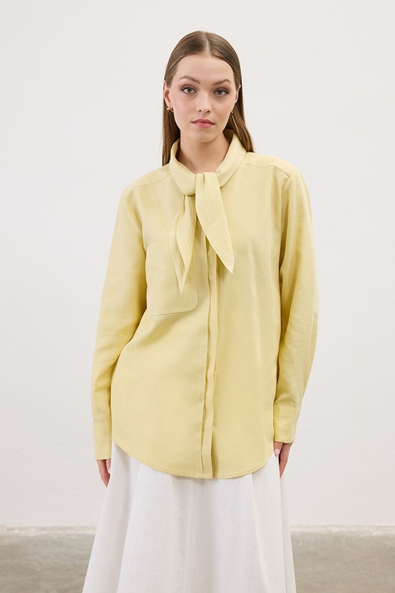 Kendinden Fularlı Gömlek Soft Sarı (MTS261GMK009)