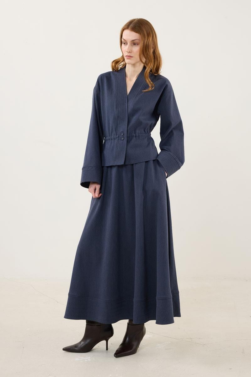 Lacivert Dikiş Detaylı Ceket Etek Takım (MTTAKIM067)