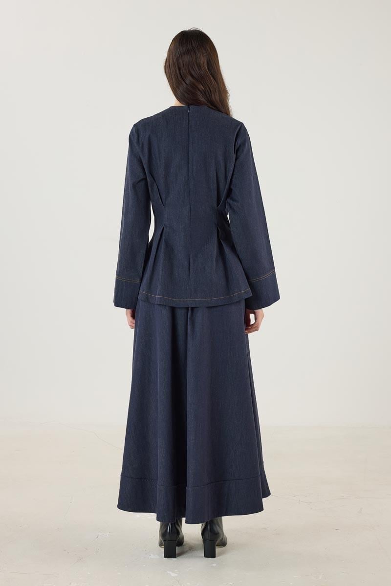 Lacivert Kot Bluz, Etek Takım (MTTAKIM048)