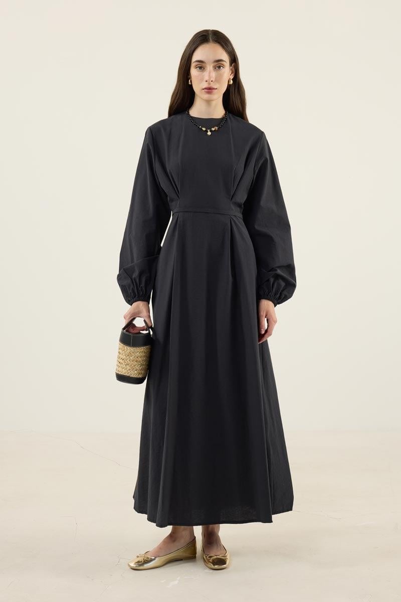 Pile Detaylı Elbise Siyah, doğal tonları ve zarif tasarımıyla yaz mevsimine sofistike bir hava katıyor. %88 pamuk ve %12 polyester karışımlı kumaşı, hafif ve nefes alabilen yapısıyla gün boyu konfor sunarken, bisiklet yaka formu ve uzun boyu klasik bir şıklık yaratır. Pile detayları, elbiseye hacim ve hareket kazandırırken, arkadan fermuarı pratik bir kullanım sağlar.