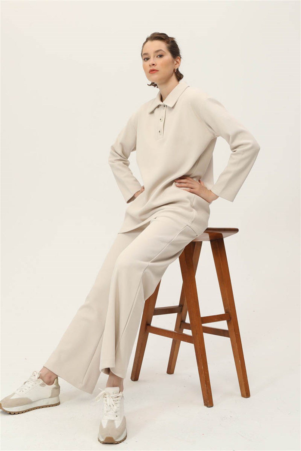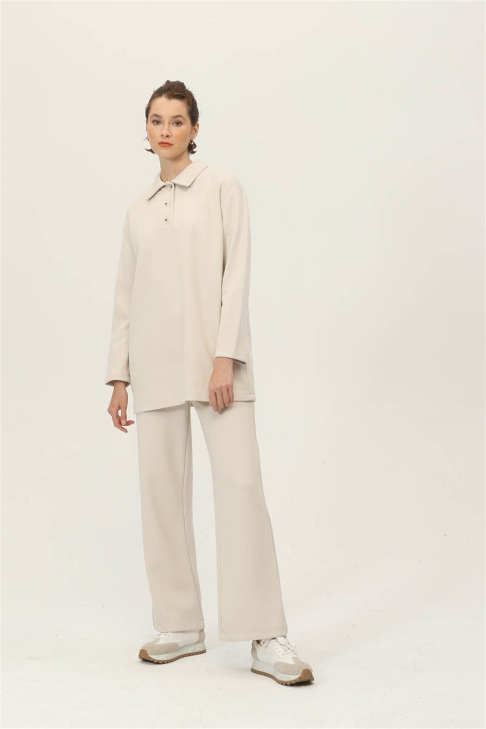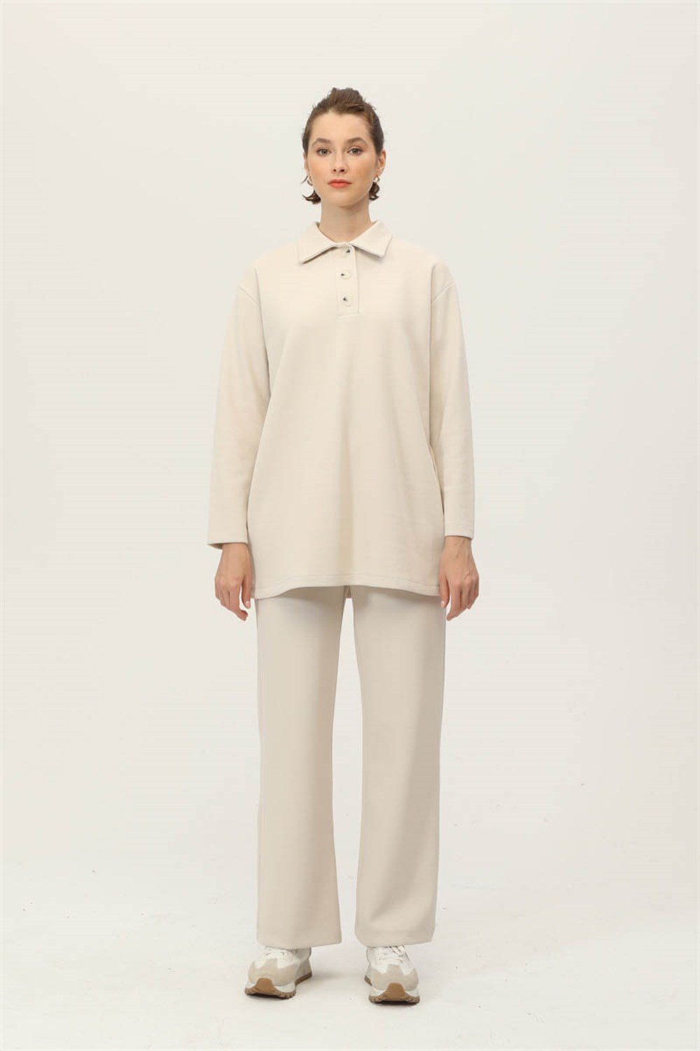 Takım Görünümü: Düz Kesim Sweatshirt Pantolon ile takım görünümü elde edilebilir.