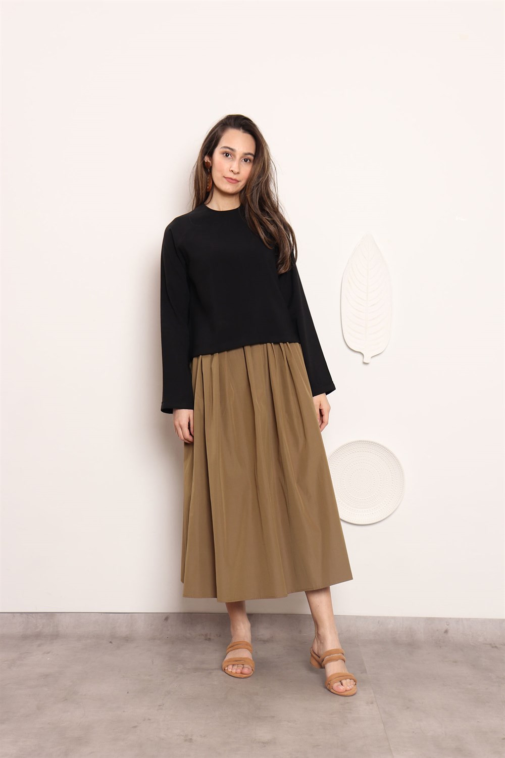 Mankenin boyu:1.72 cm'dir. Mankenin üzerindeki ürün S bedendir.
