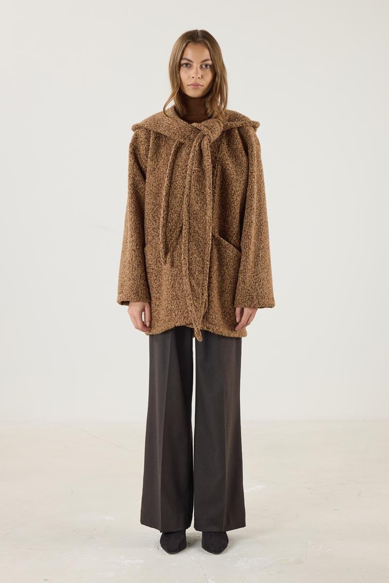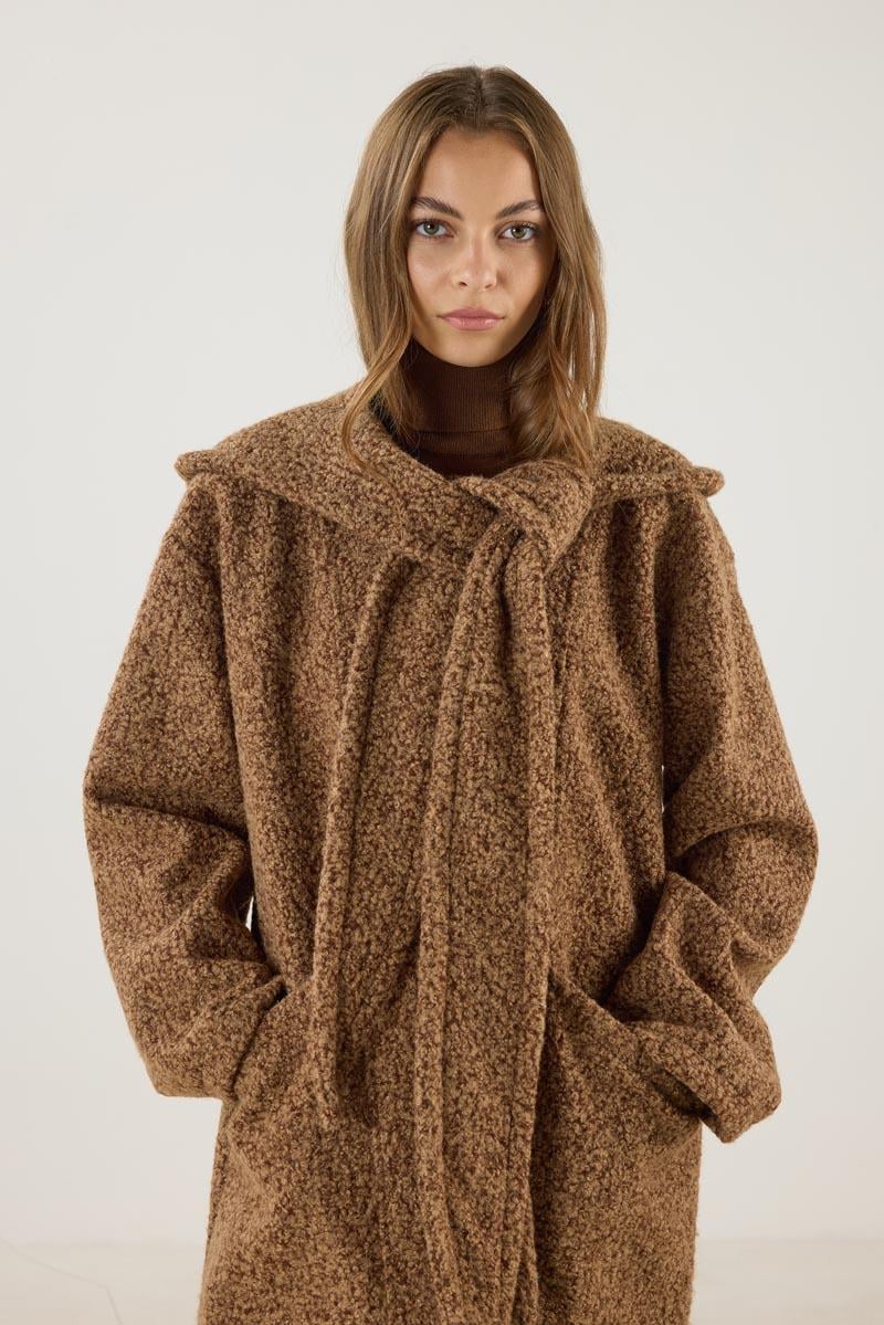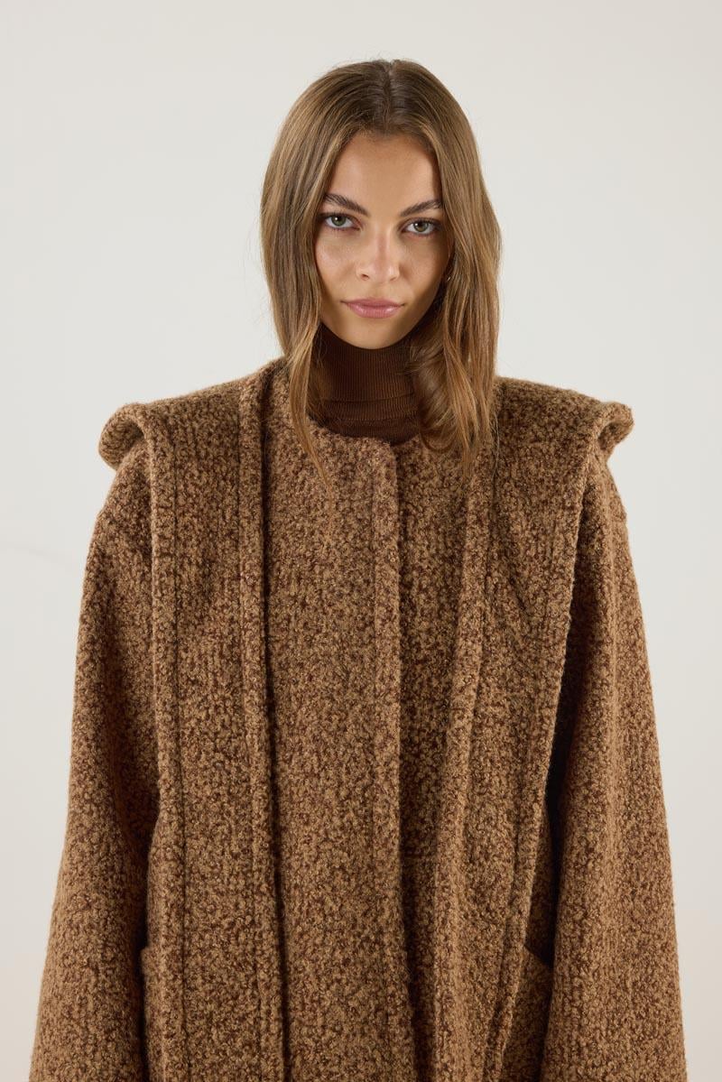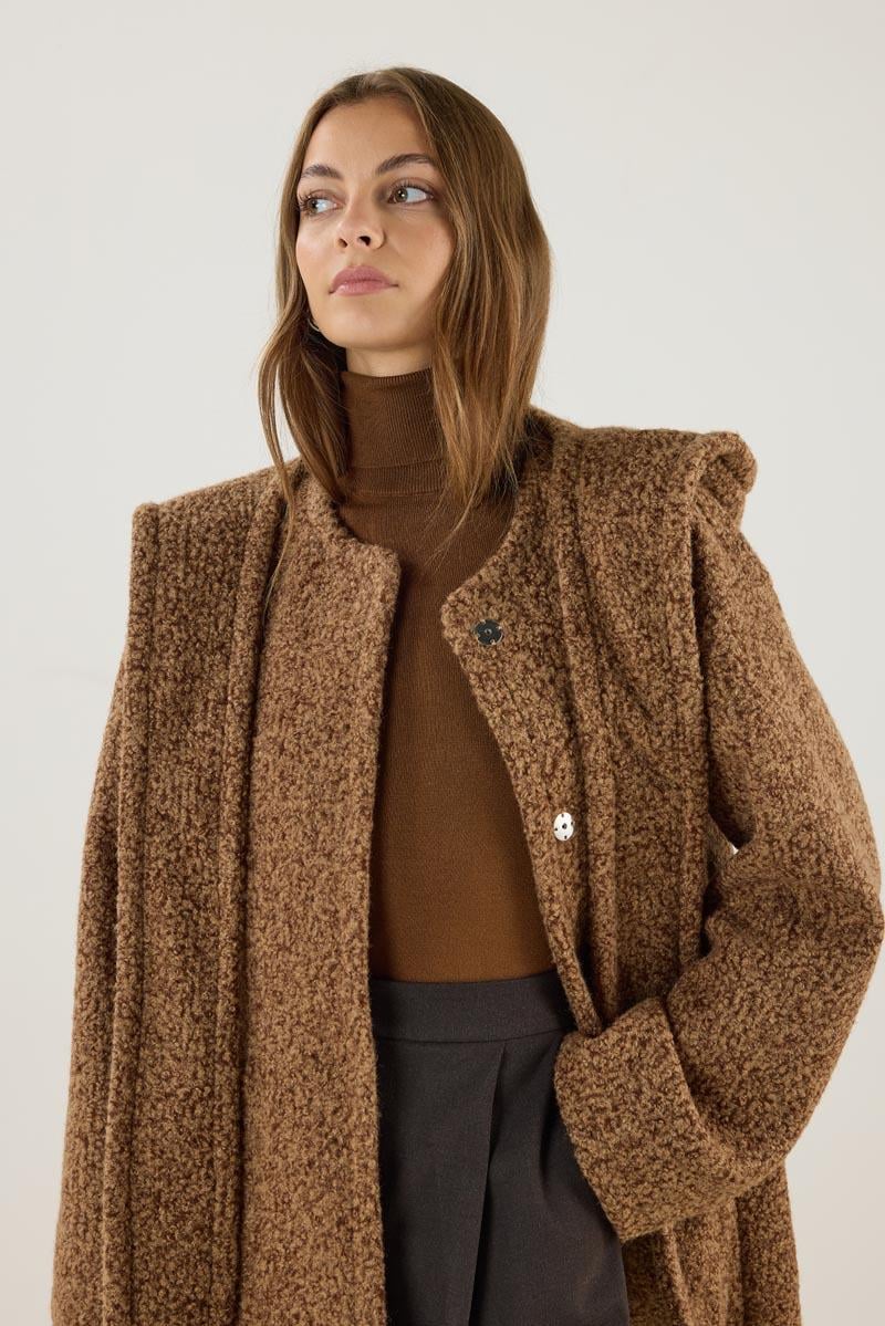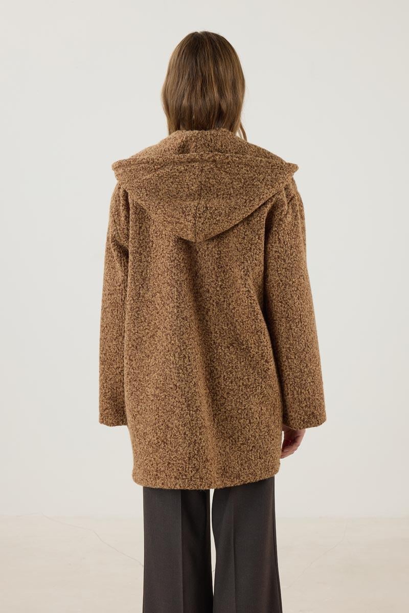 Kadın Bisiklet Yaka Seyyar Kapüşonlu Buklet Kaban Kahverengi (MTW25KKBN002)
