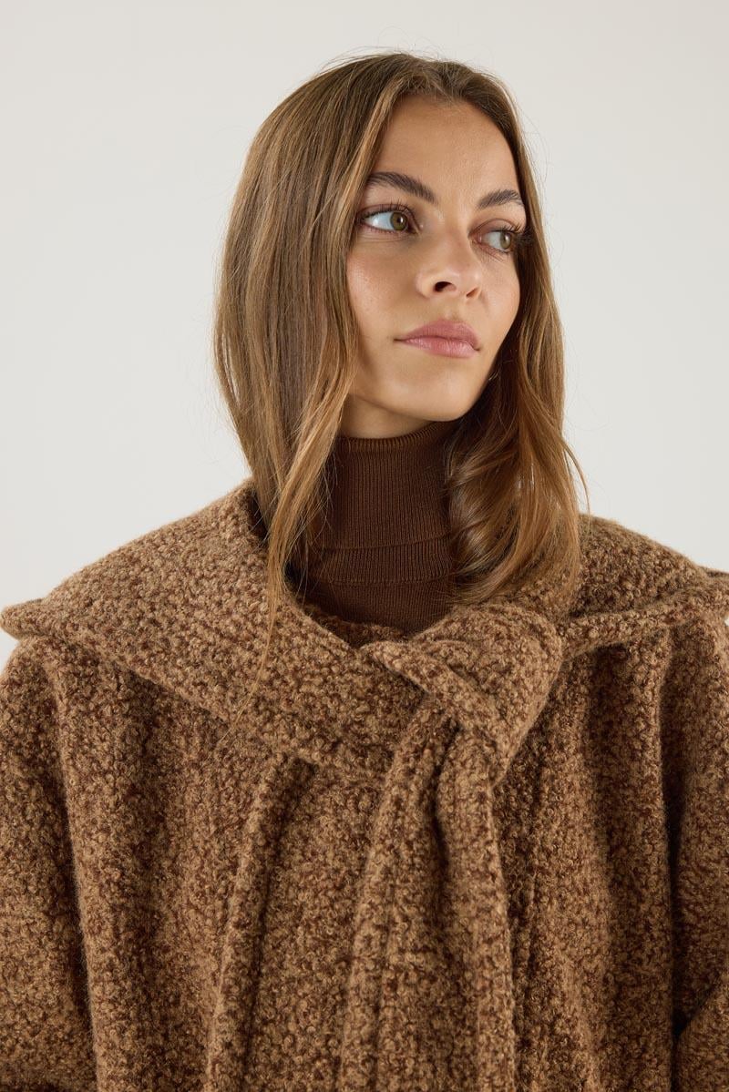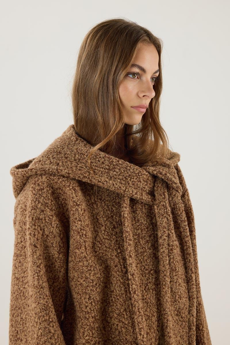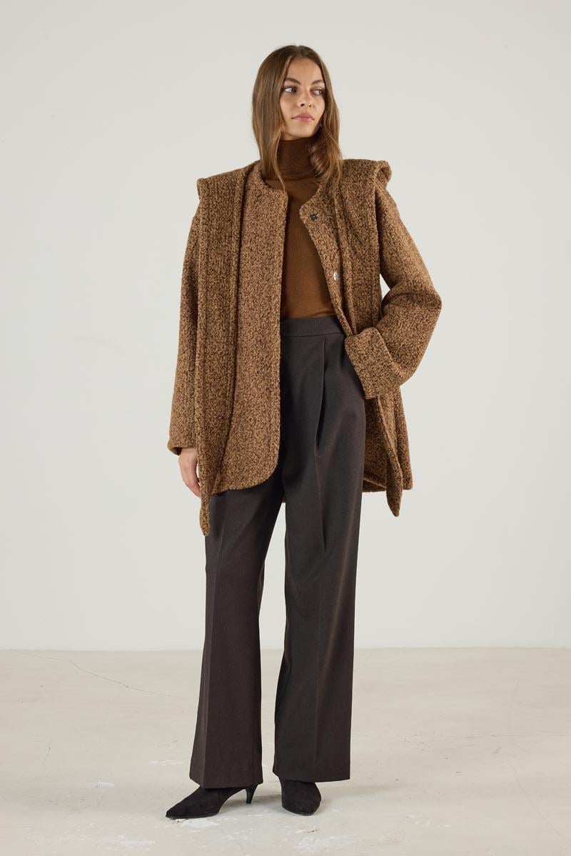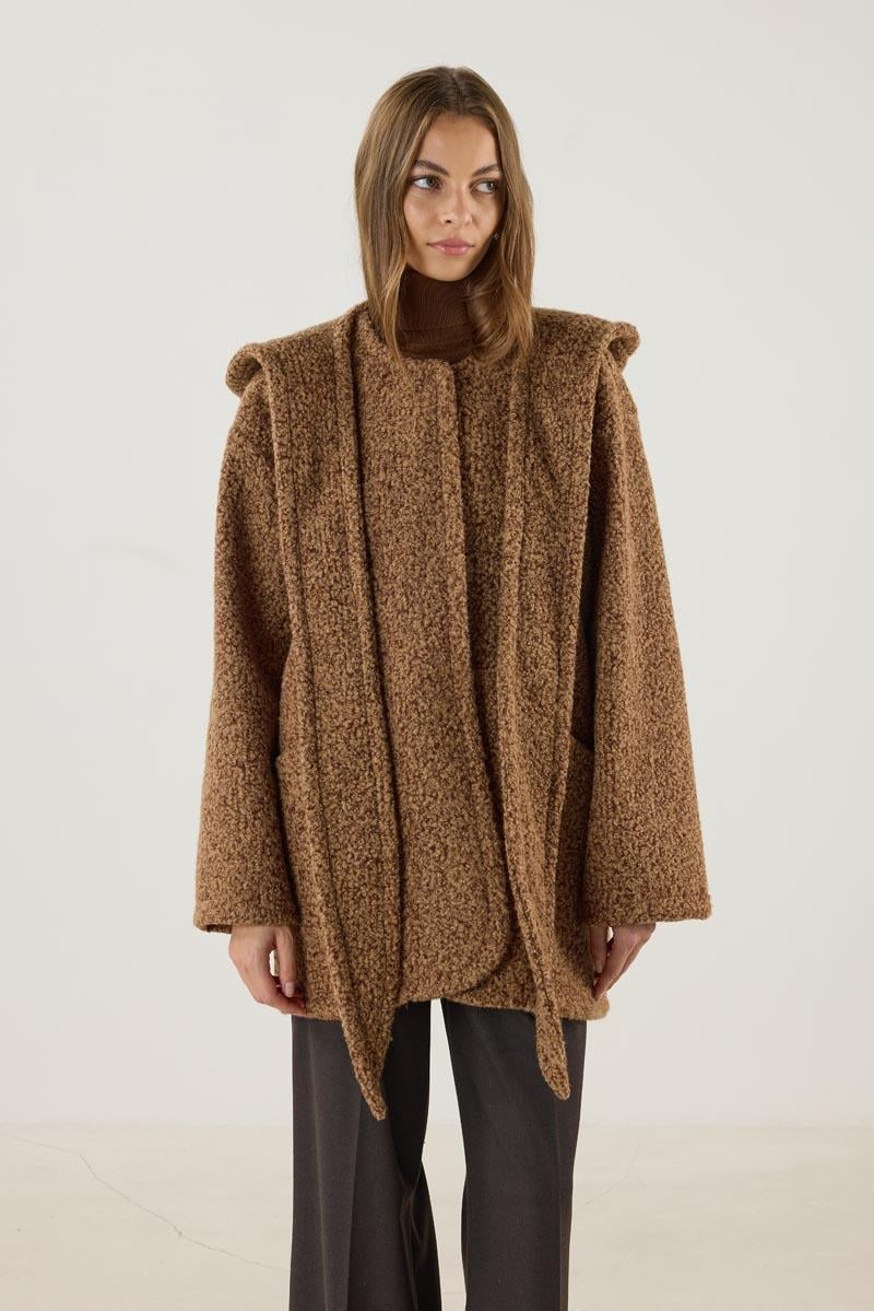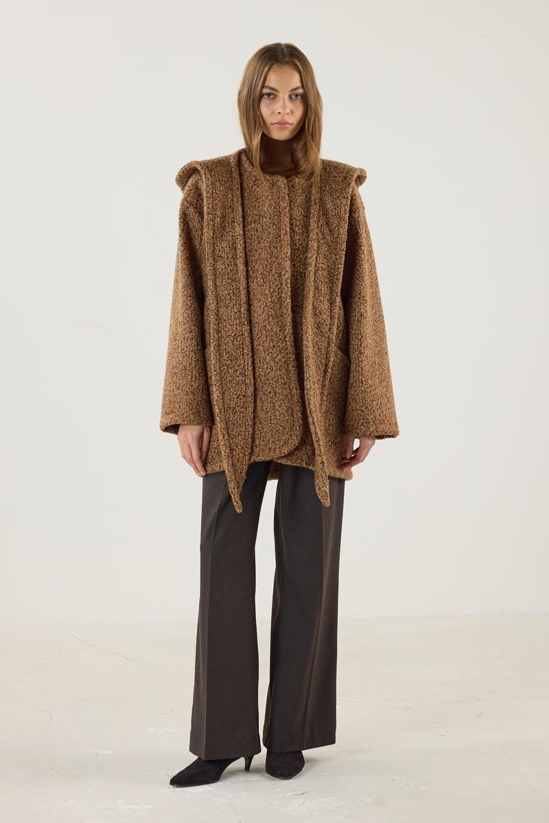 Kadın Bisiklet Yaka Seyyar Kapüşonlu Buklet Kaban Kahverengi (MTW25KKBN002)