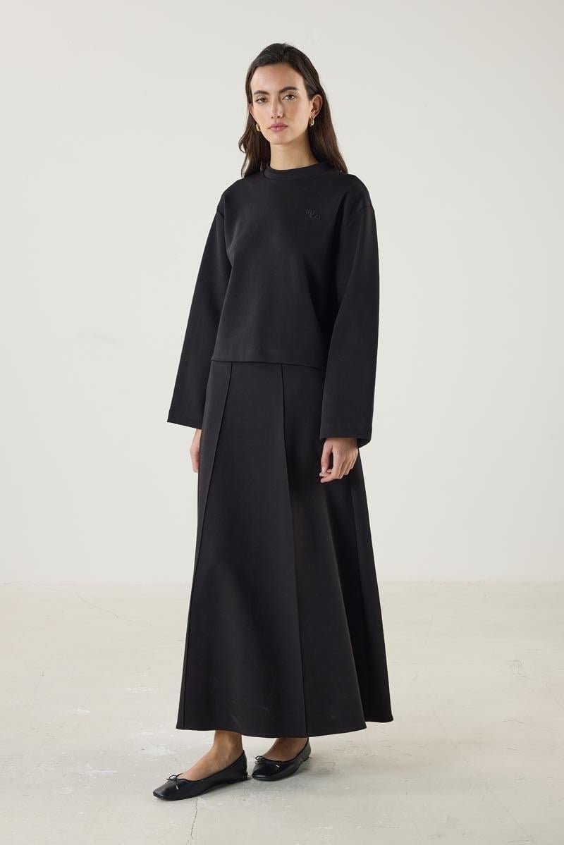 Siyah Kısa Sweatshirt, Çan Kesim Etek Takım (MTTAKIM061)