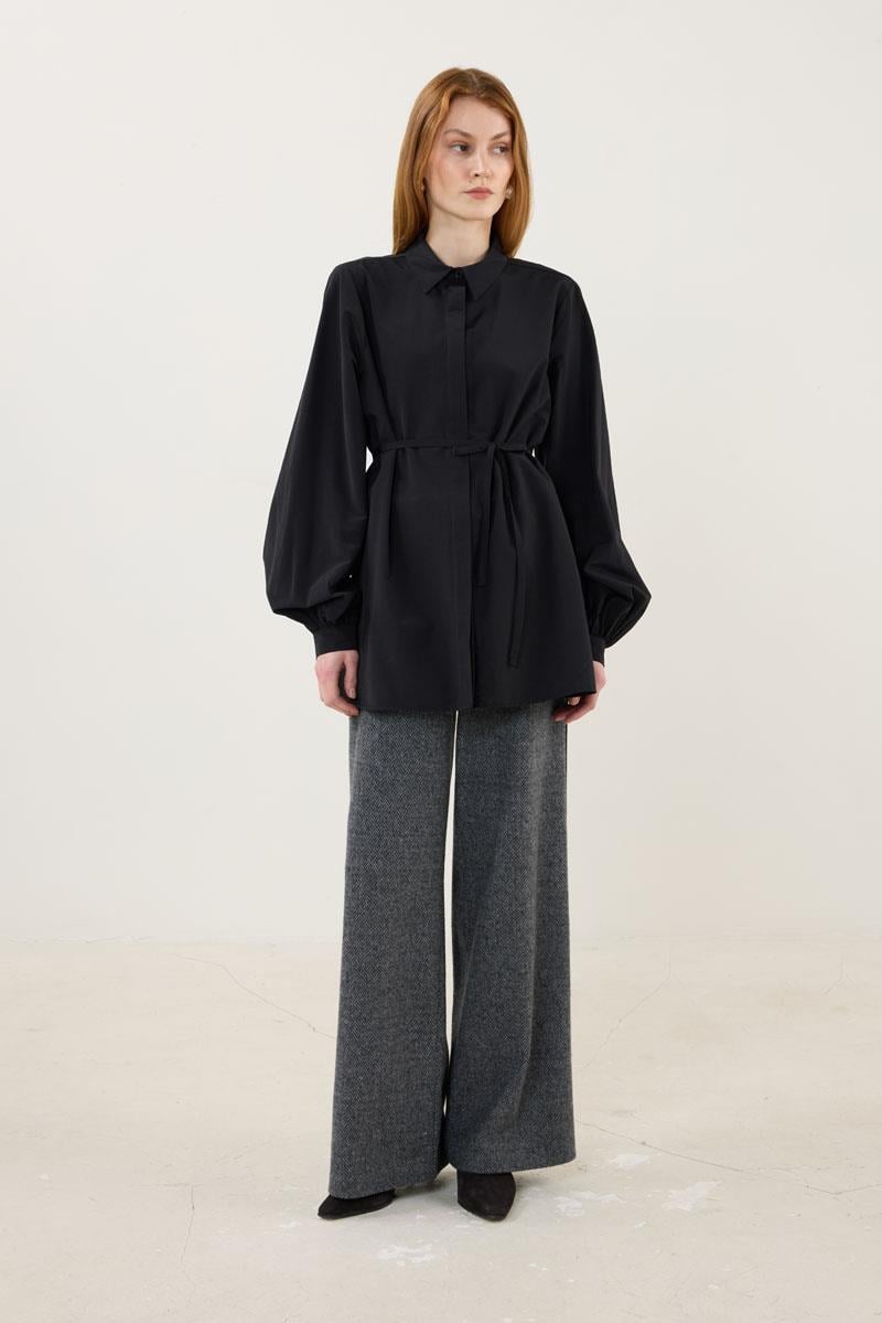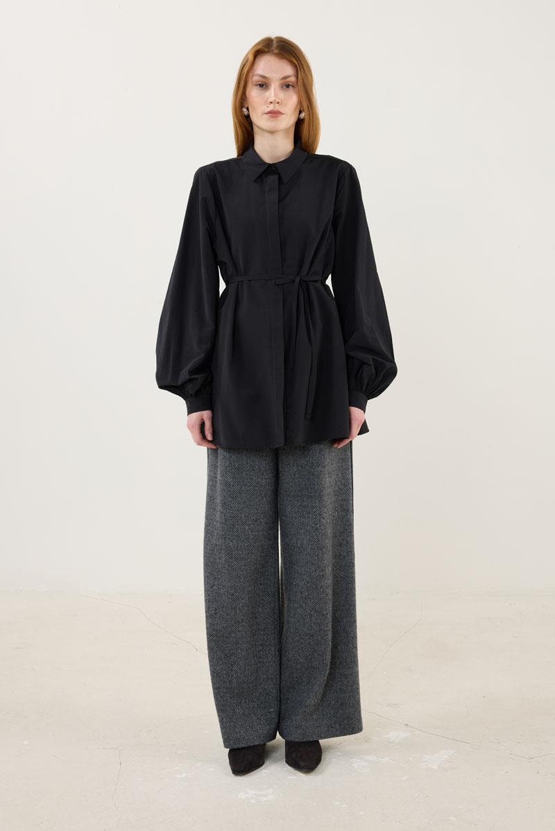 Takma Balon Kollu Gömlek Siyah (MTS24KGMK006)