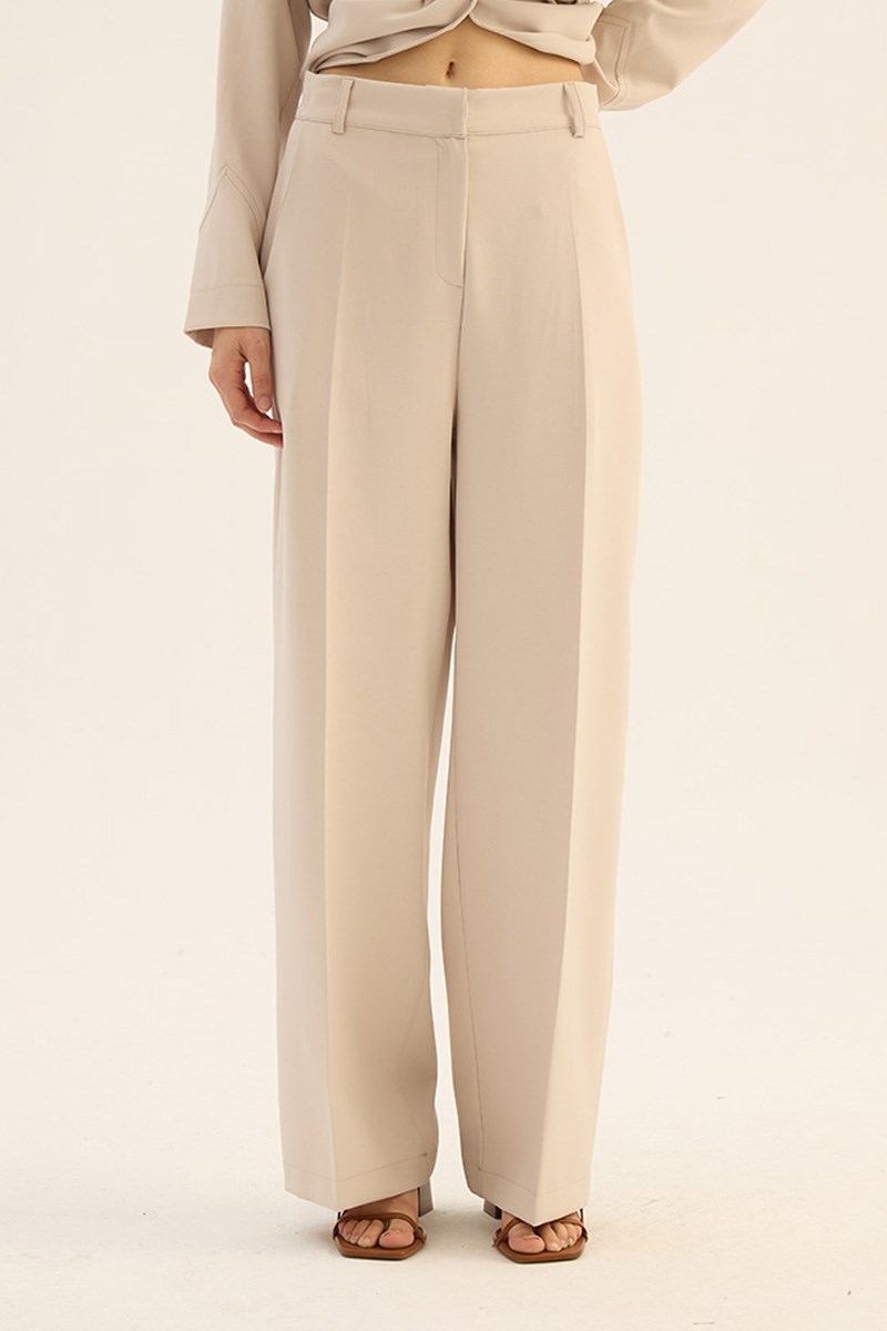 Ütü İzli Palazzo Pantolon Taş (MTW24KPNT003)