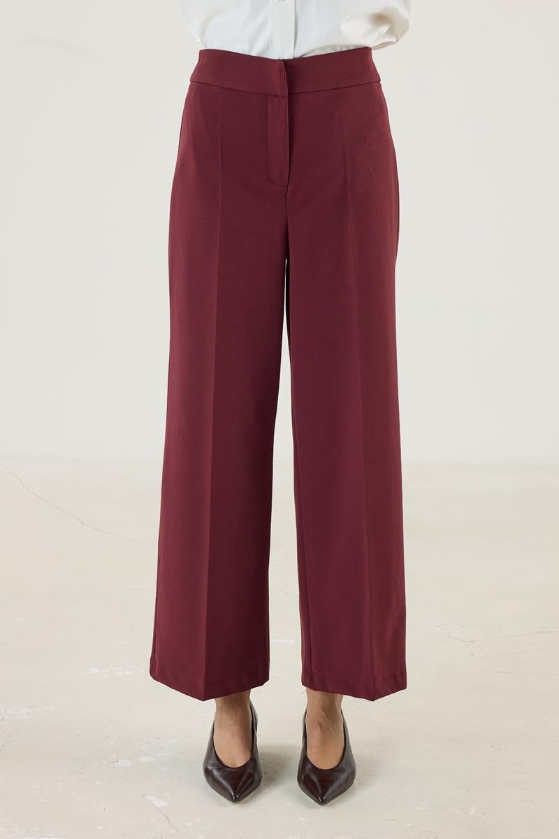 Kadın Yüksek Bel Bol Paça Culotte Pantolon Bordo (MTB25KPNT003)
