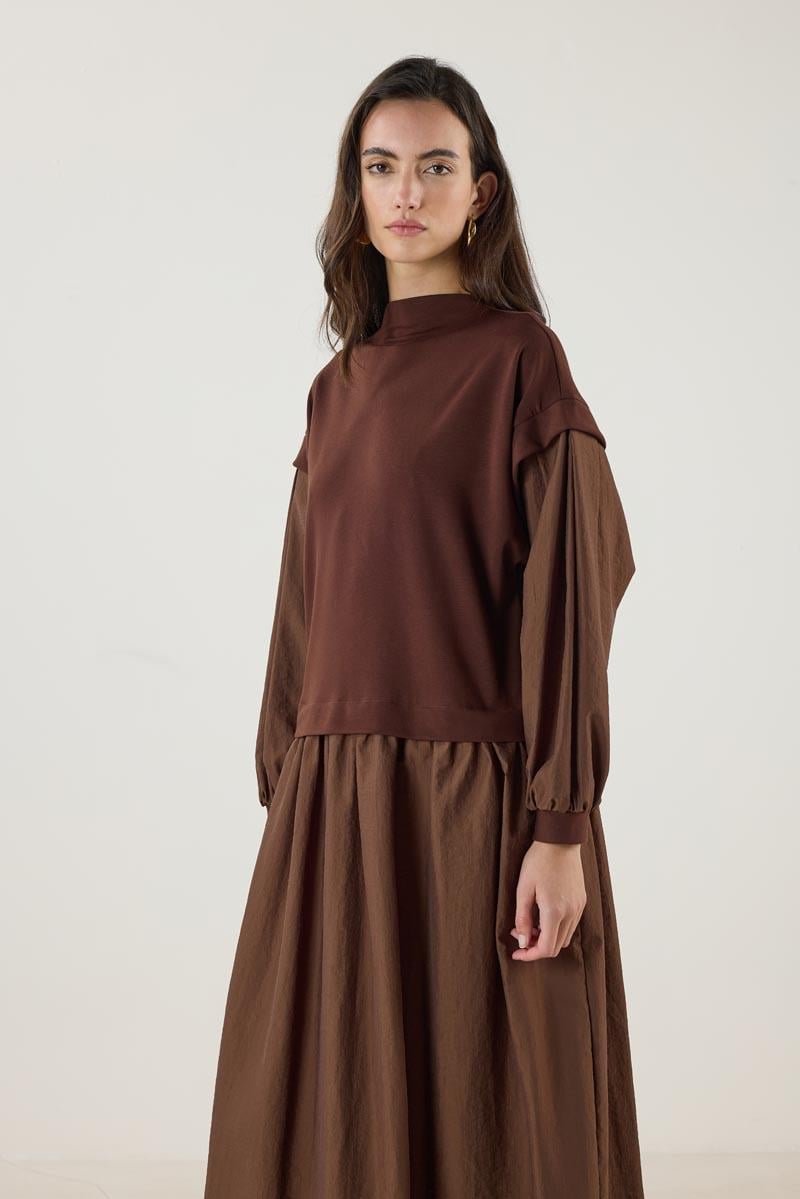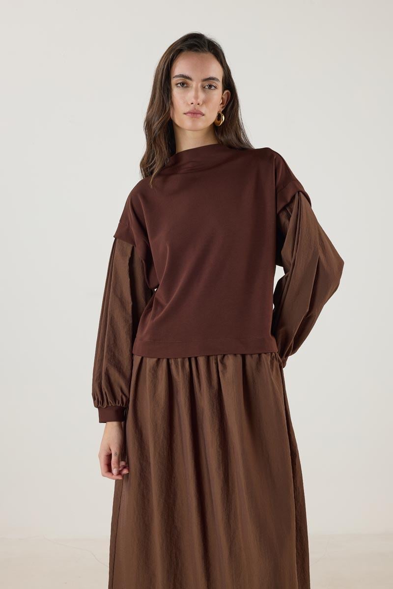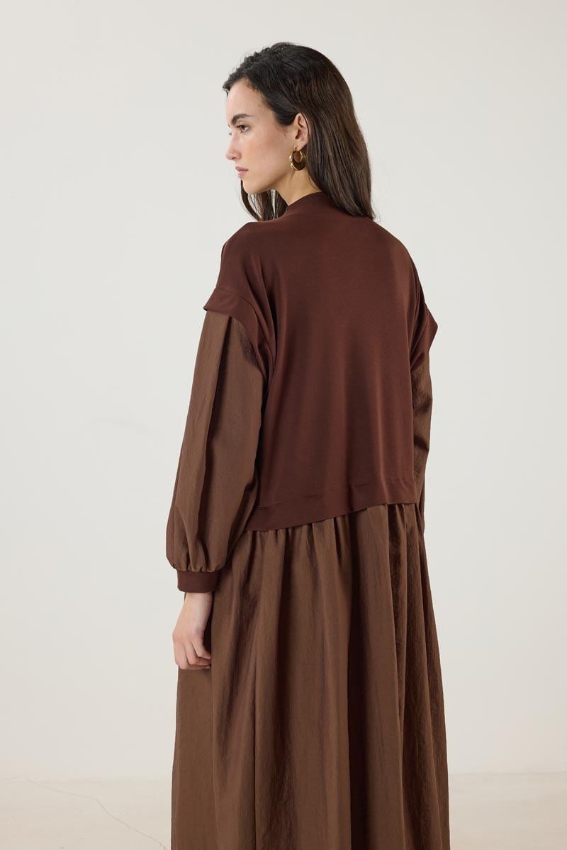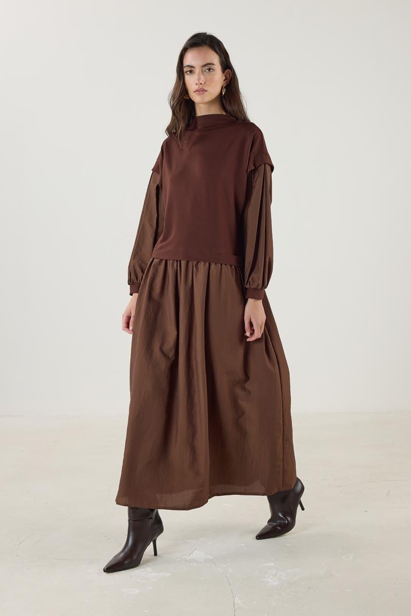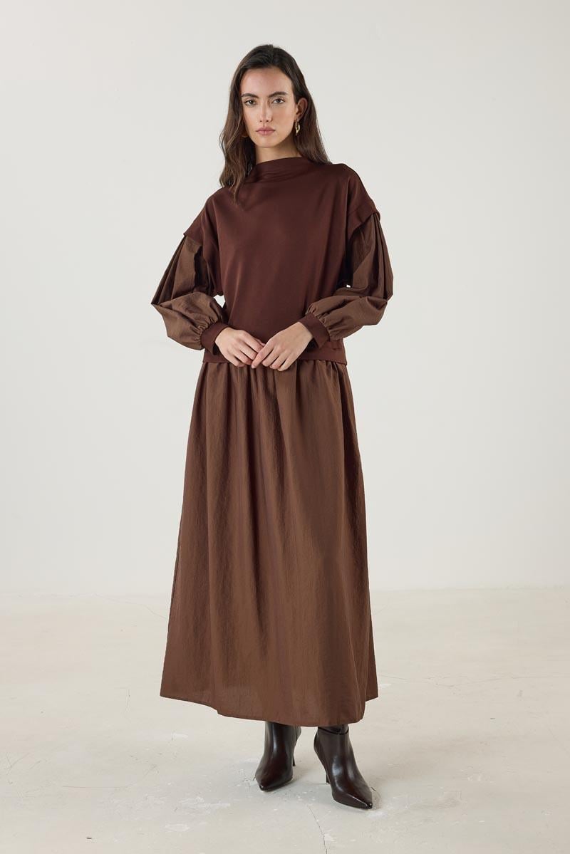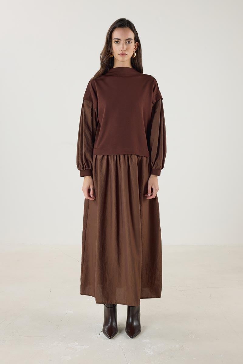 Kadın Yüksek Yaka Paraşüt Etekli Elbise Acı kahve (MTM25KELB002)